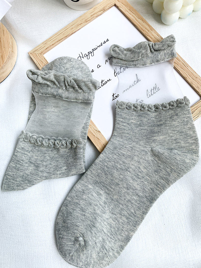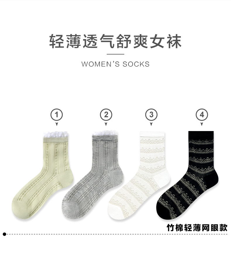 任选5双35.8元 足装秀春夏女士轻薄中筒袜网眼水晶丝甜美无骨女袜