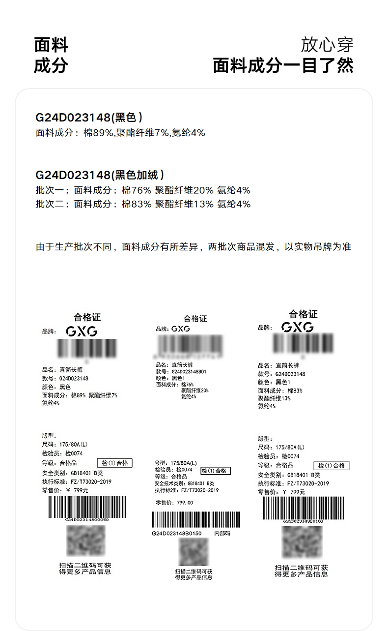 GXG男装 2024年秋季热卖基础休闲直筒卫裤休闲裤长裤男#G24D023148