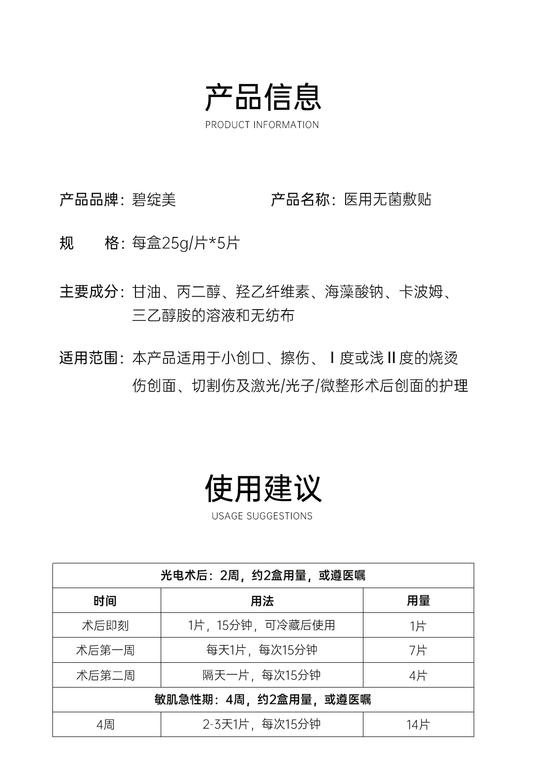 碧绽美 医用无菌敷贴5片/盒 医美术后褪红修护