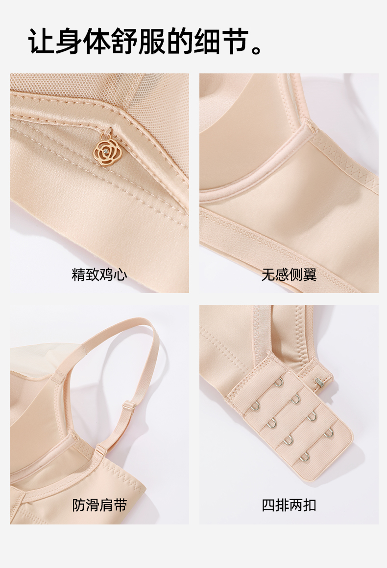 【大胸显小纸片杯】熳洁儿 轻塑力挺内衣稳固不跑杯收副乳文胸BCD杯23261516/24261527