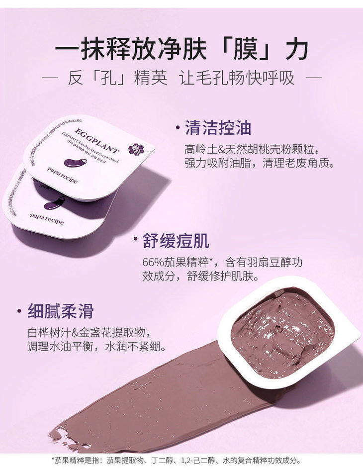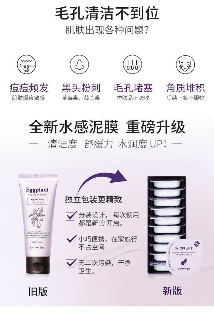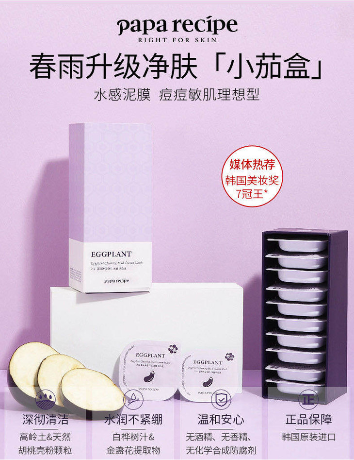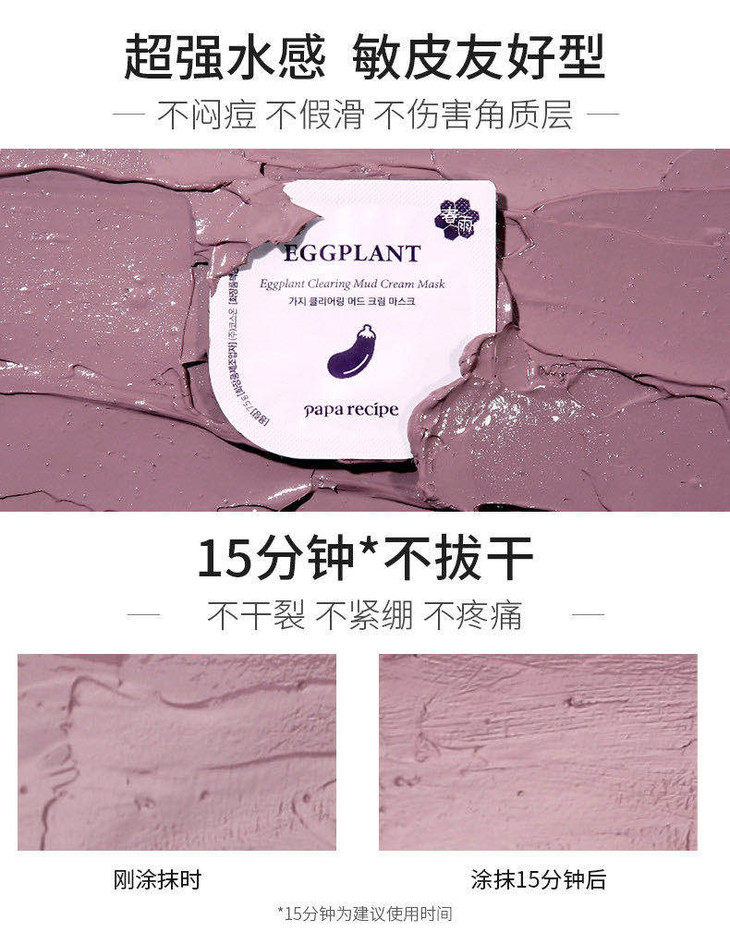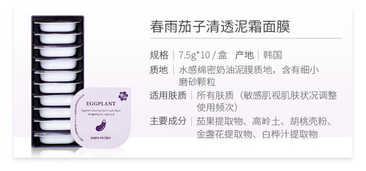 (超值)韩国paparecipe春雨 茄子清洁去黑头泥膜7.5g/蜂蜜睡眠补湿面膜5g*10颗
