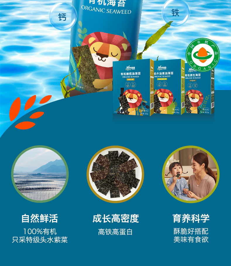 【有机海苔】有机原生/牛油果油/橄榄油海苔 原生海苔 自然鲜 多种吃法 三阶段