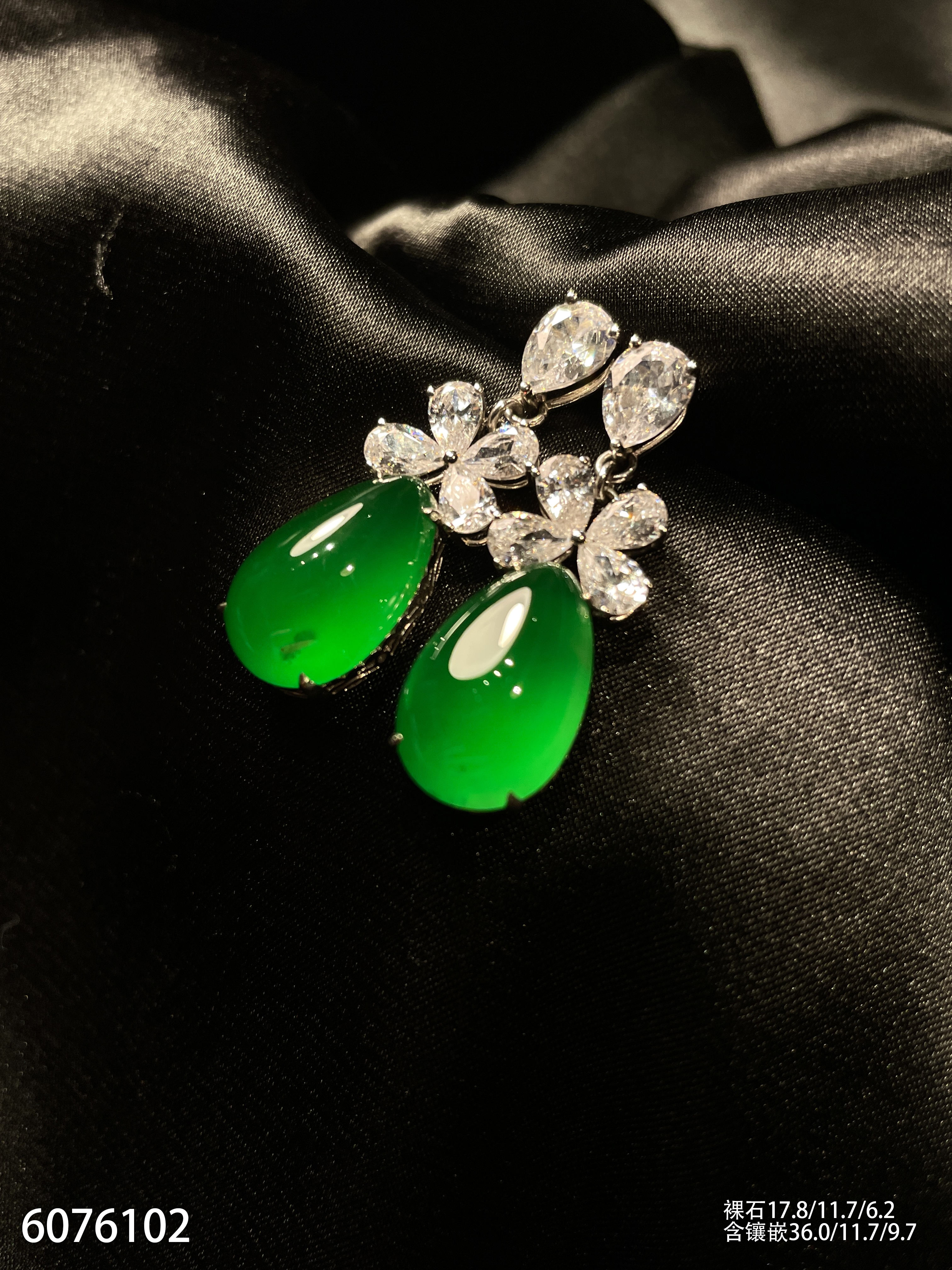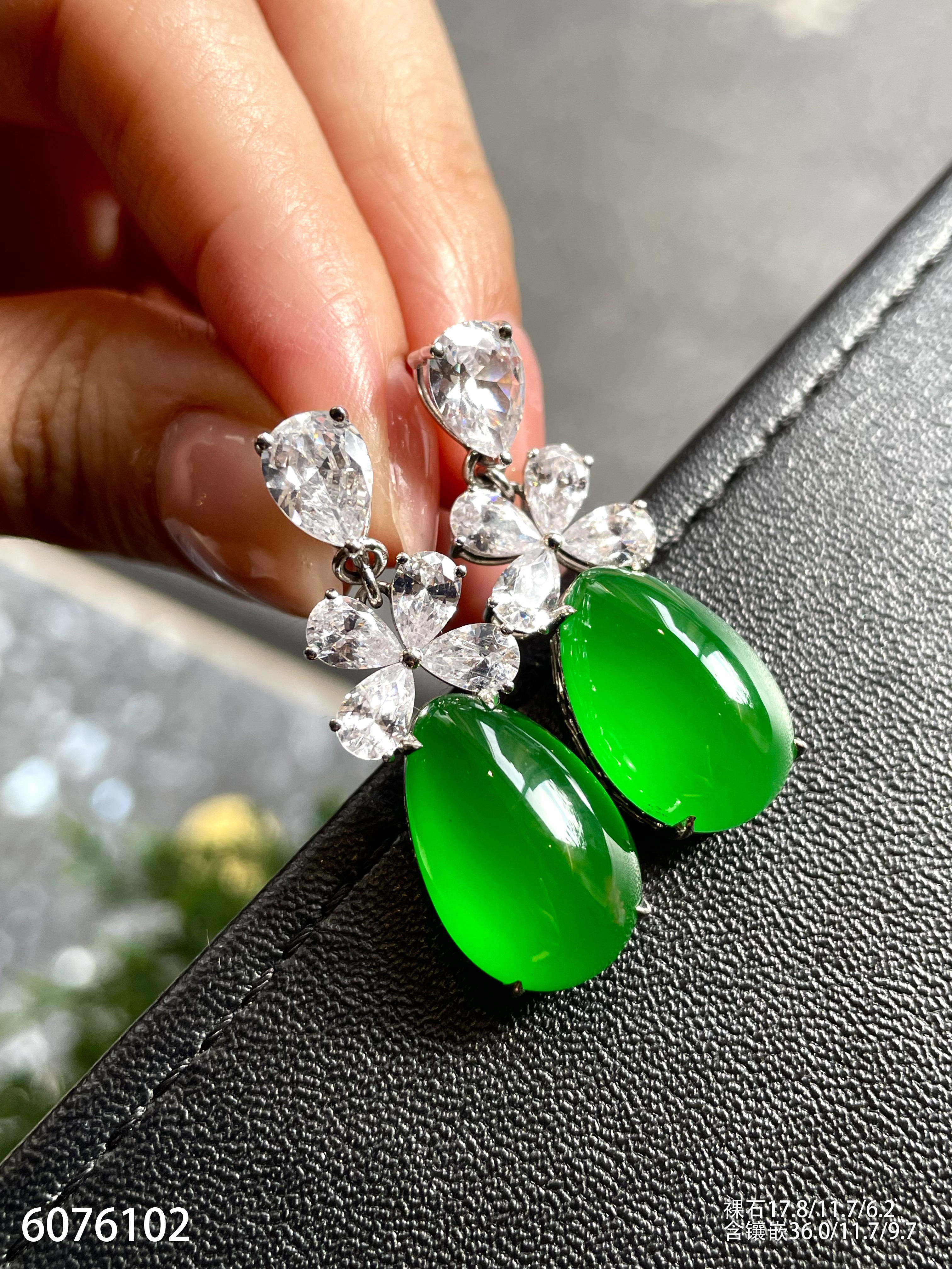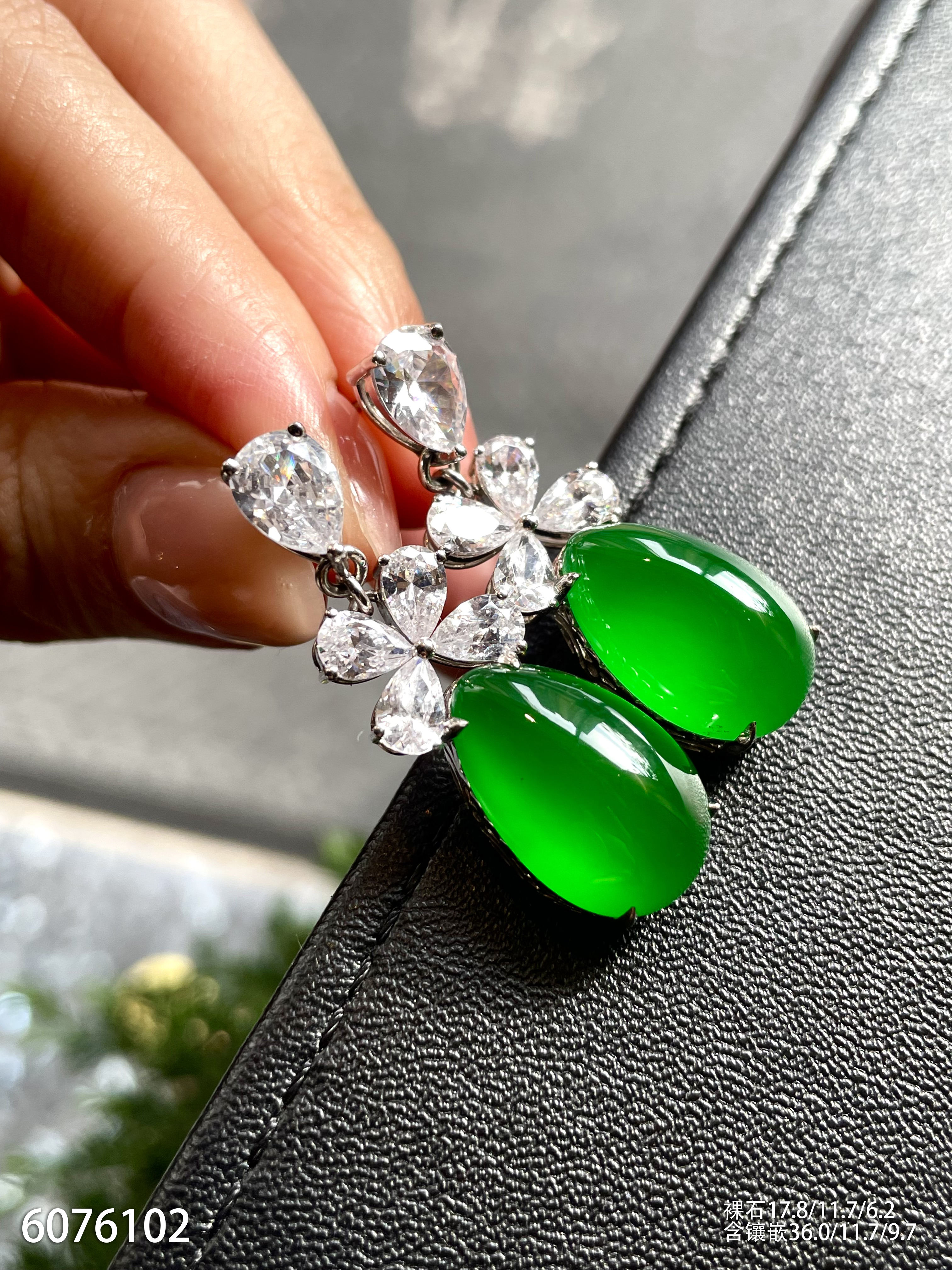 玻璃种帝王绿蛋面耳坠【6023104】具体价格微信咨询