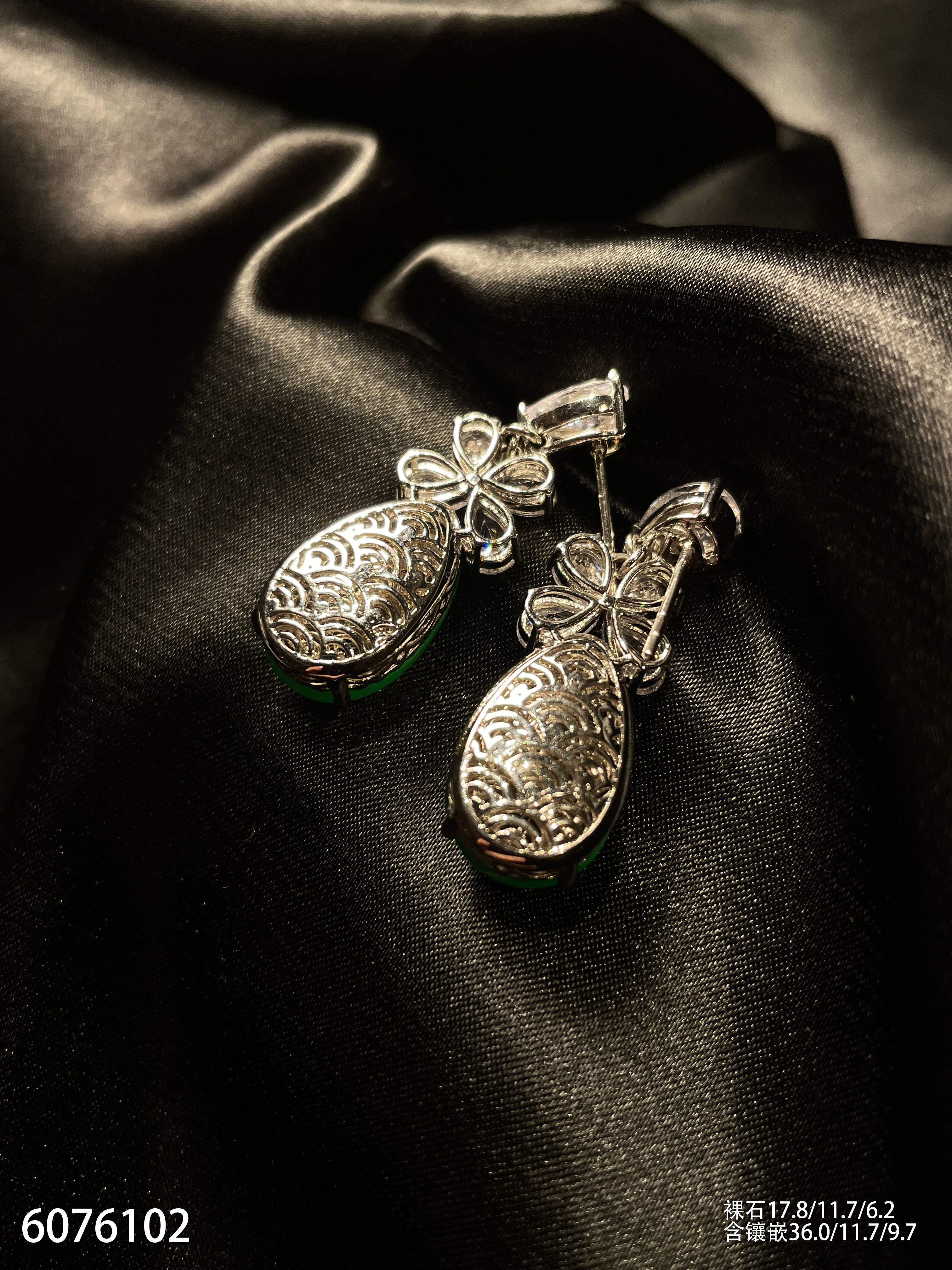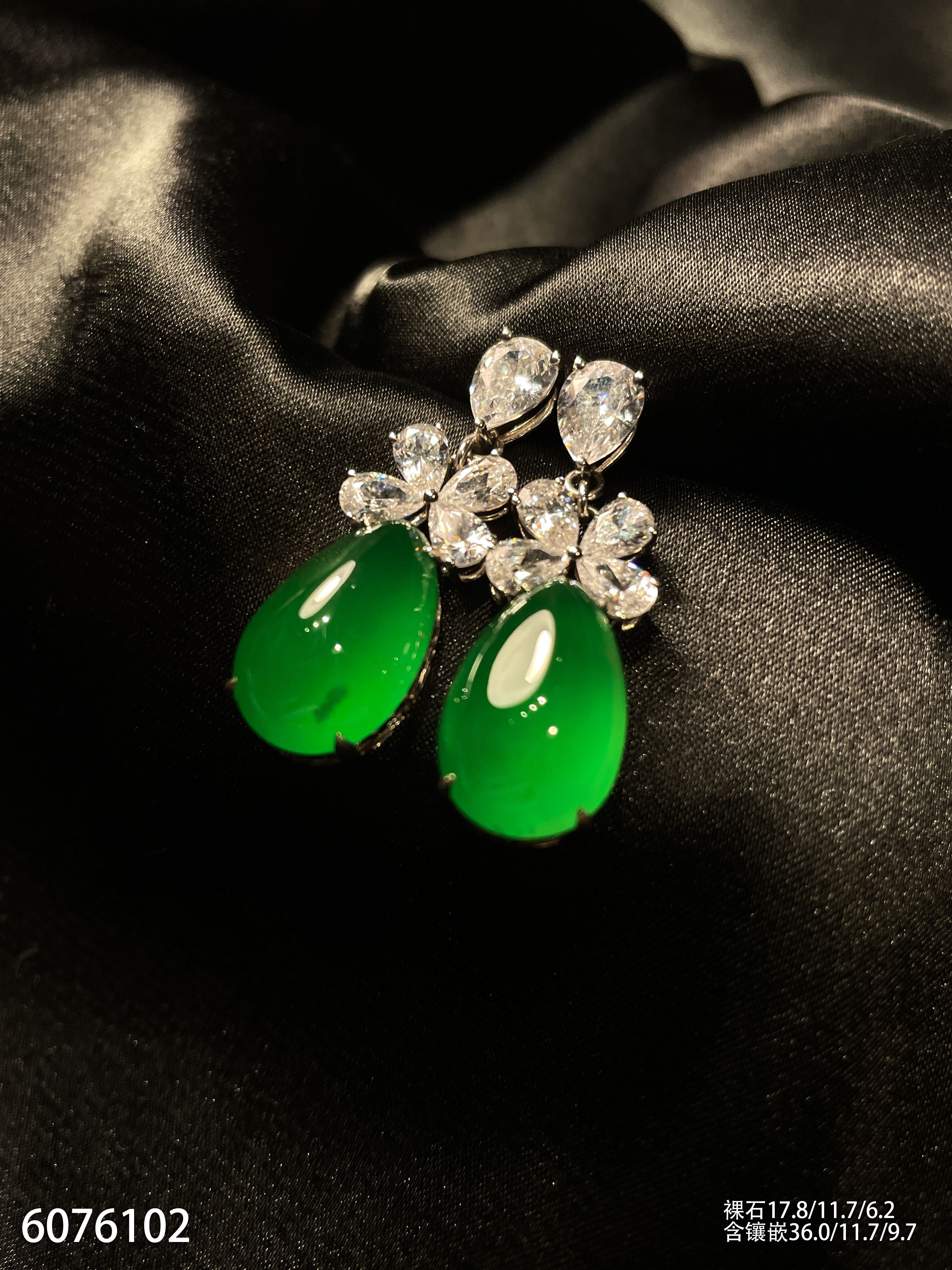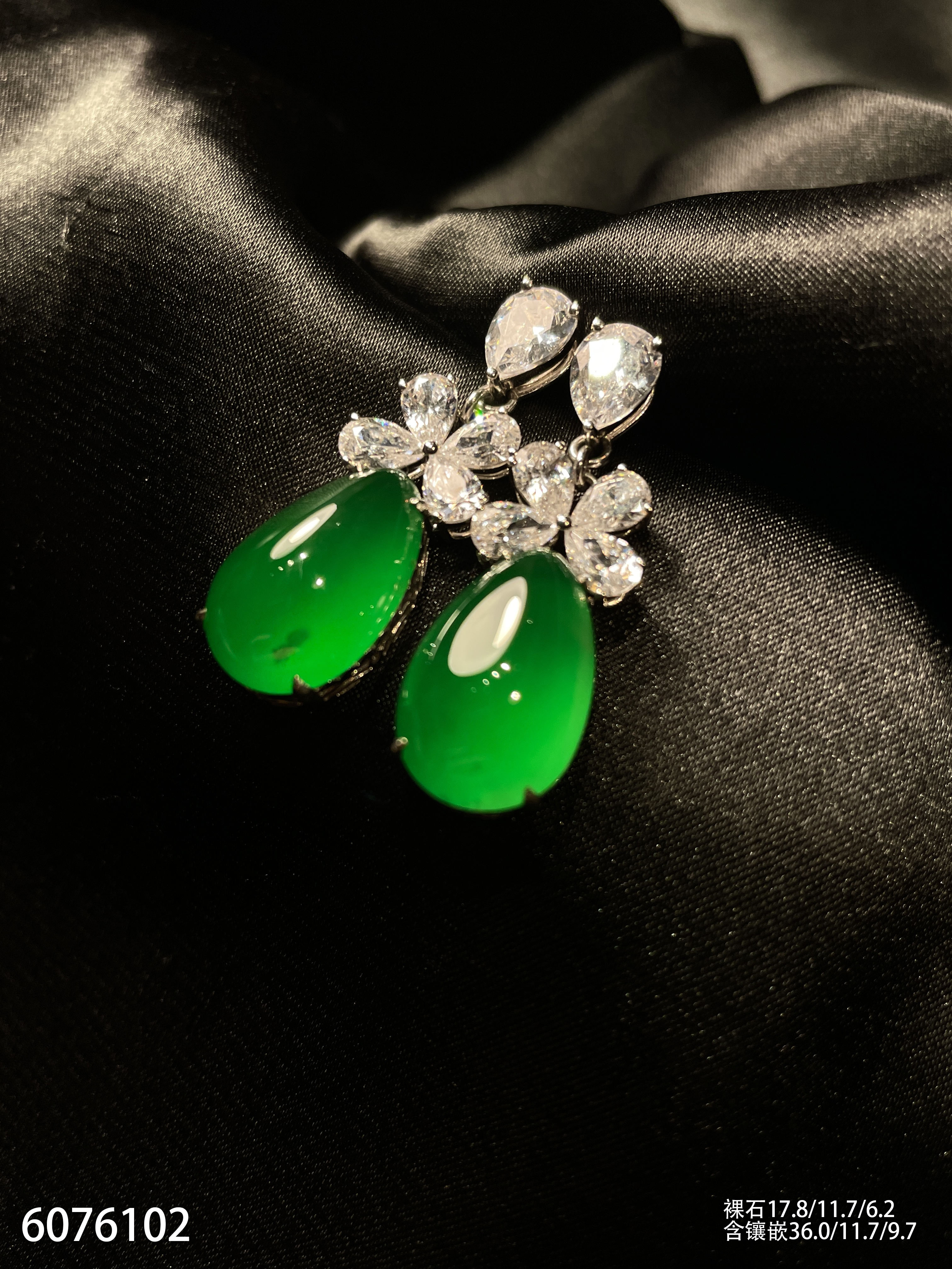 玻璃种帝王绿蛋面耳坠【6023104】具体价格微信咨询