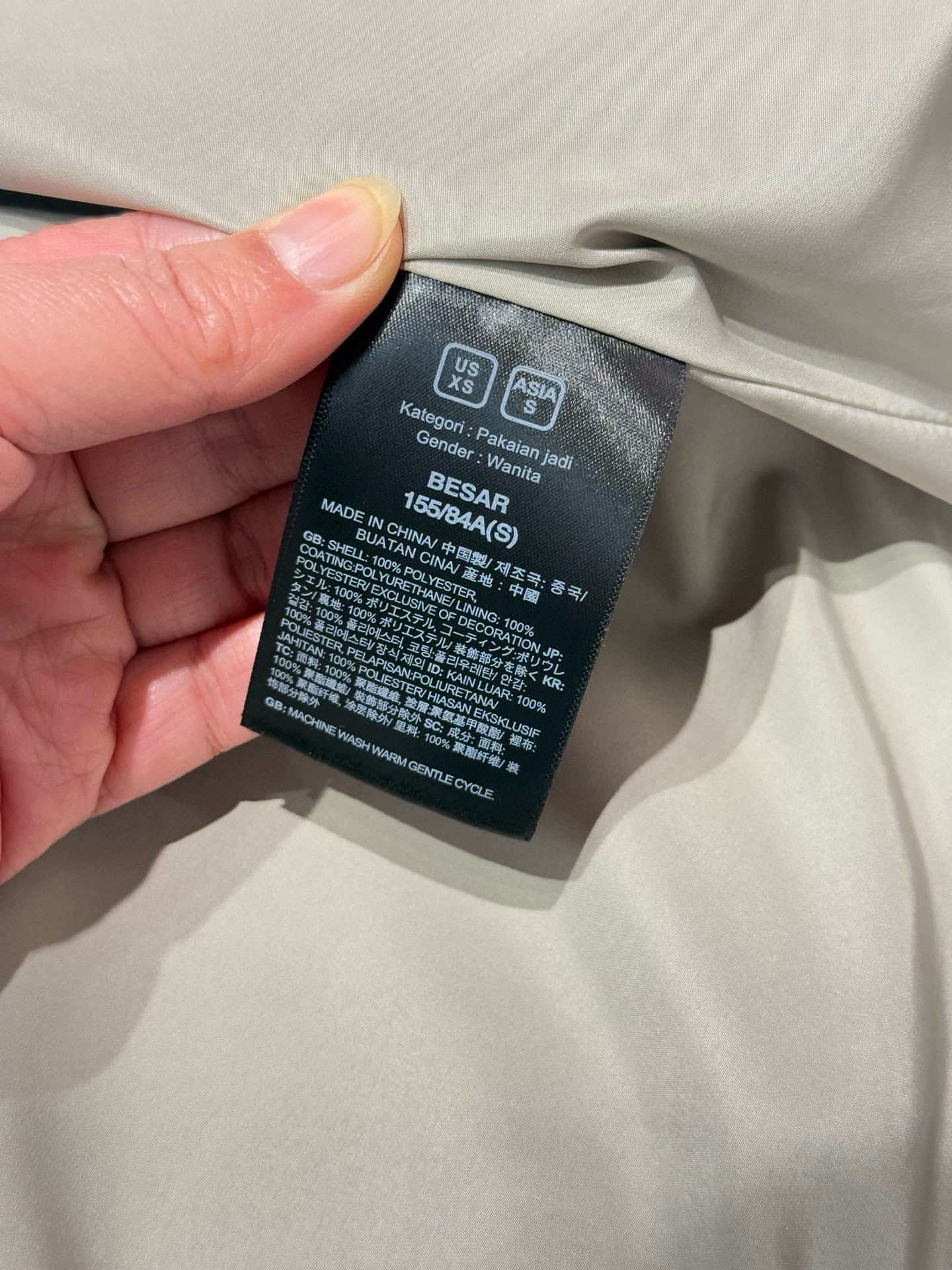 100%聚酯内衬,触感细腻丝滑,柔顺不粘毛!有良好的透汽性,帮助外壳实现内外小分子水汽置换,防风雨的同时保持干爽舒适体感