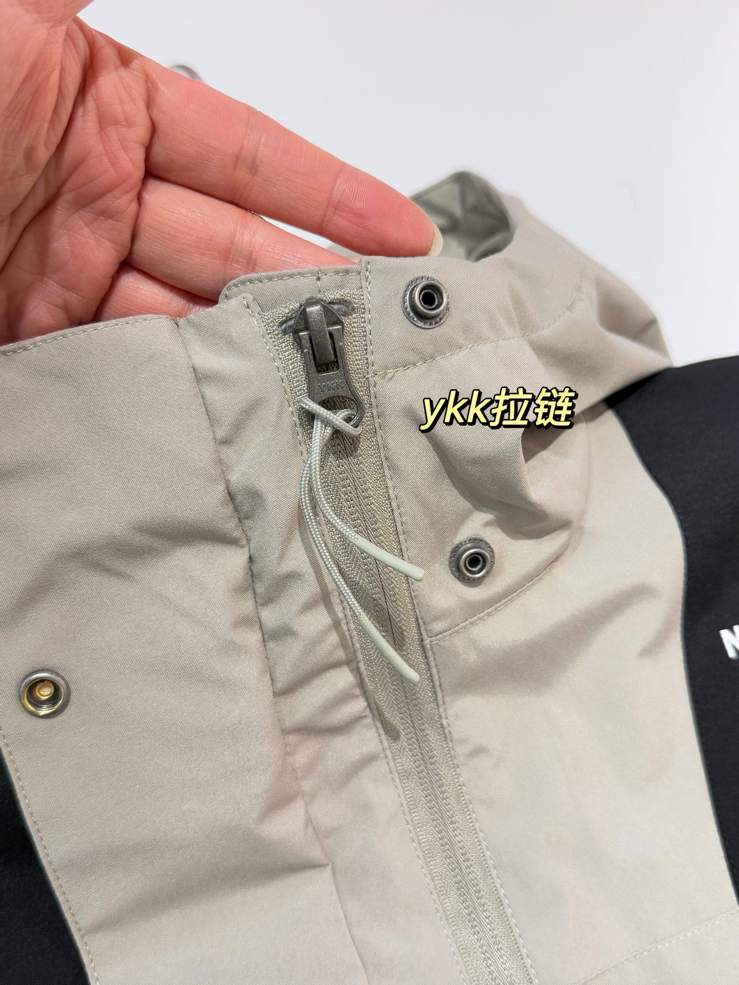 按扣+拉链双层门襟,严密防风,两侧带盖挖袋设计,实用防丢!袖口碎褶束口设计,保留魔术贴粘扣调节扎口松紧度~客供YKK拉链,顺滑不卡顿,拉头上顺色套结绳索开合更便捷!每一颗金属按扣上都有清晰立体的钢印logo标识,有质感有辨识度!