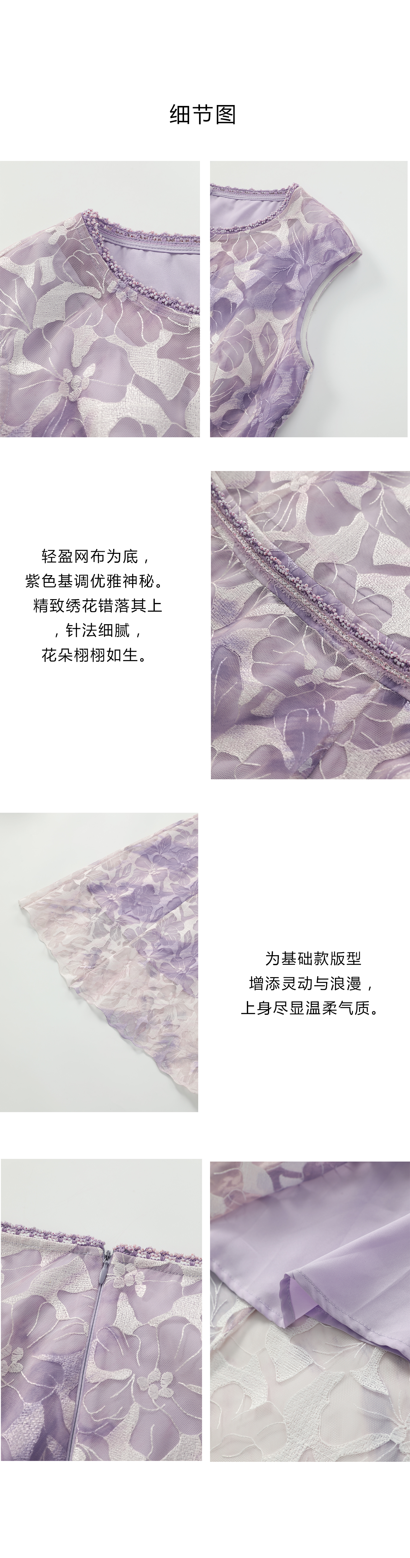 司歌刺绣圆领短袖连衣裙A871221