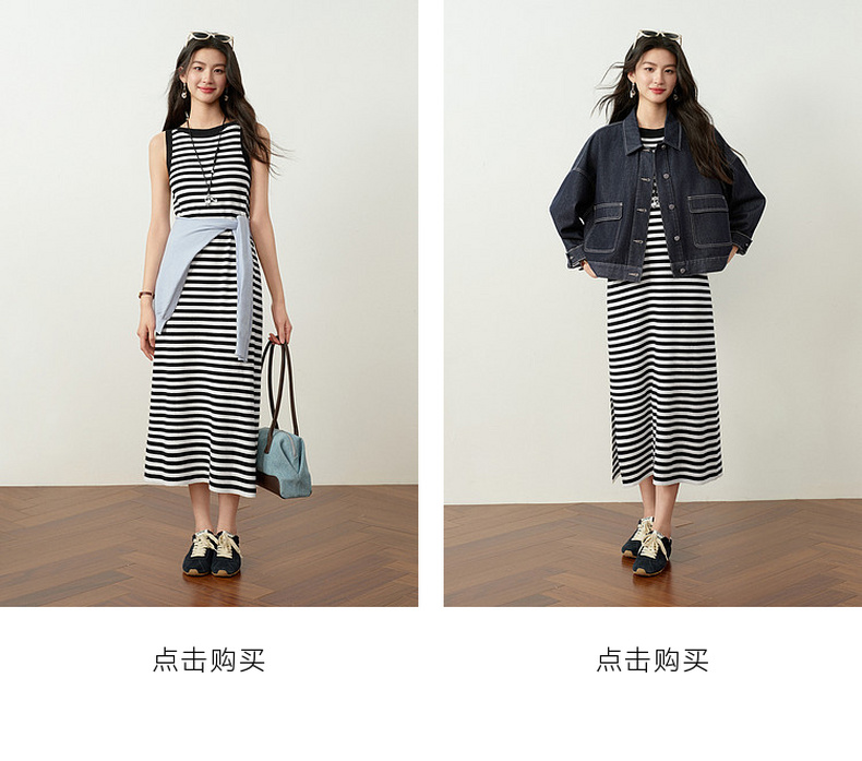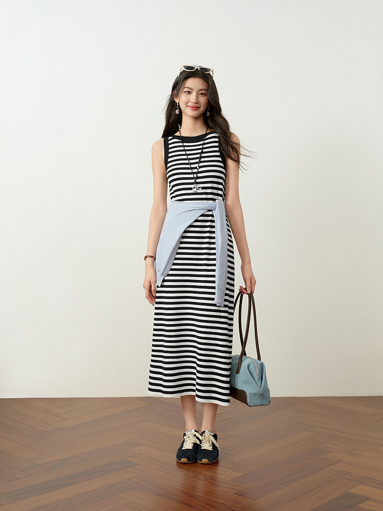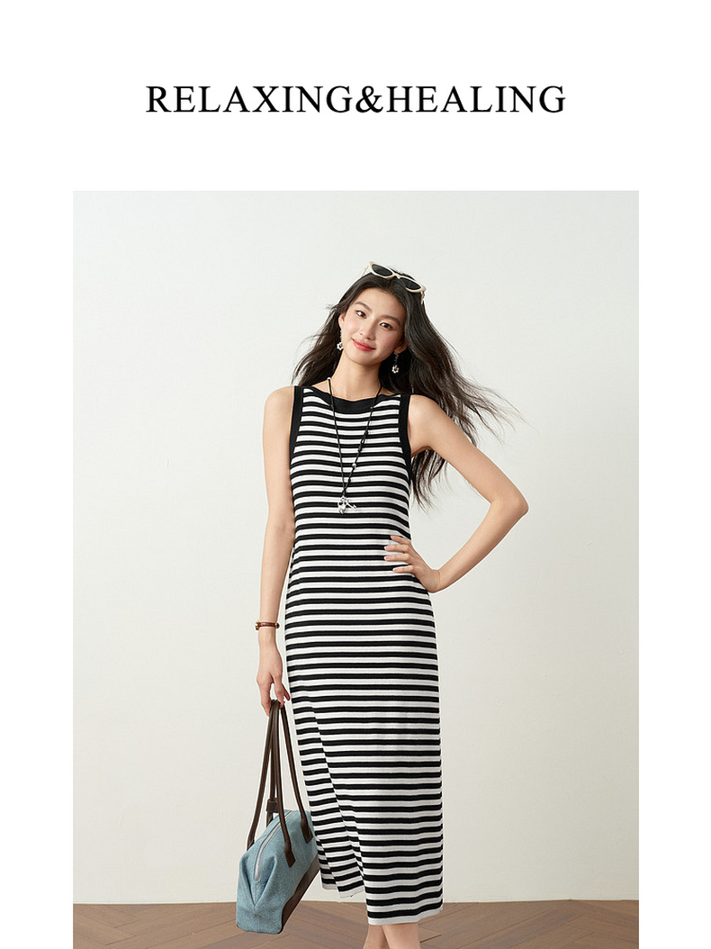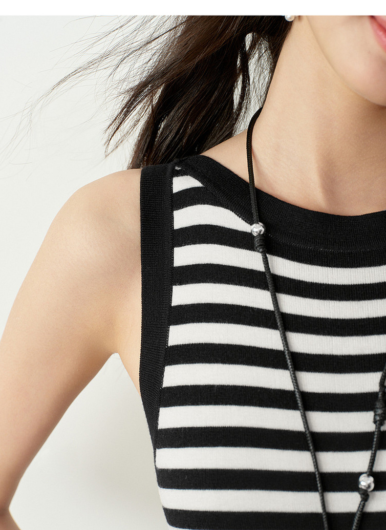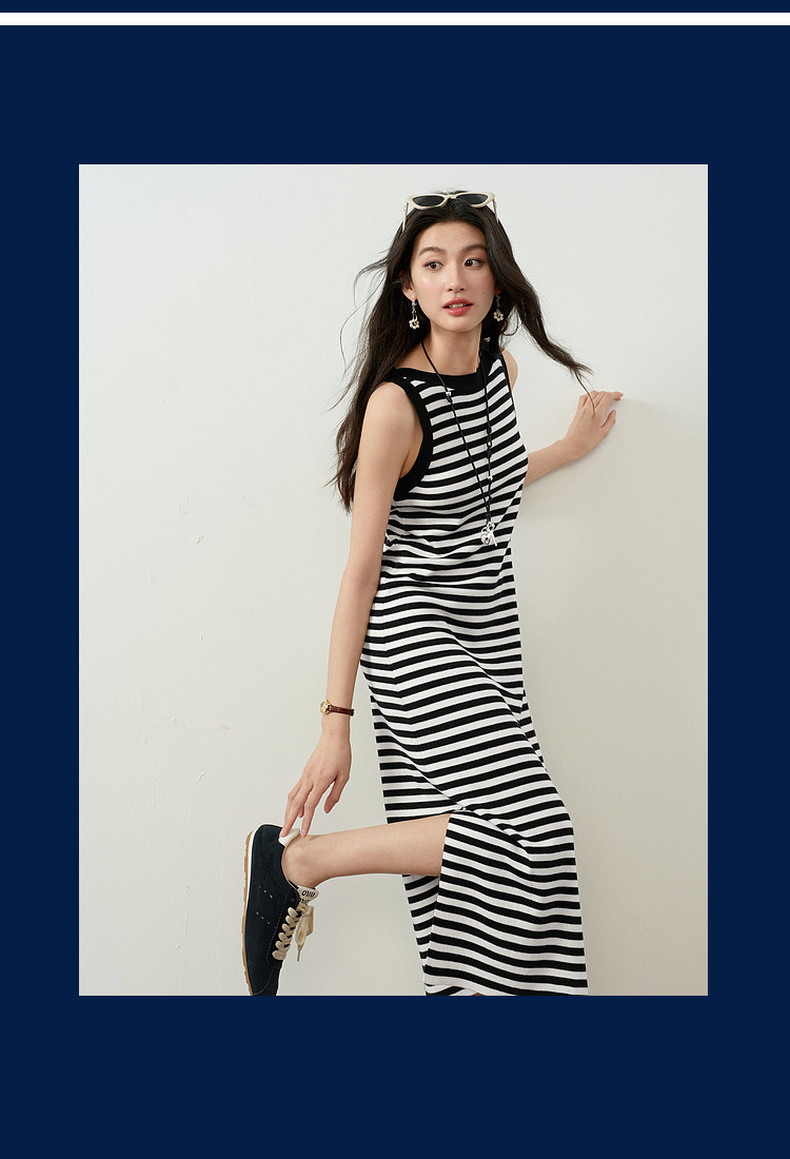 【严选】诗凡黎连衣裙条纹黑白弹力亲肤裙子女2026春夏新款时髦百搭背心式7H3390751