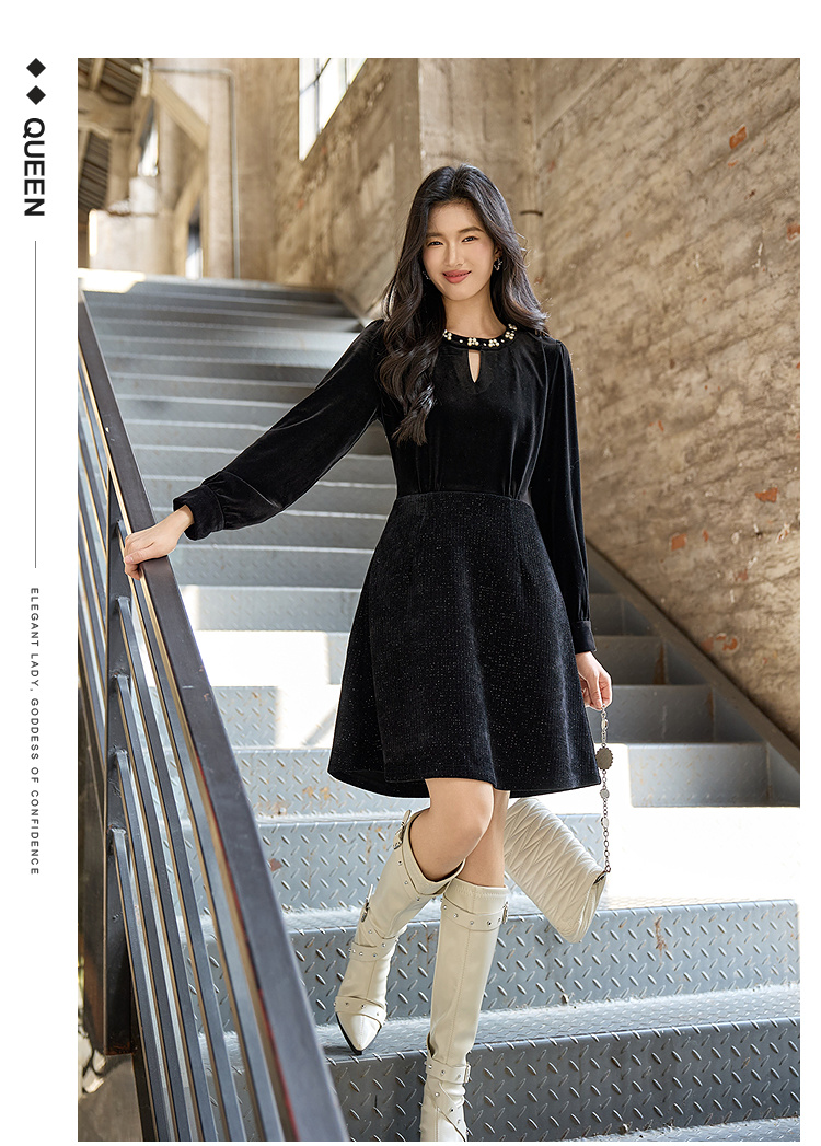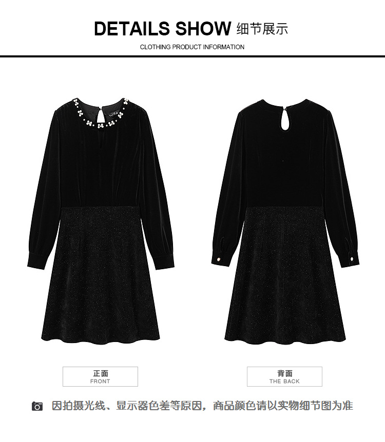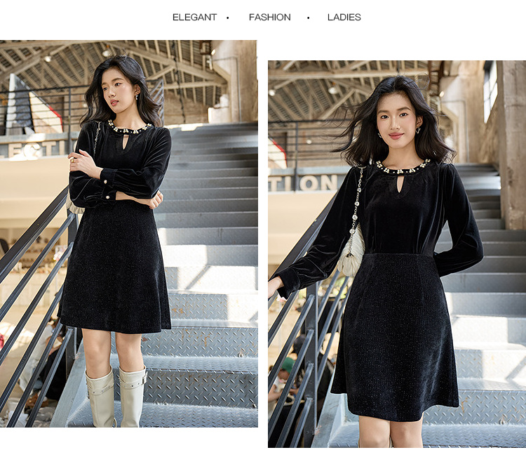 奢姿大码女装2025冬季减龄钉珠镂空连衣裙胖妹妹时尚丝绒拼接裙子3254803786