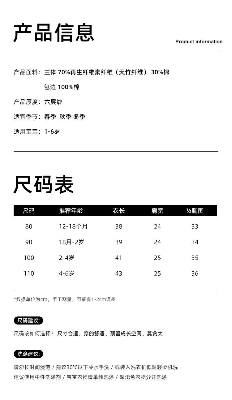 A类竹棉纱布婴儿马甲秋冬季 男童女童宝宝背心可外穿 儿童马甲