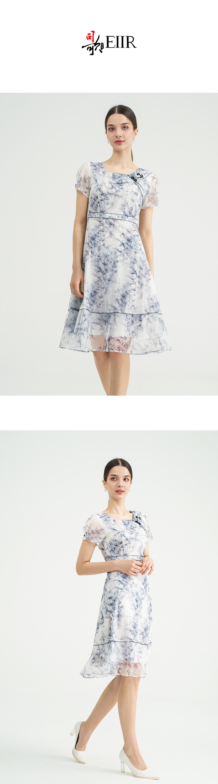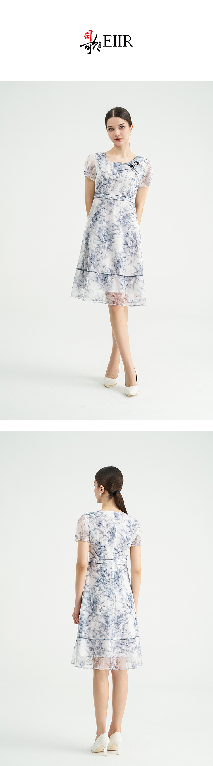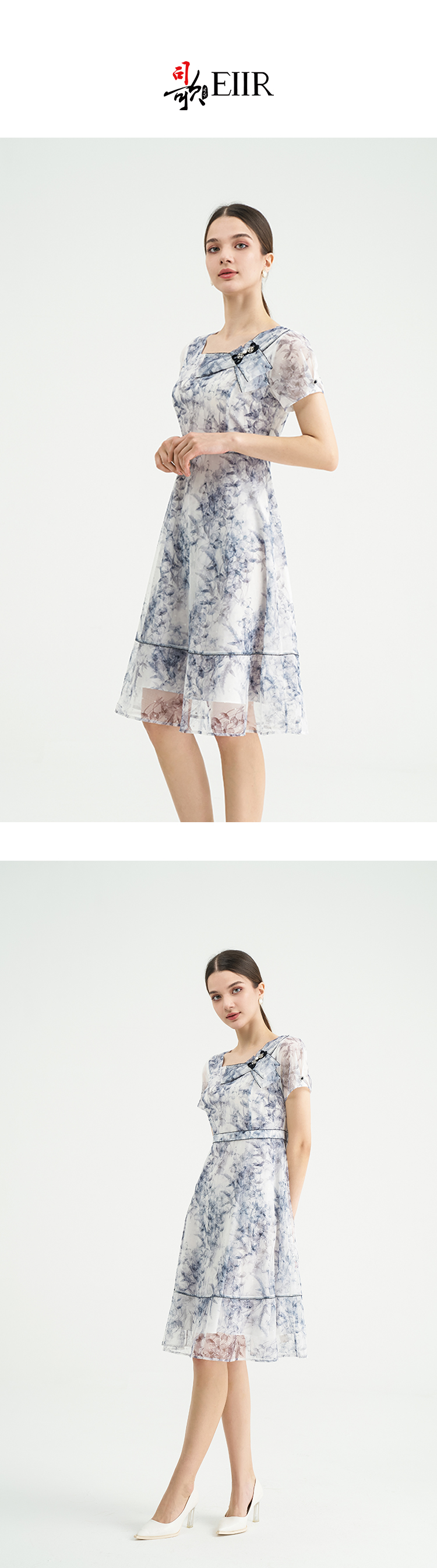 司歌网纱印花短袖显瘦连衣裙EA891347X