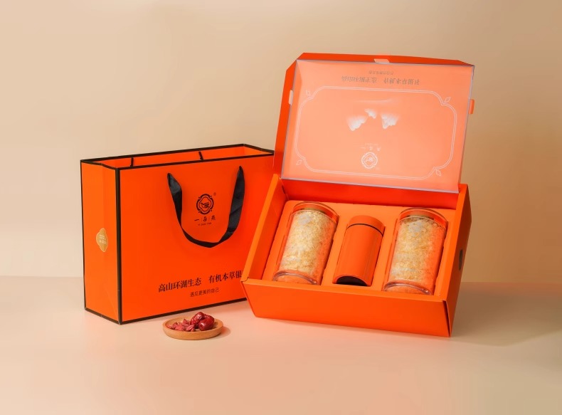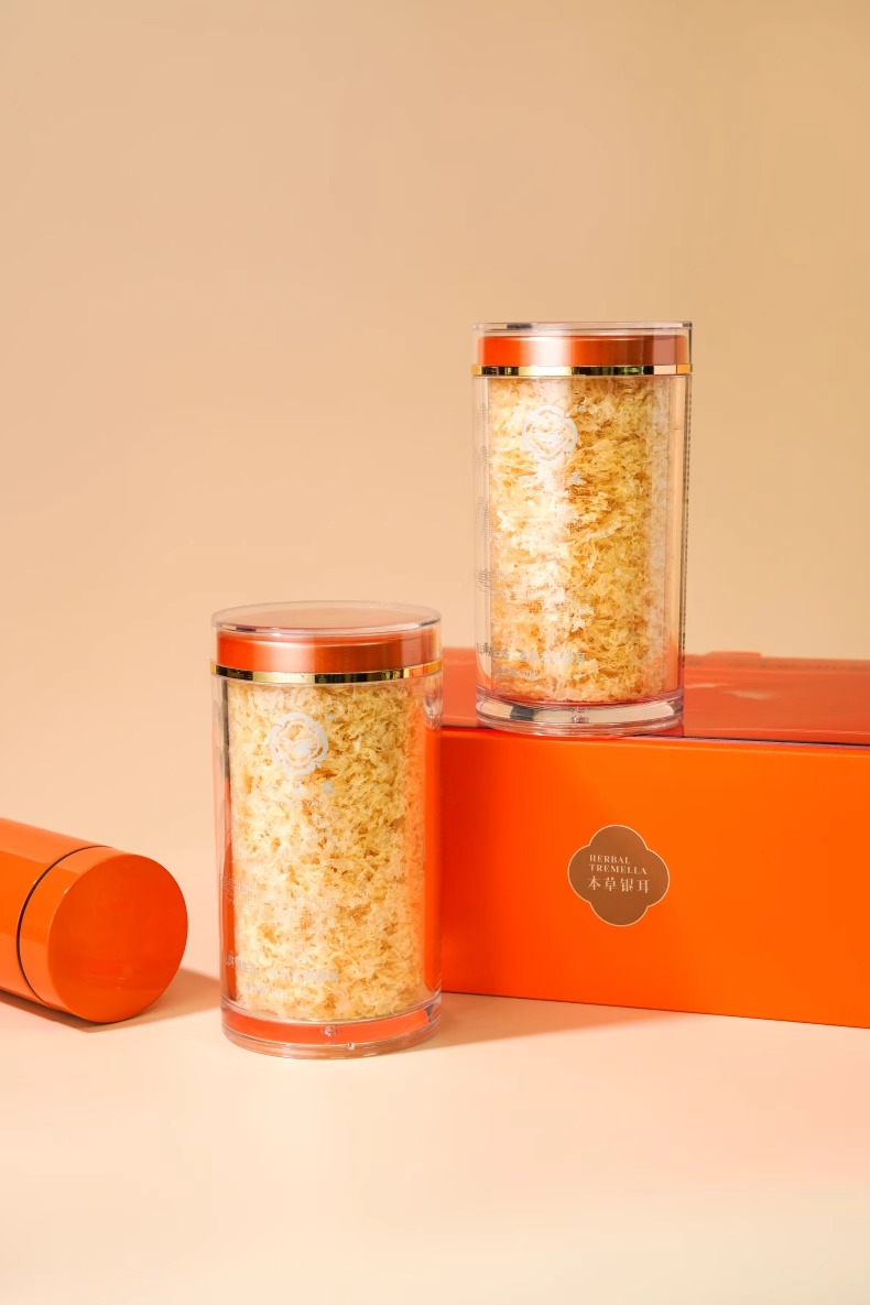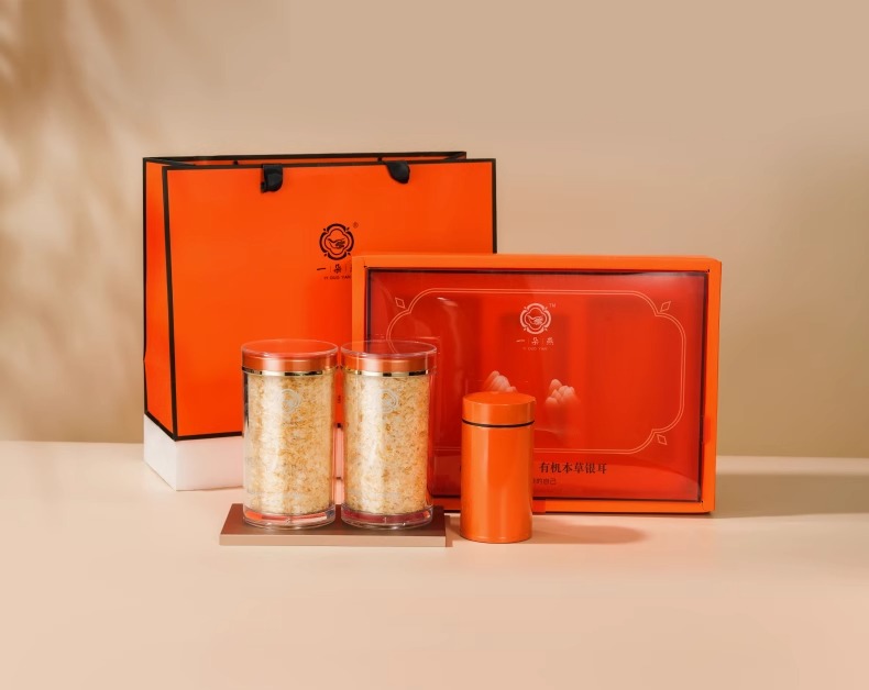 【分仓直发包邮】一朵燕有机本草银耳橙色礼盒160克(高端款)(有机本草银耳80g(高端款)*2罐+304食品级300毫升橙色焖烧杯*1个)