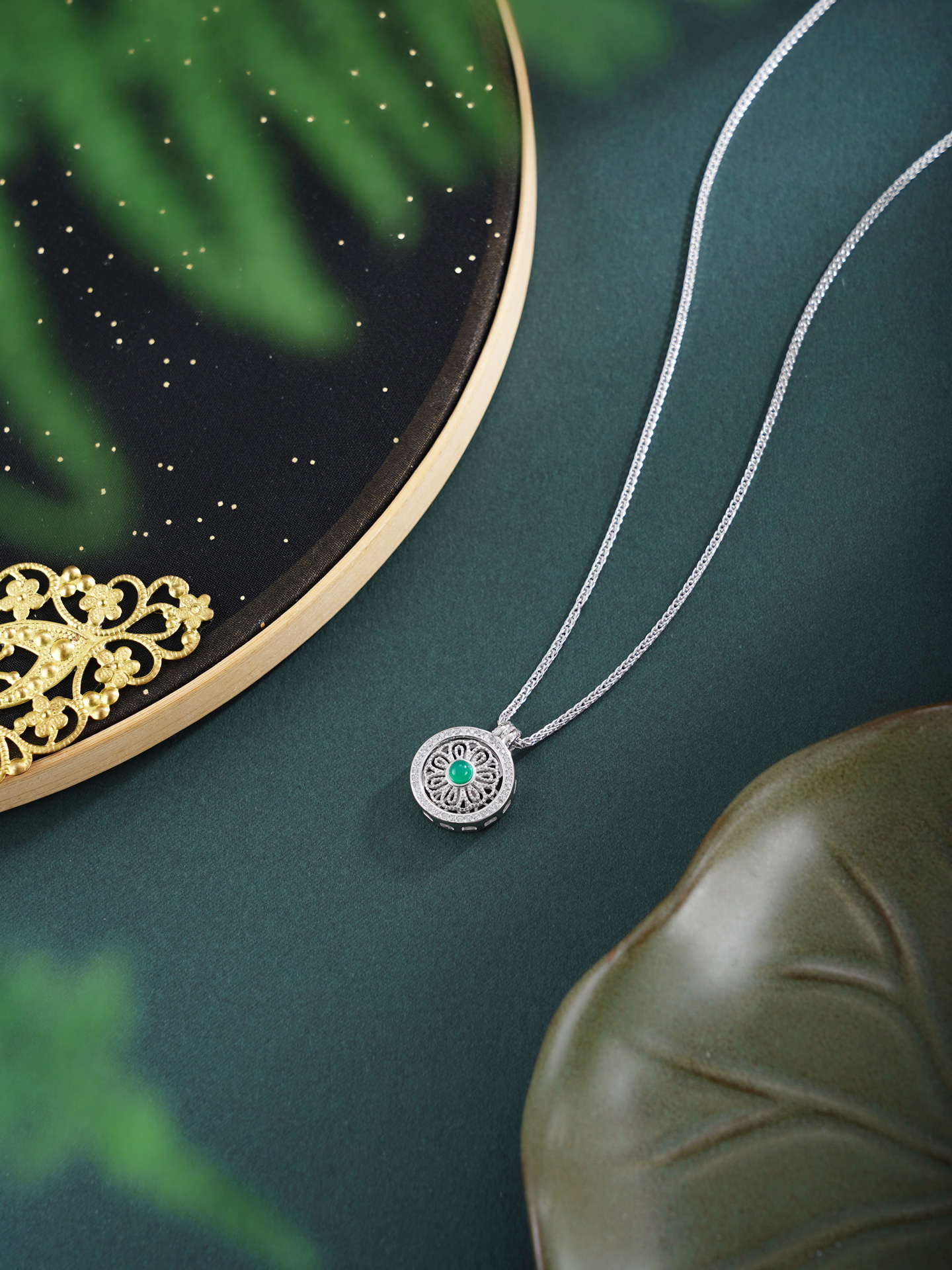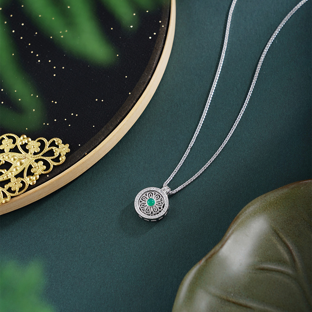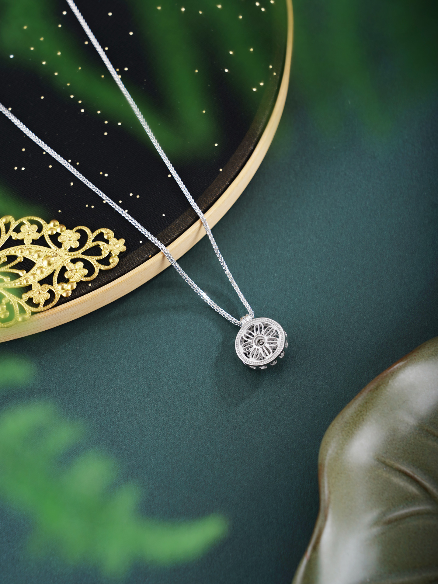 【寓意】:以纯银勾勒清雅花形,中央镶嵌玉髓,象征生命绽放与新生之机;可转动设计,寓意福运初启,事业逢春,生活芬芳满途。