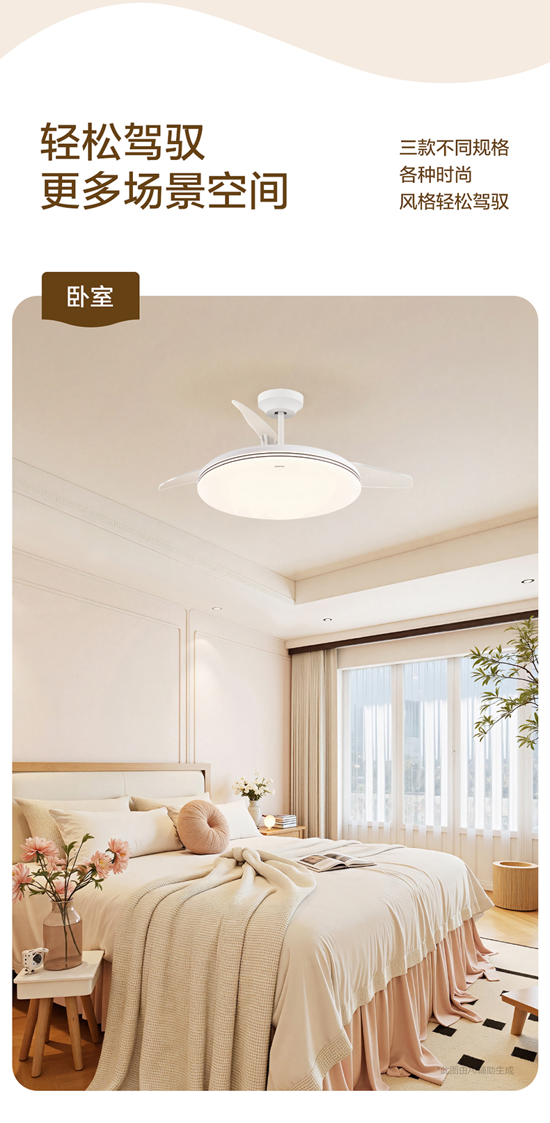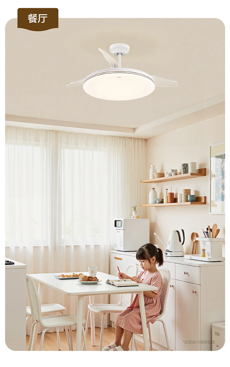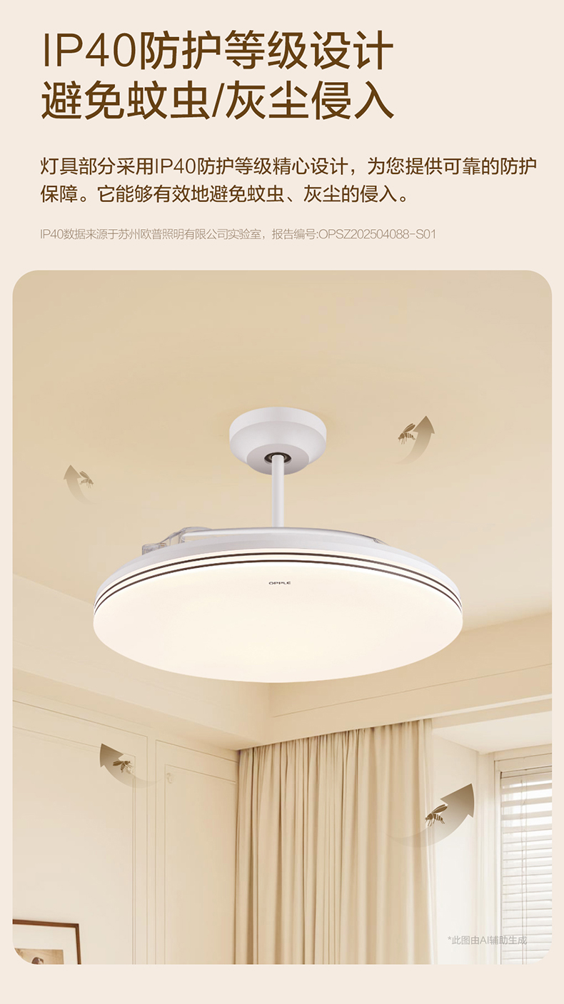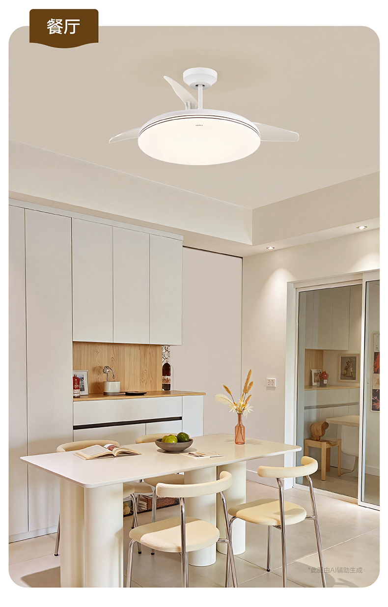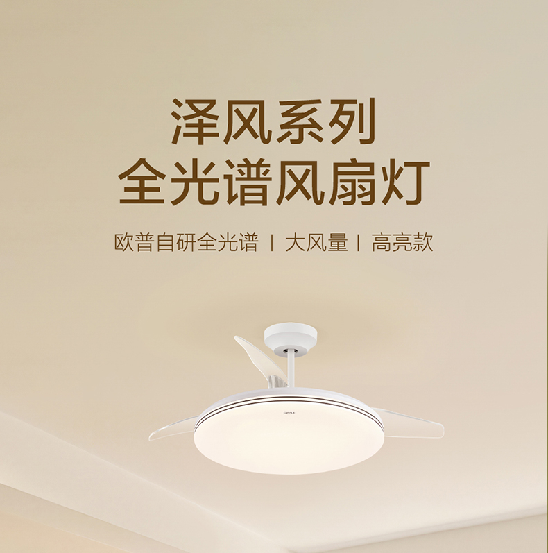欧普(OPPLE)泽风餐厅风扇灯全光谱现代简约卧室隐形吊扇灯