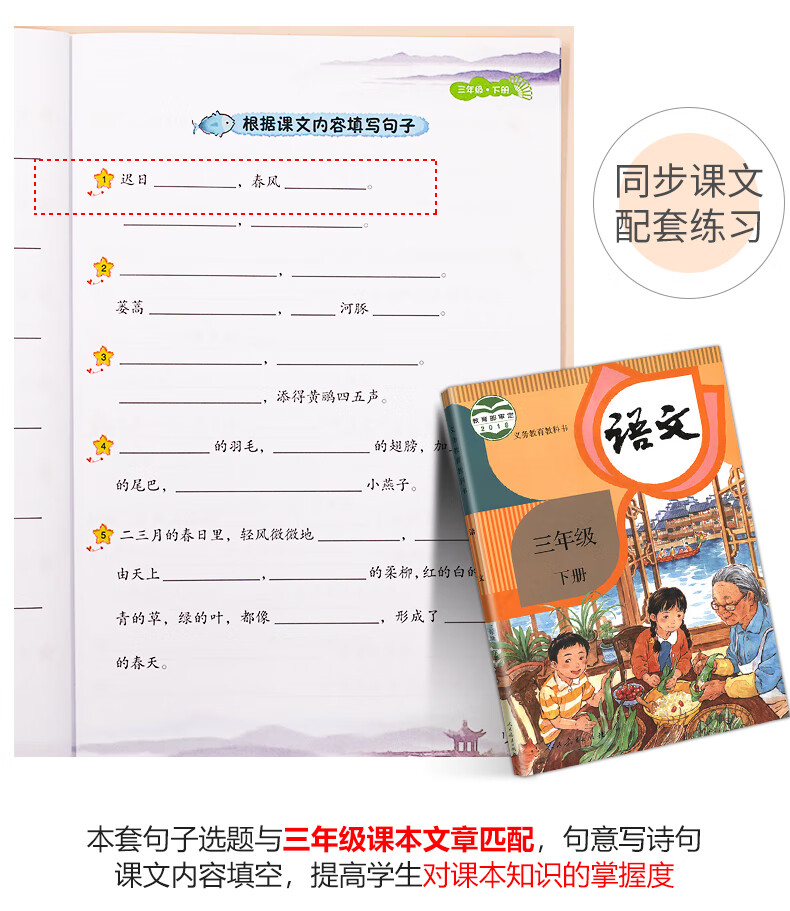 (仓发) 小学三年级下册句子训练配套人教版课本同步练习册语文专项训练好词好句优美句子积累/开明出版社/汉之简教学资源编辑室/9787513149174