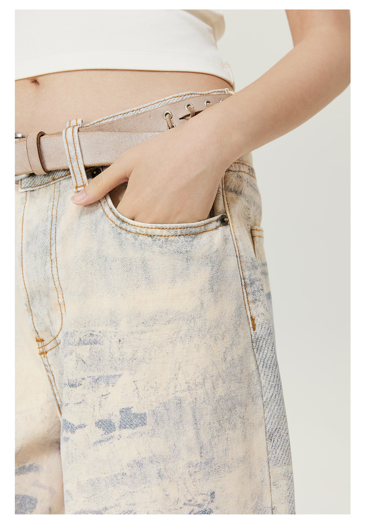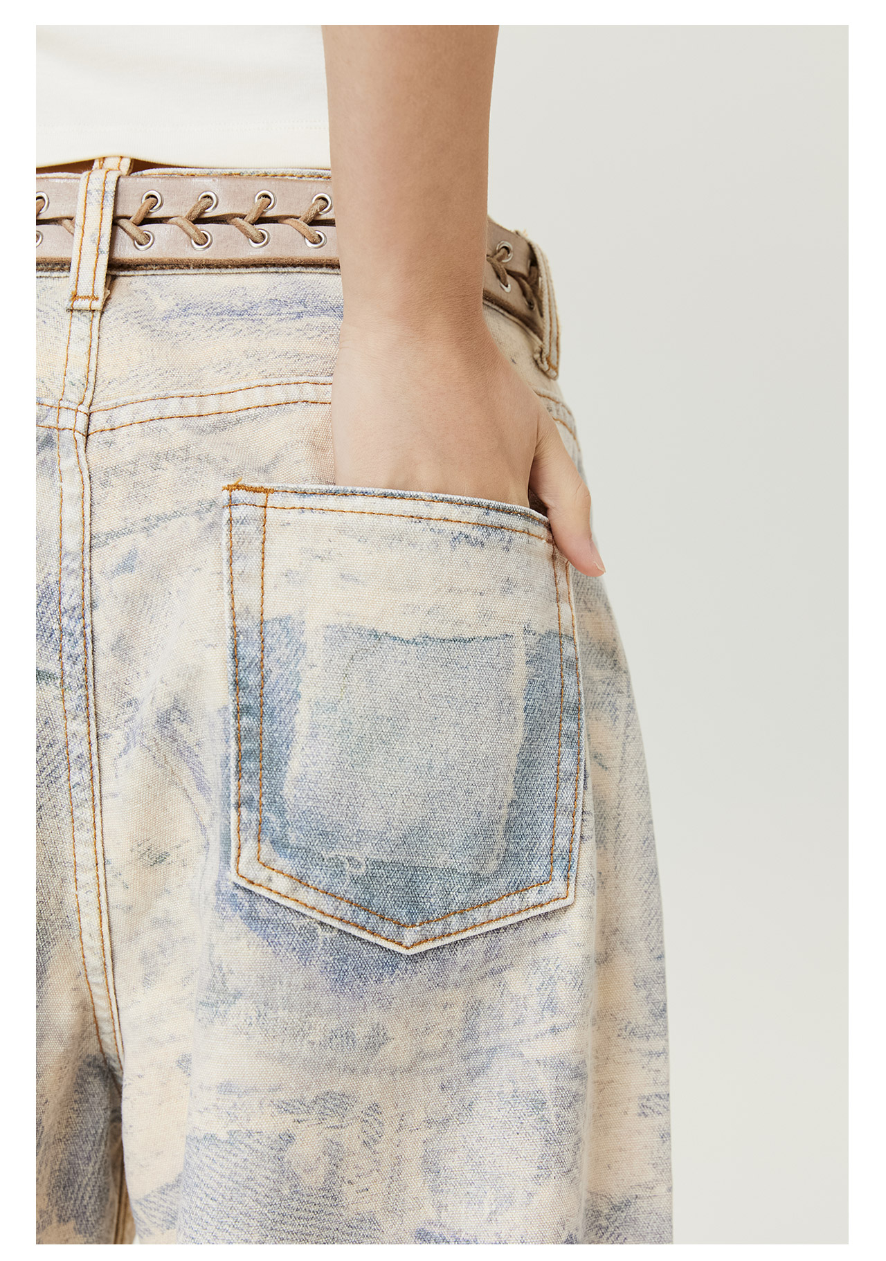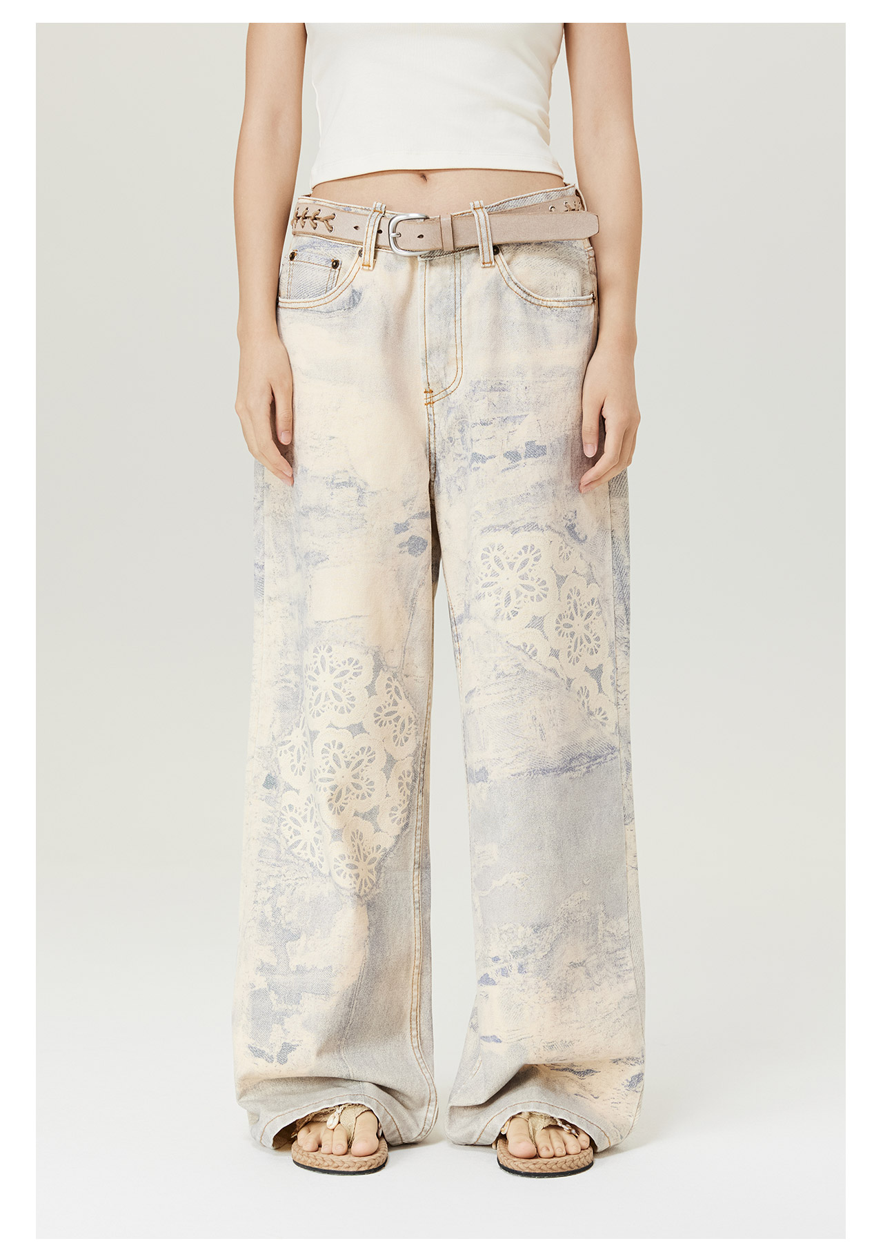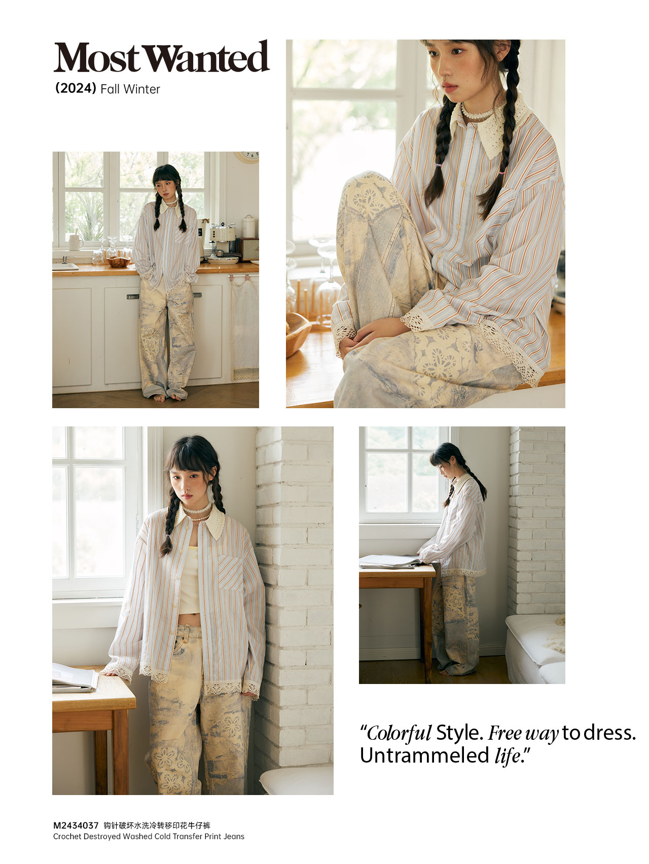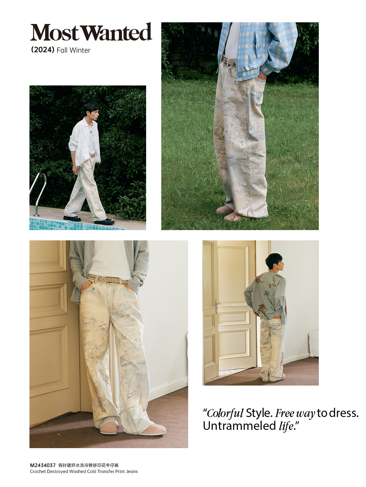 mostwantedlab彩虹/M2434037/钩针破坏冷转移牛仔裤