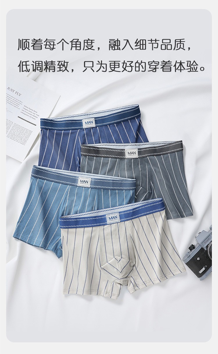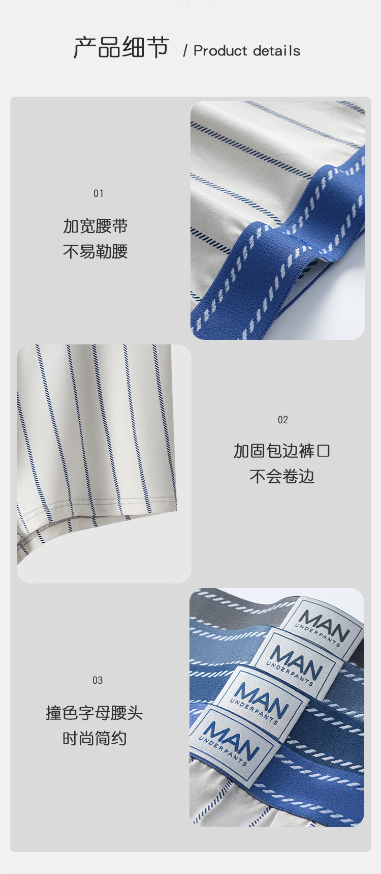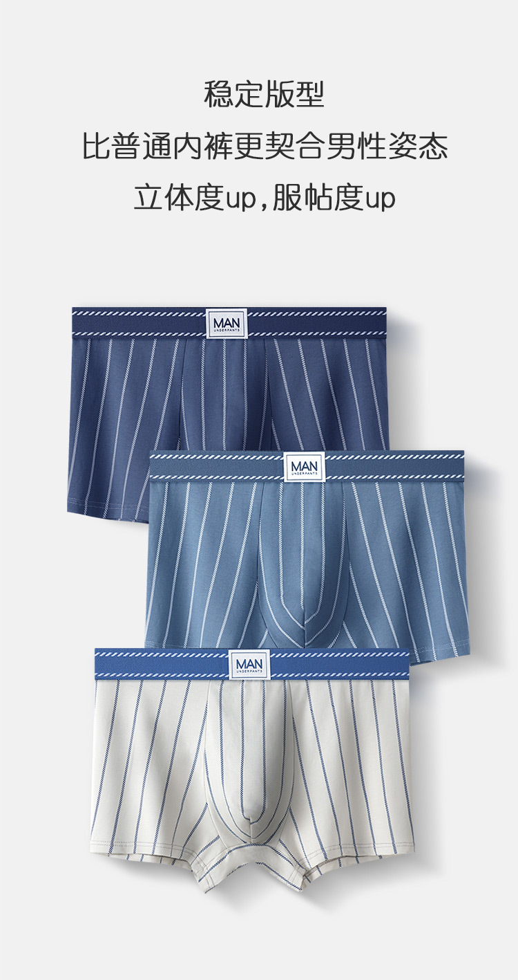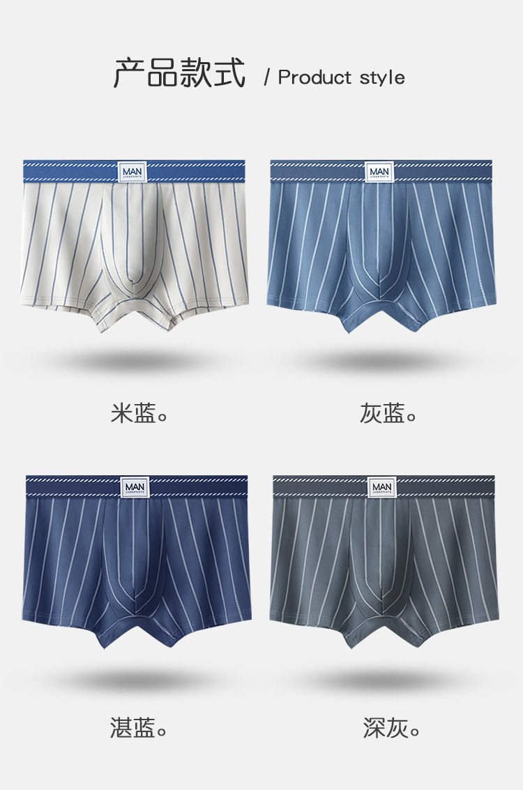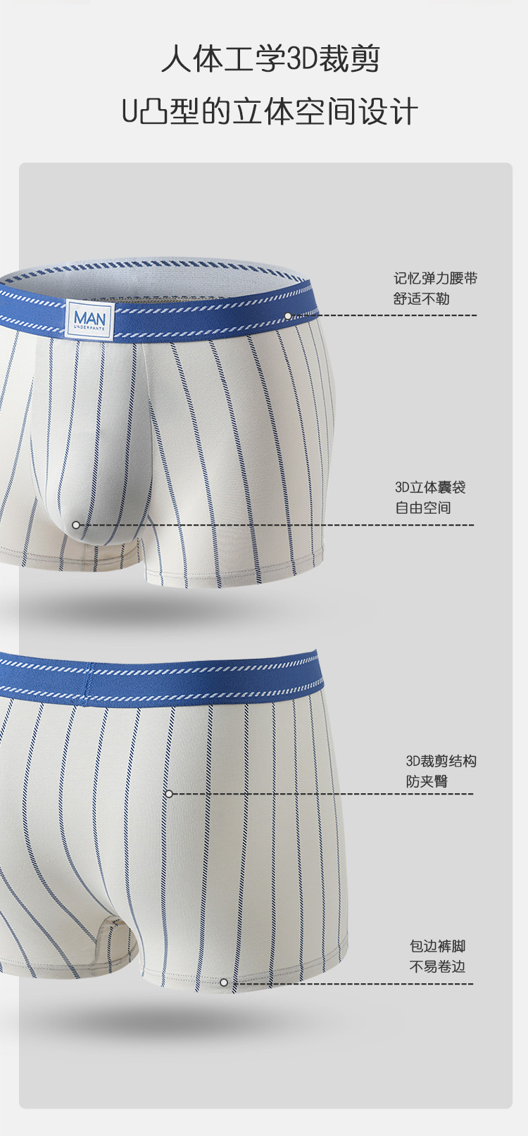 【莫代尔混纺棉男士内裤】3A级抑菌裆男士条纹内裤 柔软透气贴身舒适细腻亲肤高弹力礼盒装