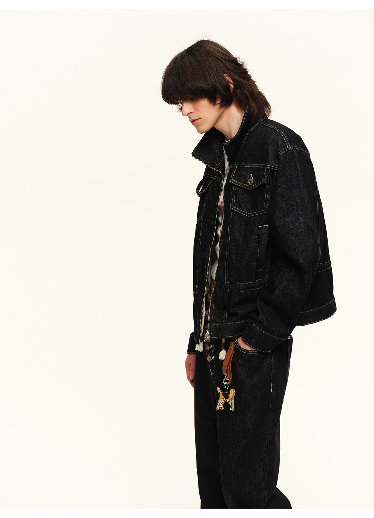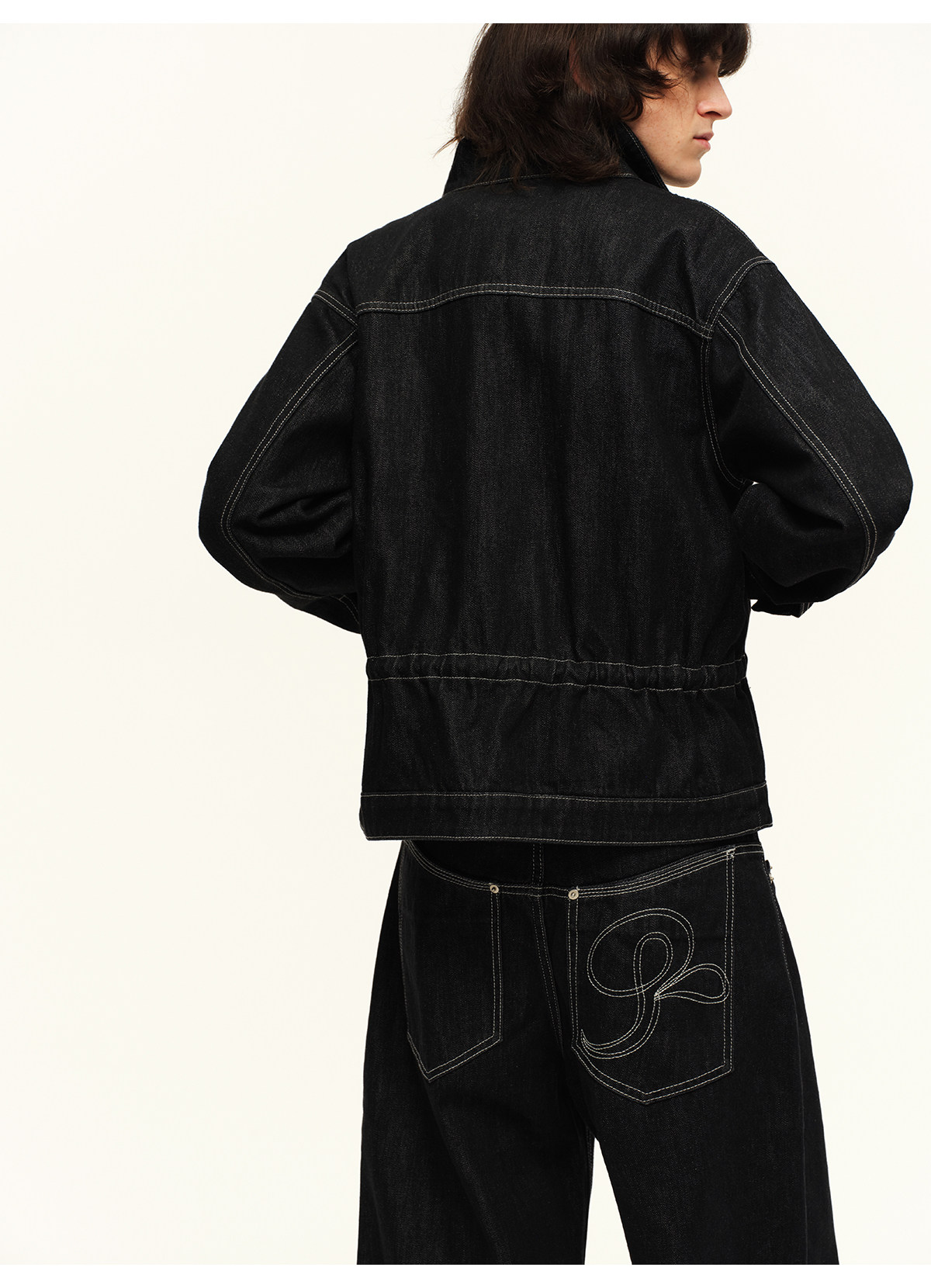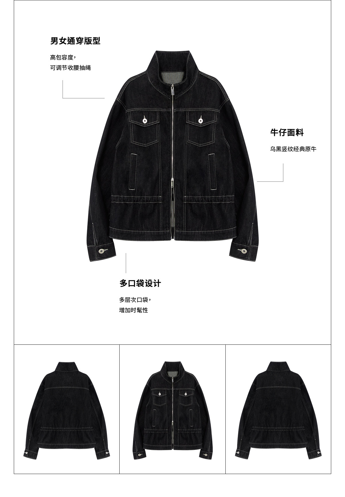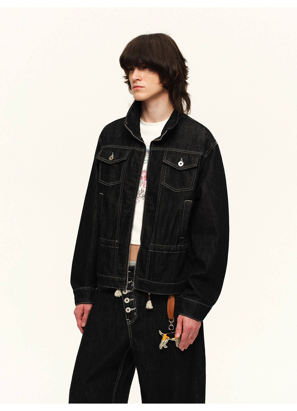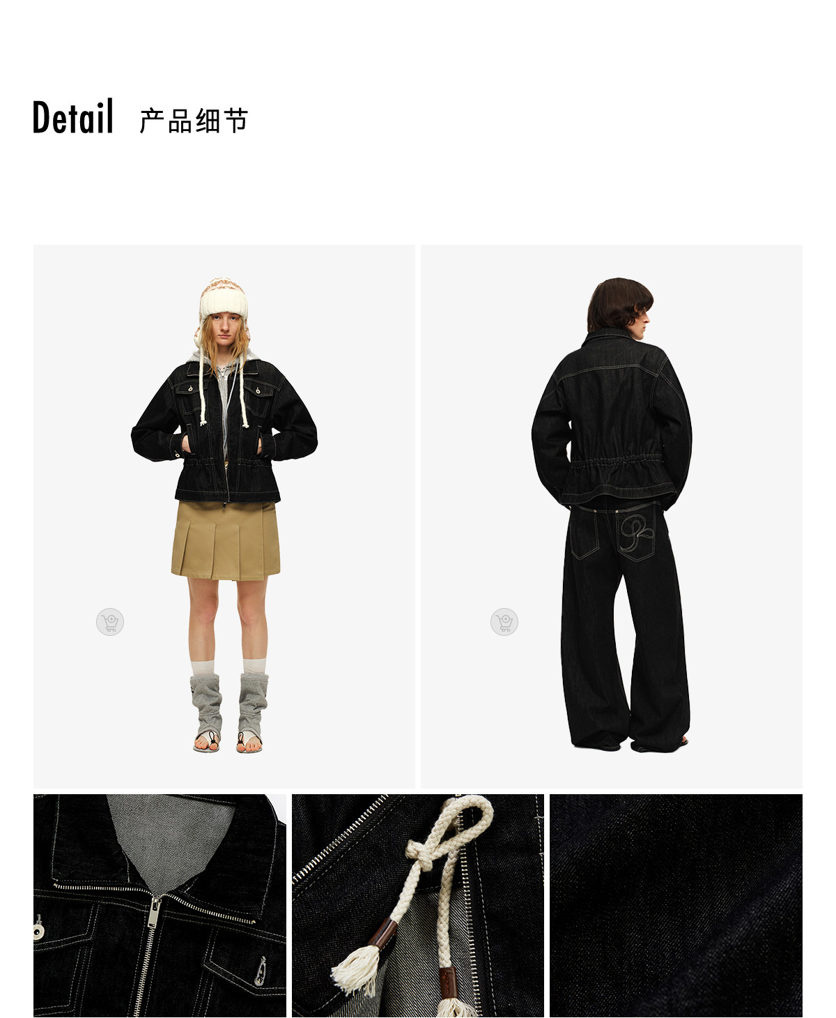 出逃赤岗西/C26SSW170/复古竖纹原牛廓形牛仔外套
