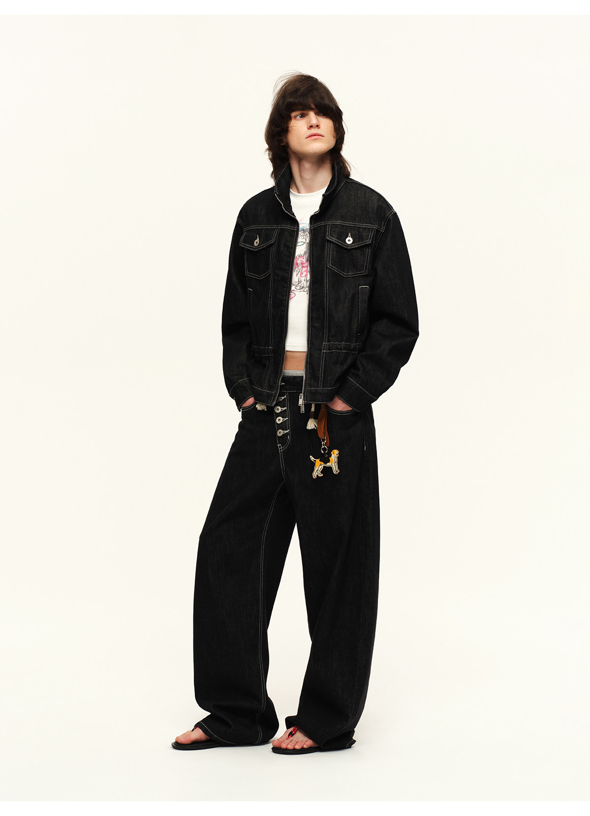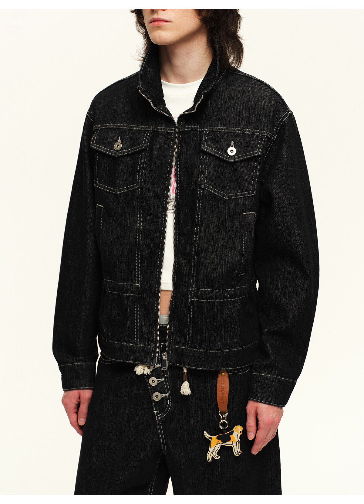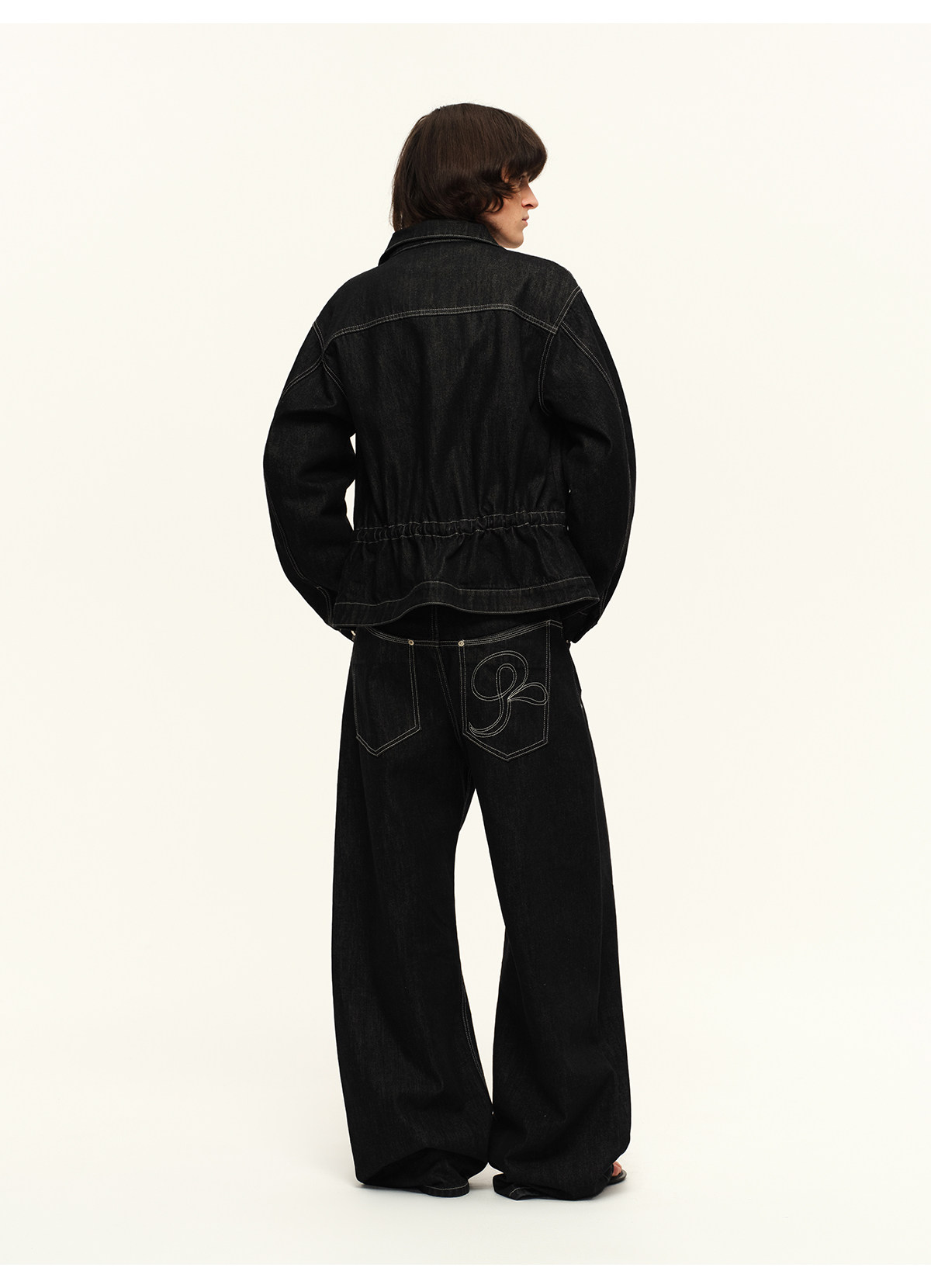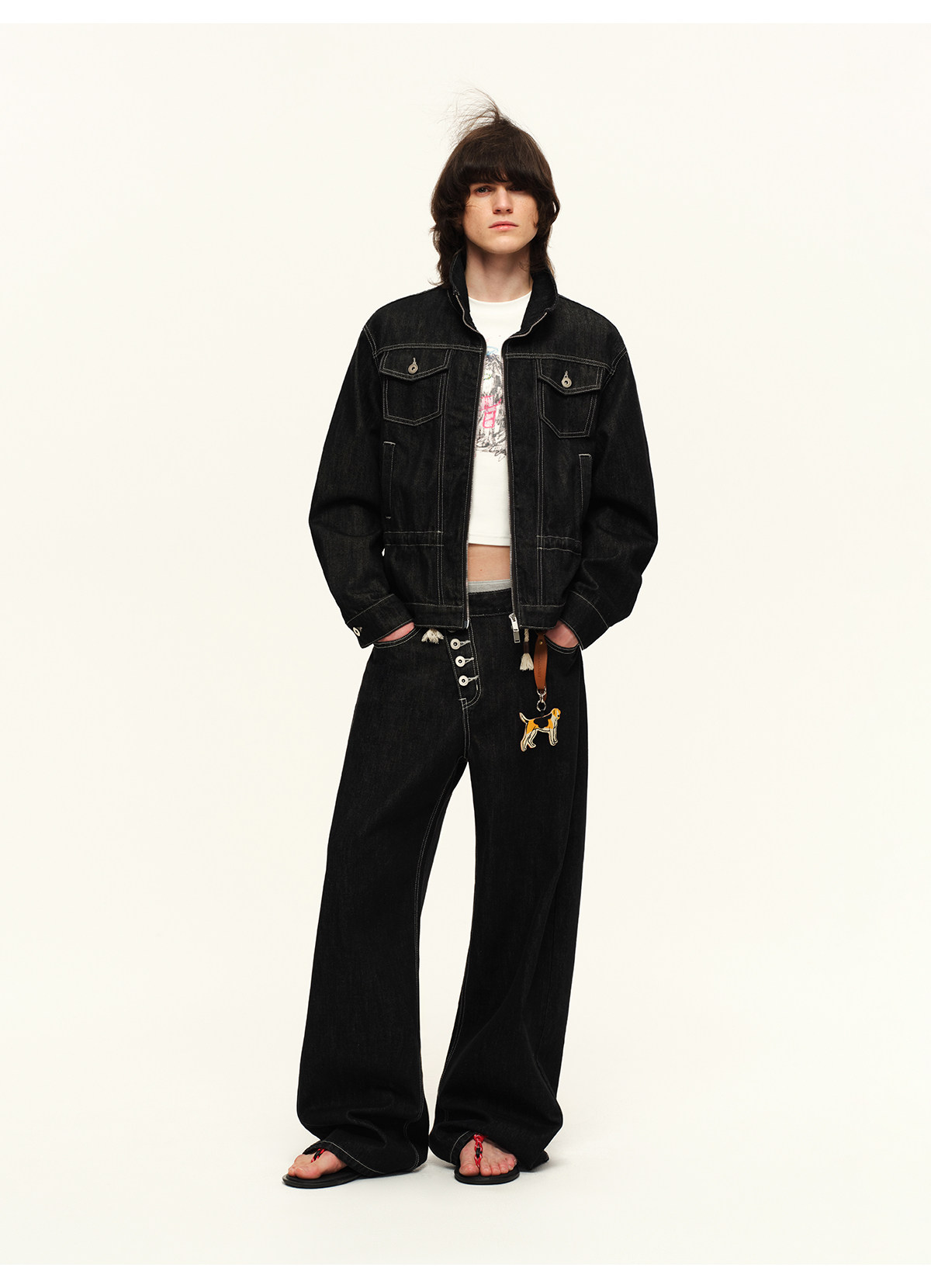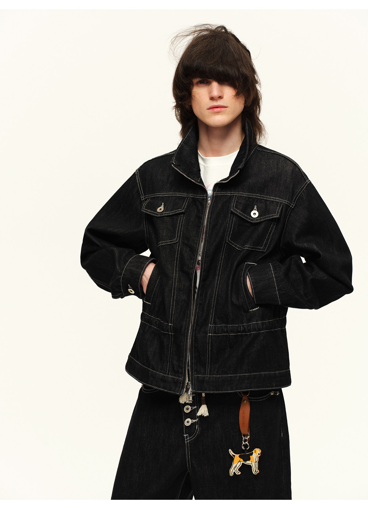 出逃赤岗西/C26SSW170/复古竖纹原牛廓形牛仔外套