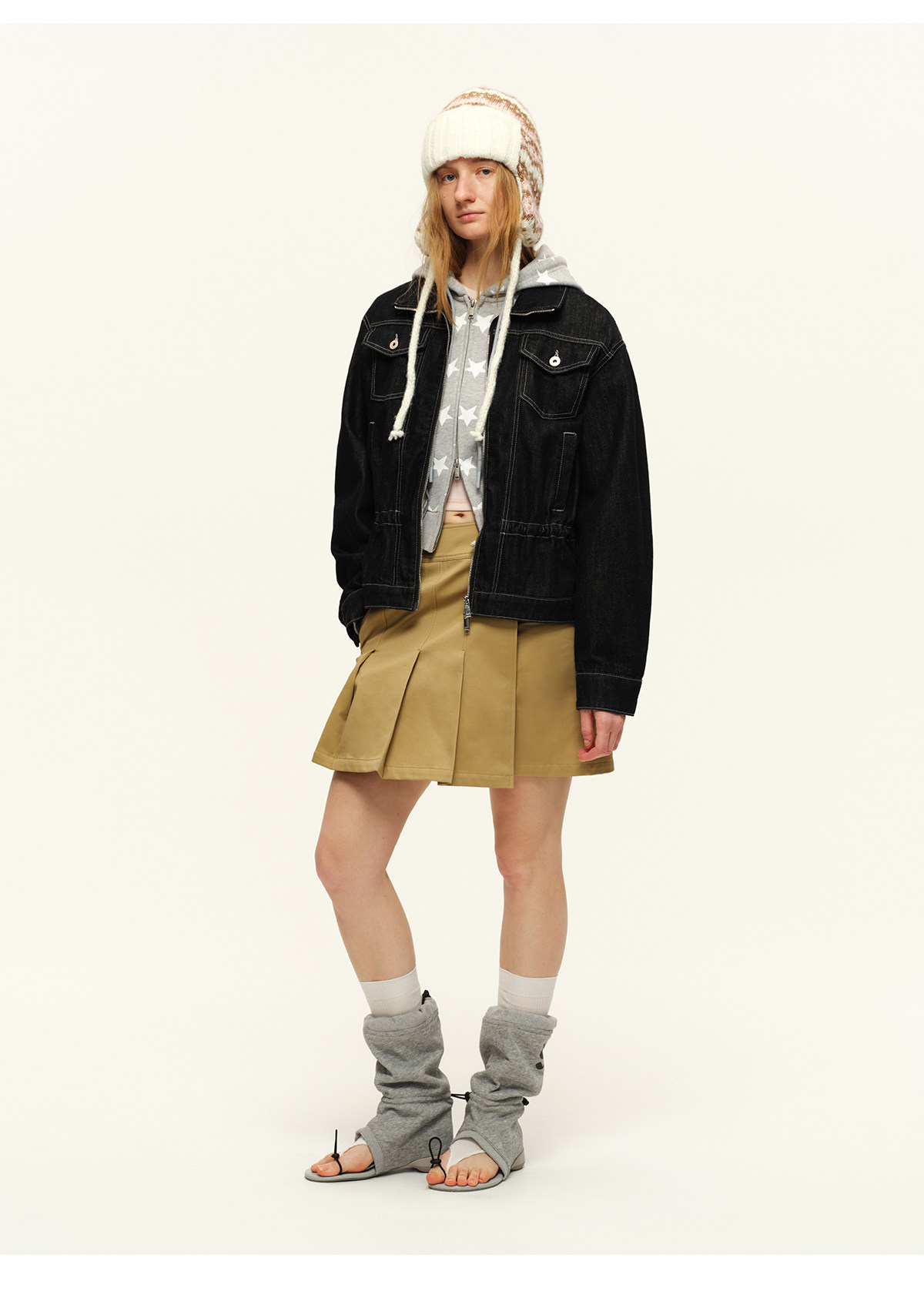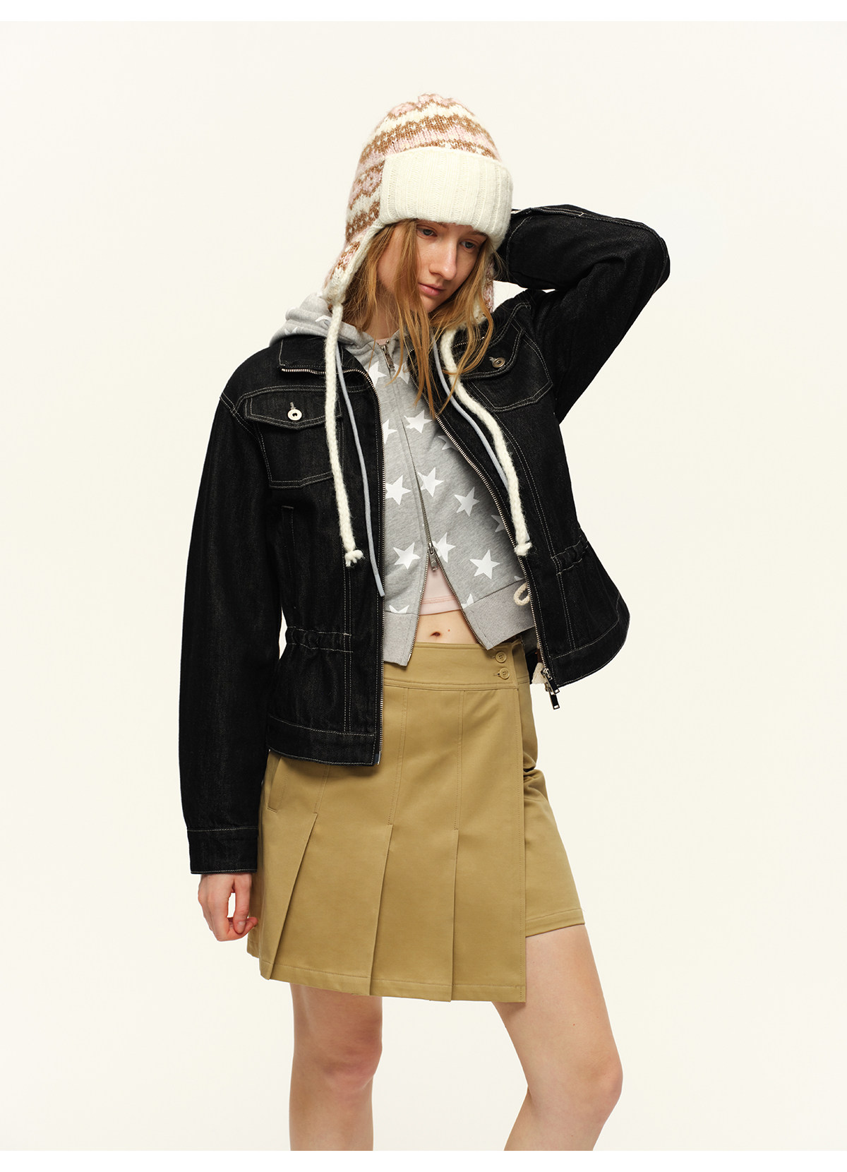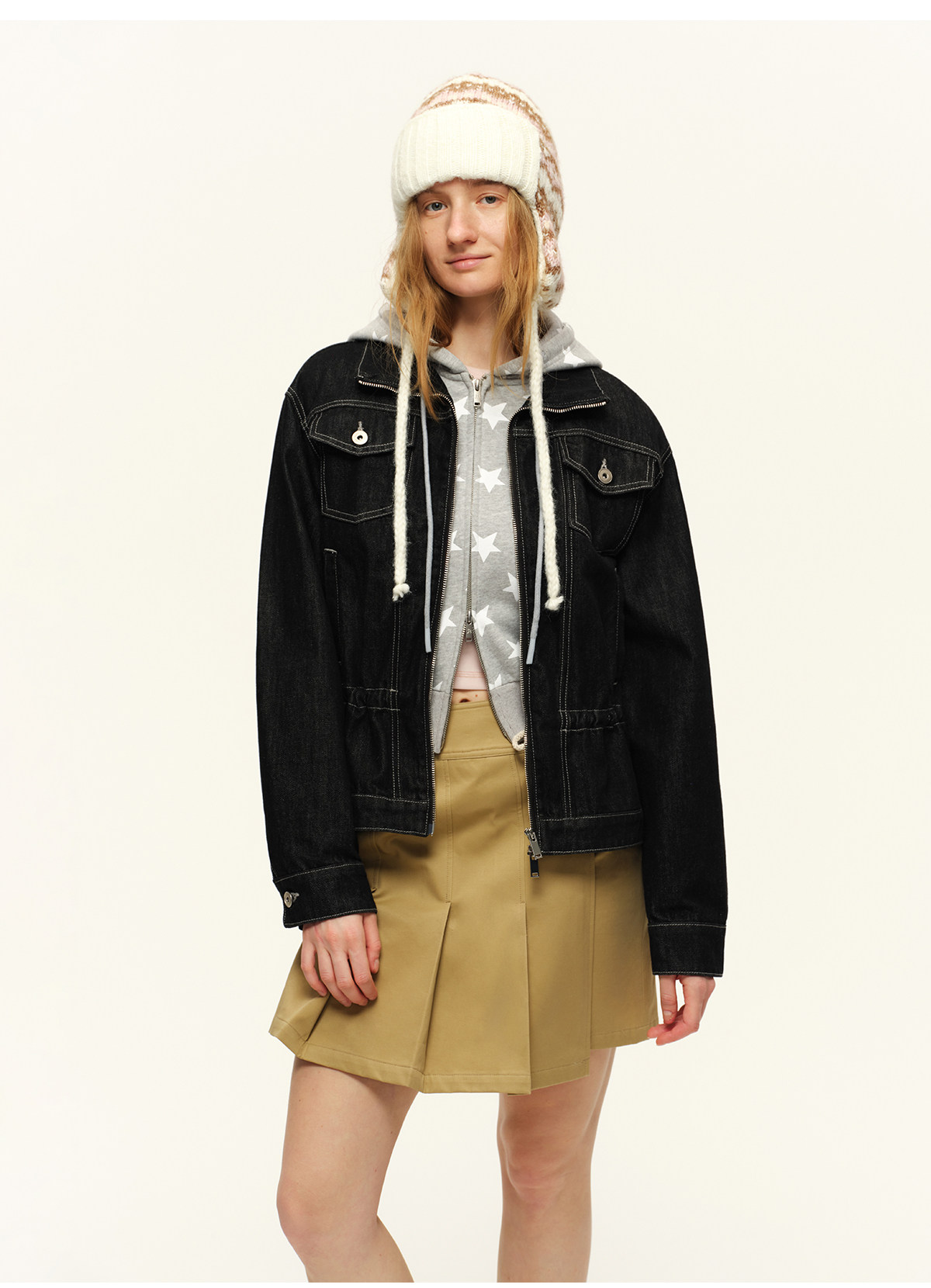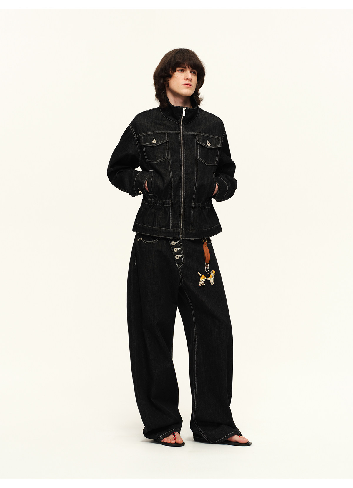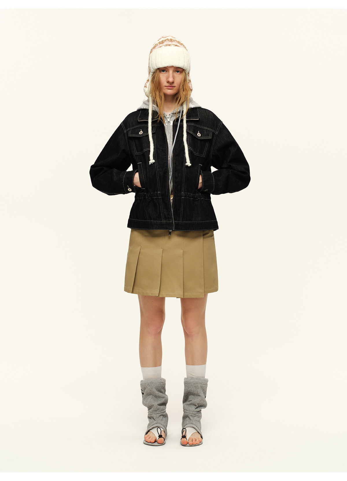 出逃赤岗西/C26SSW170/复古竖纹原牛廓形牛仔外套