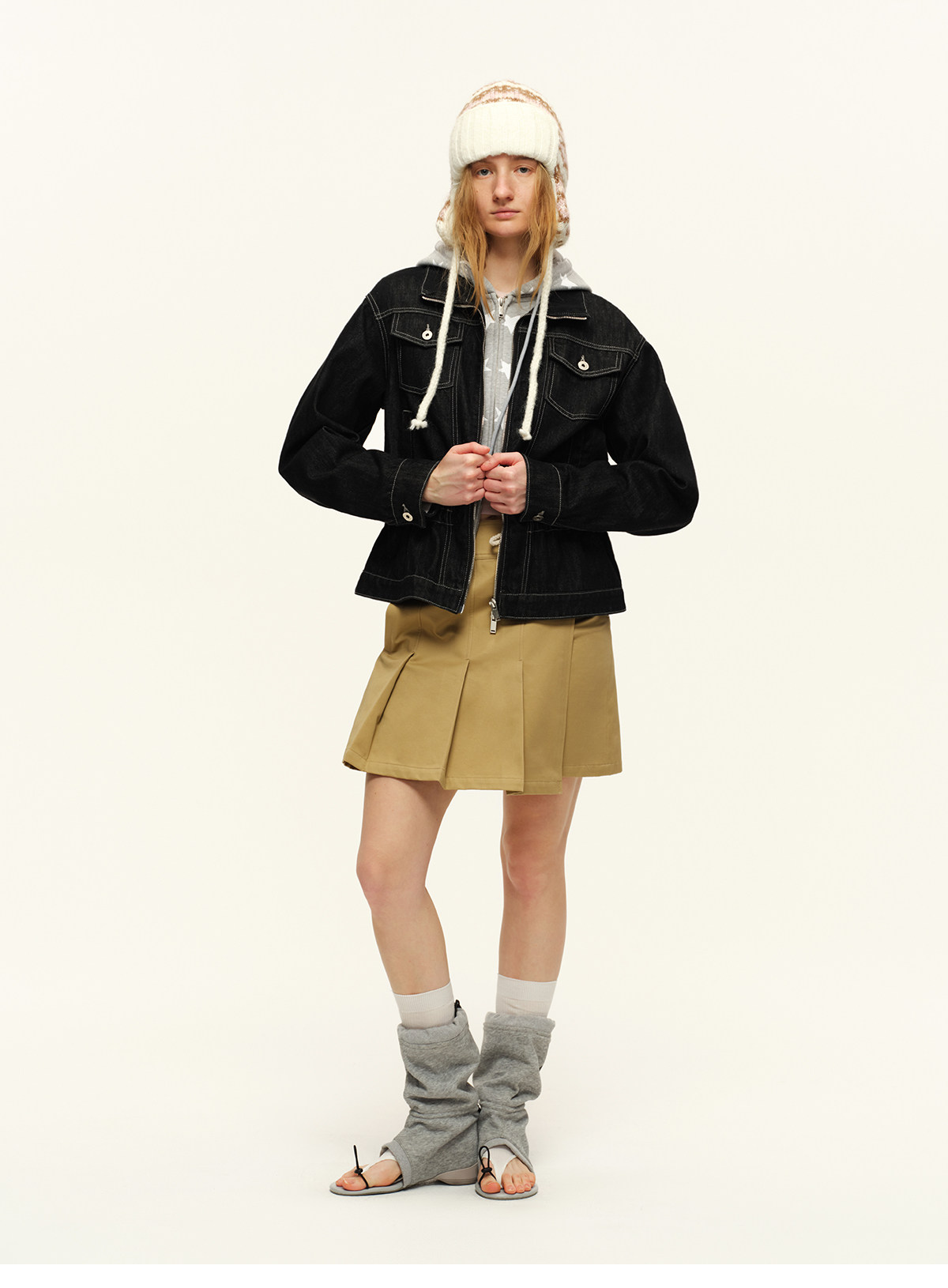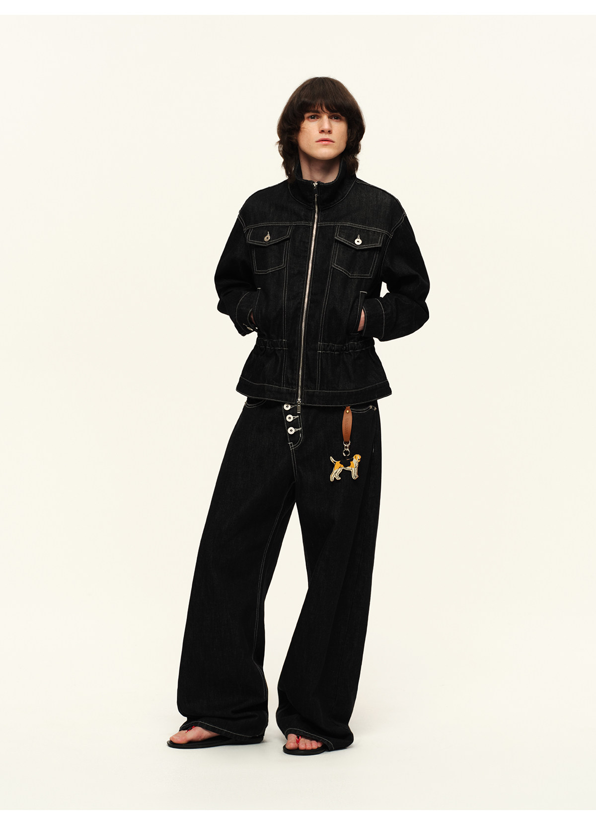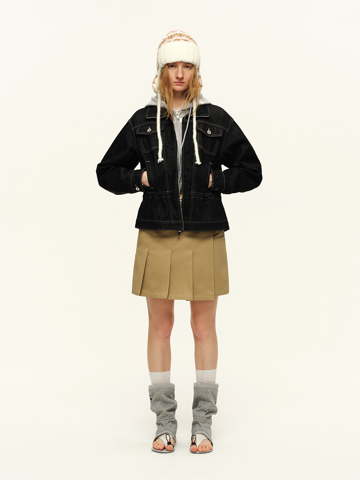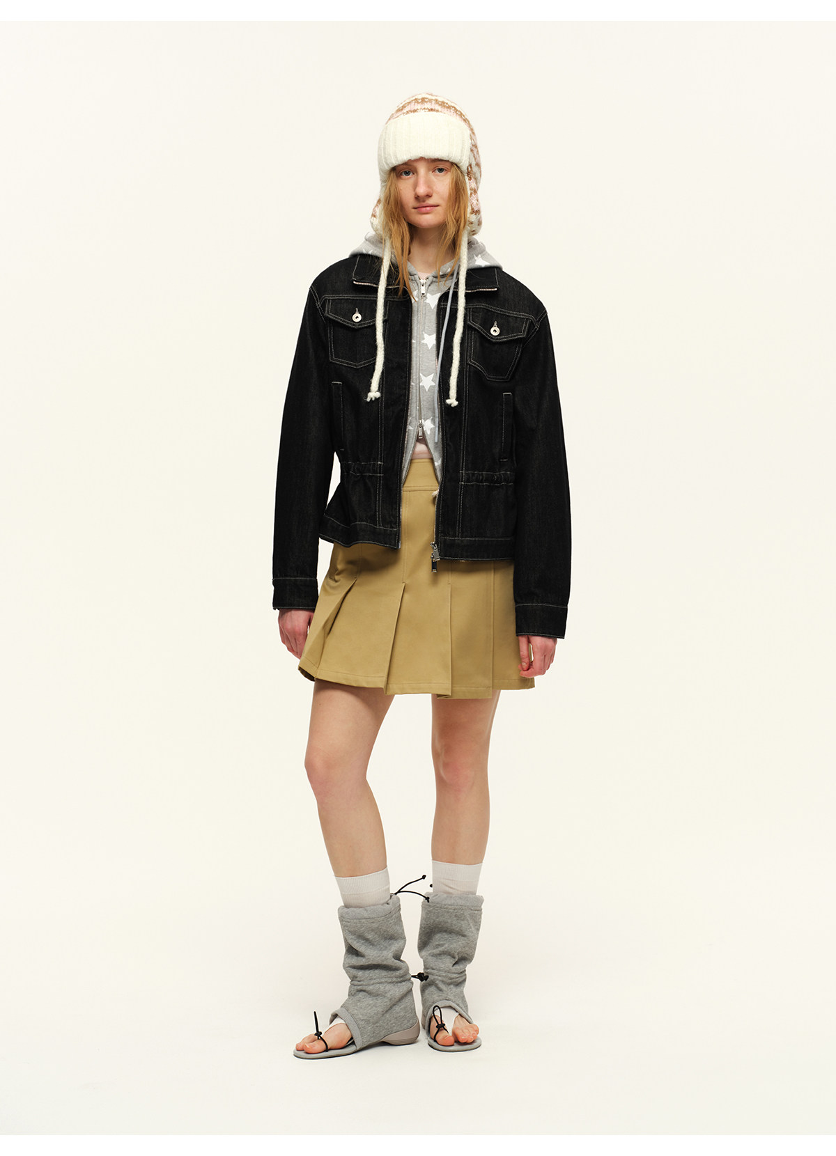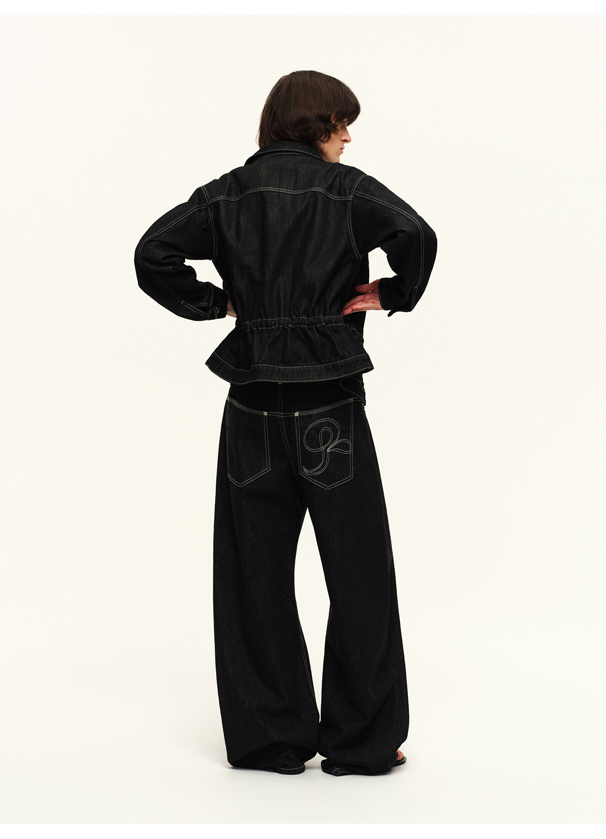 出逃赤岗西/C26SSW170/复古竖纹原牛廓形牛仔外套