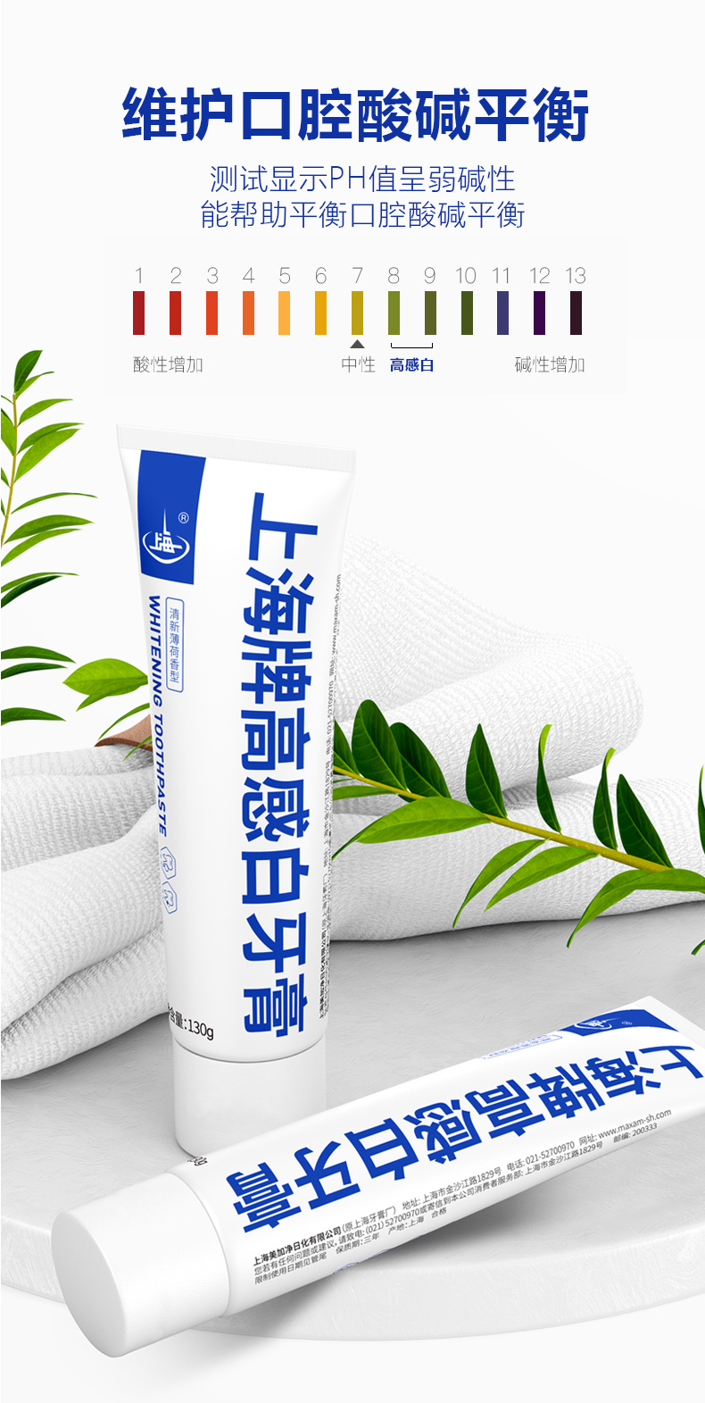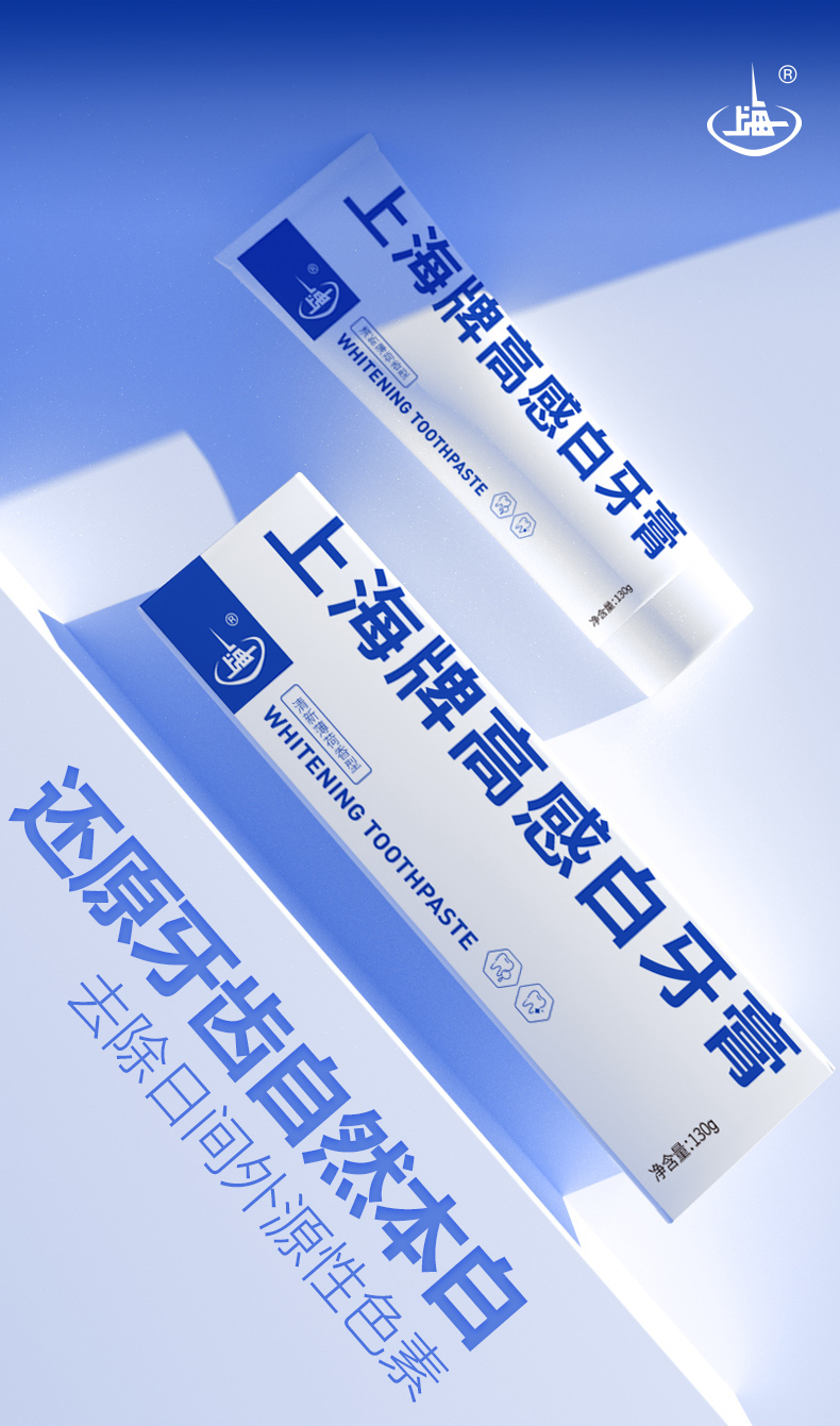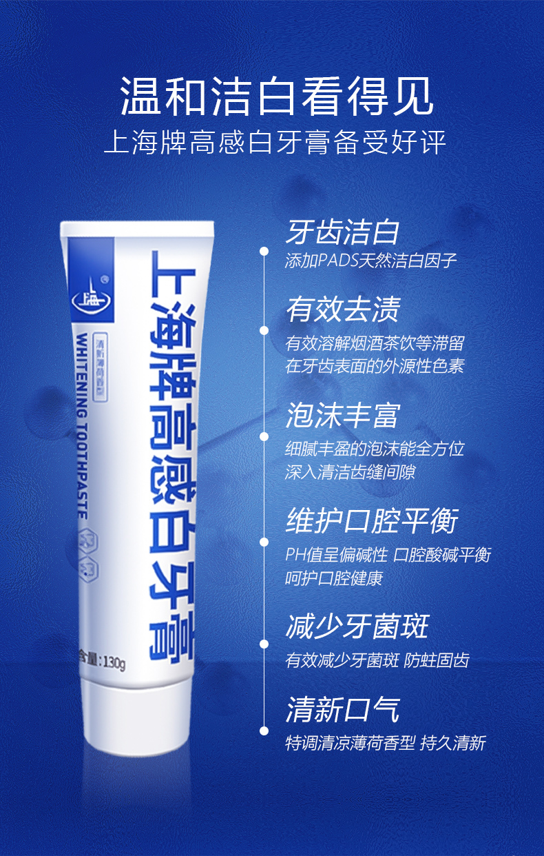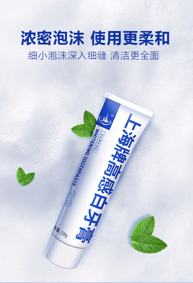上海高感白牙膏130g 牙齿去渍还原牙本白薄荷香型