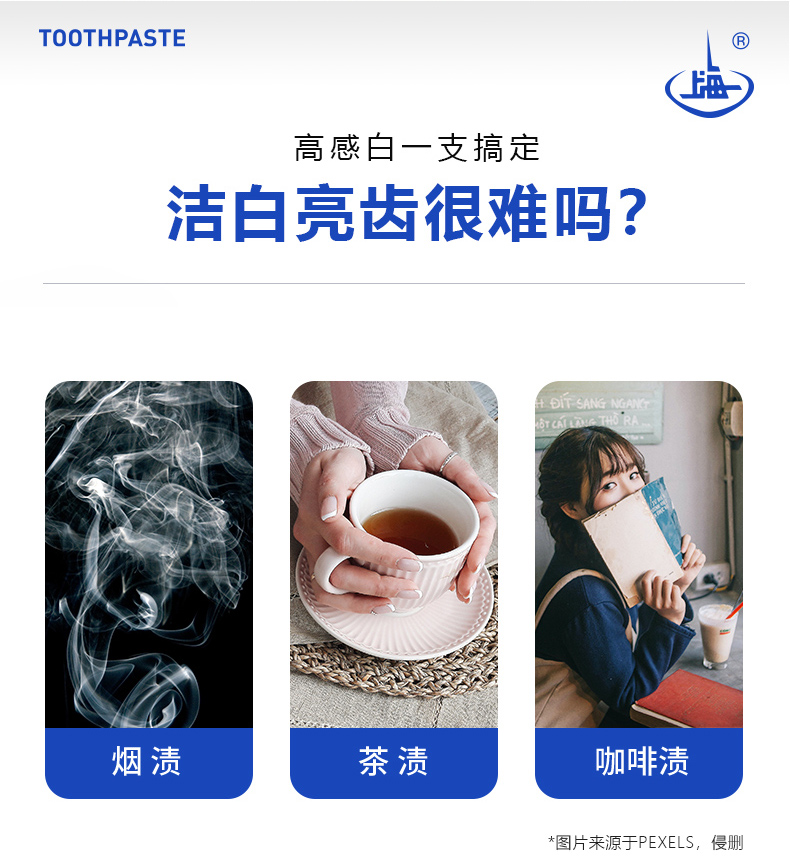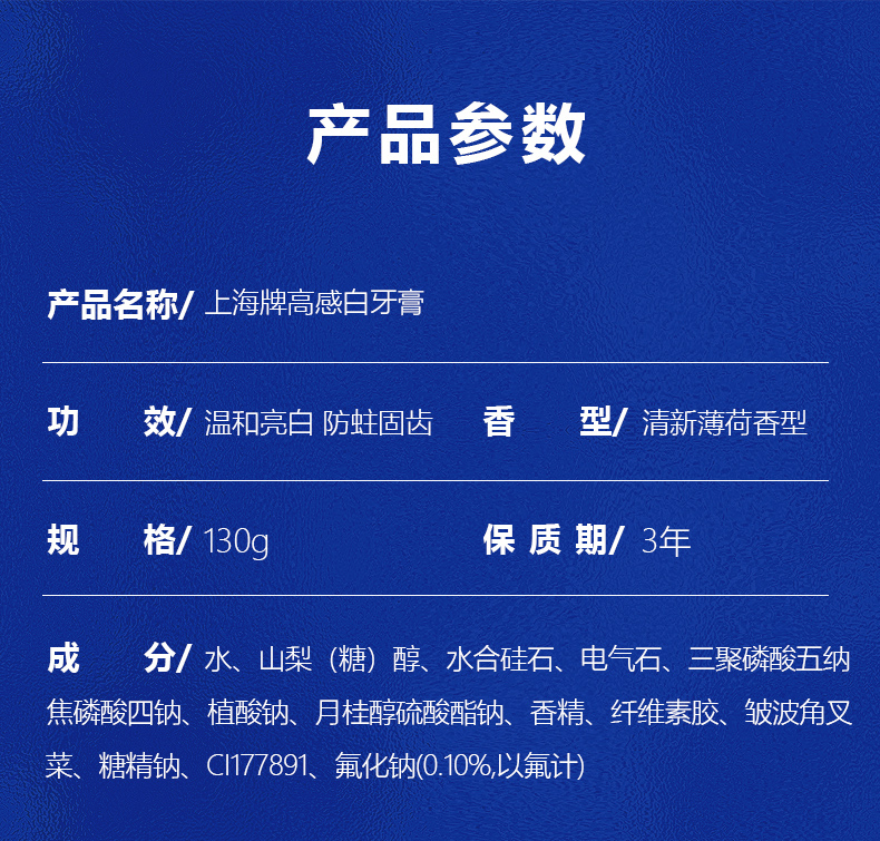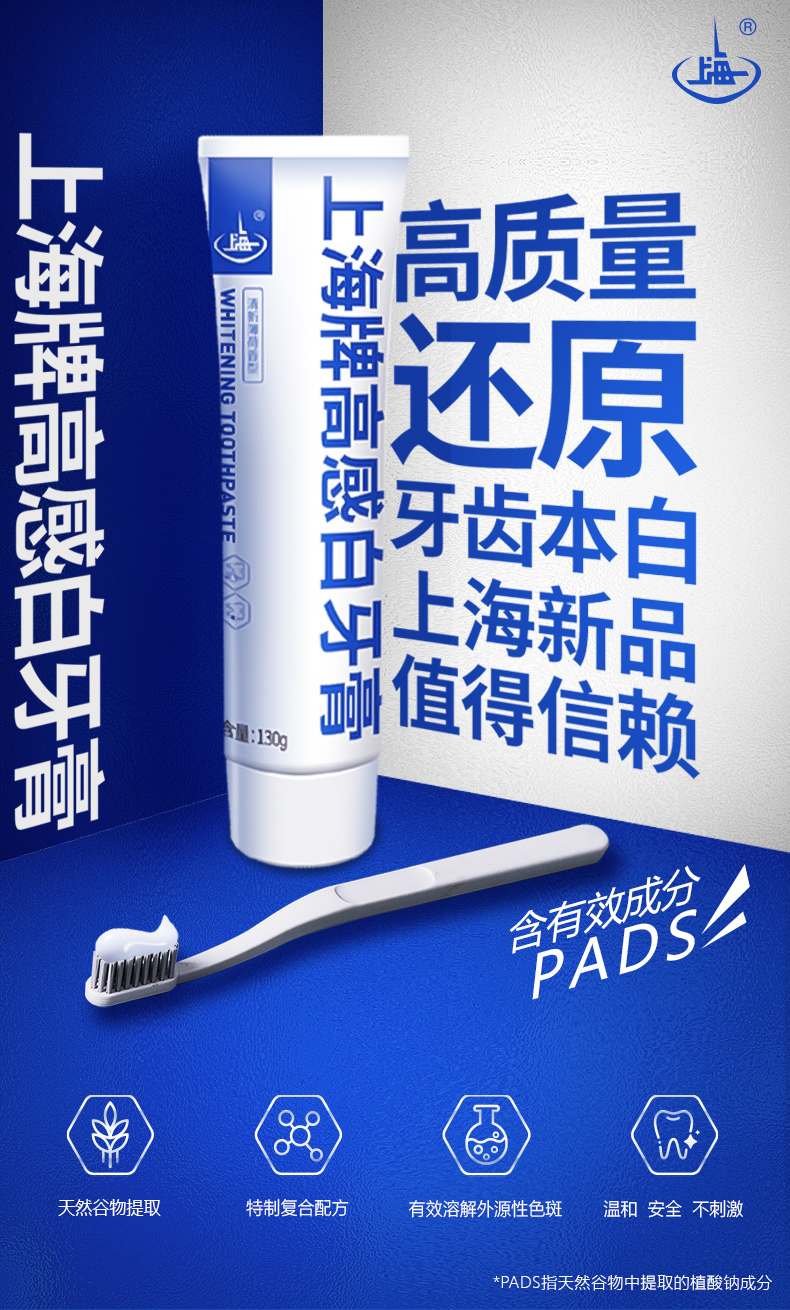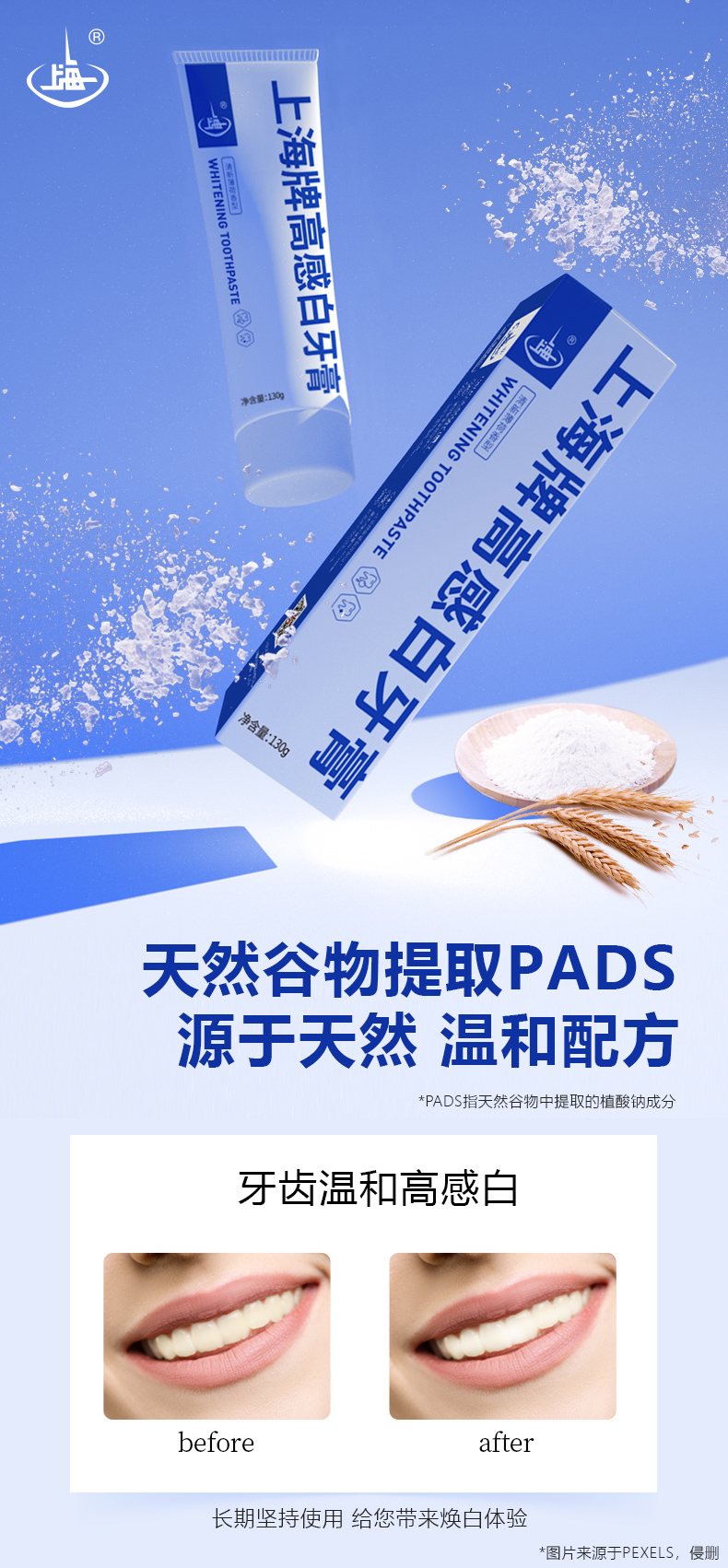 上海高感白牙膏130g 牙齿去渍还原牙本白薄荷香型