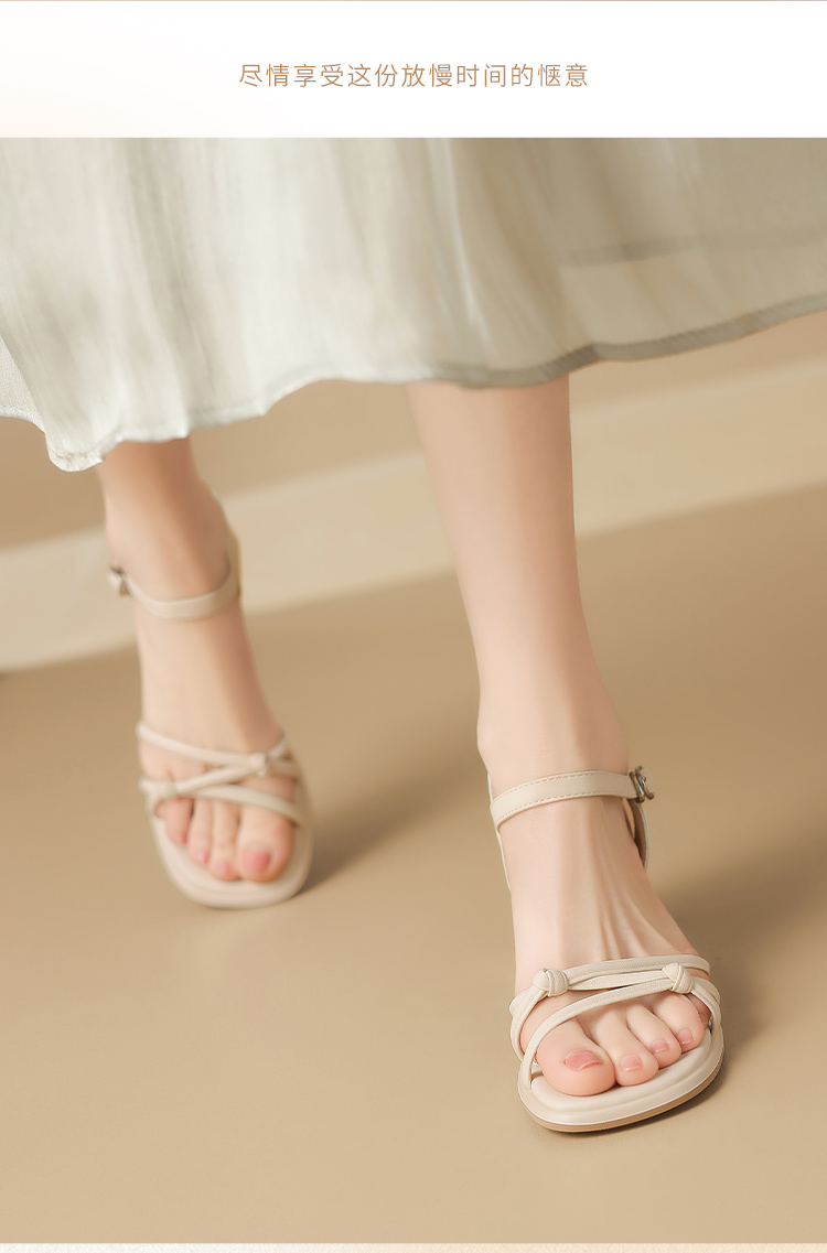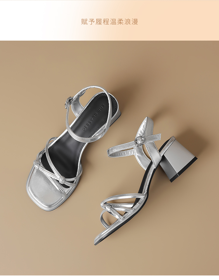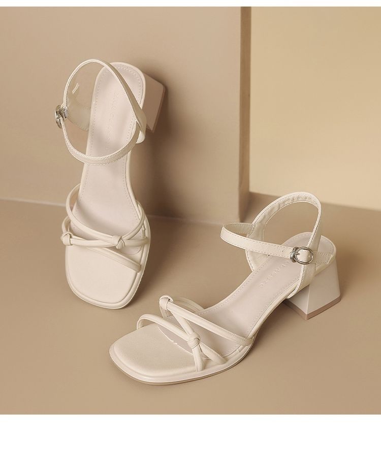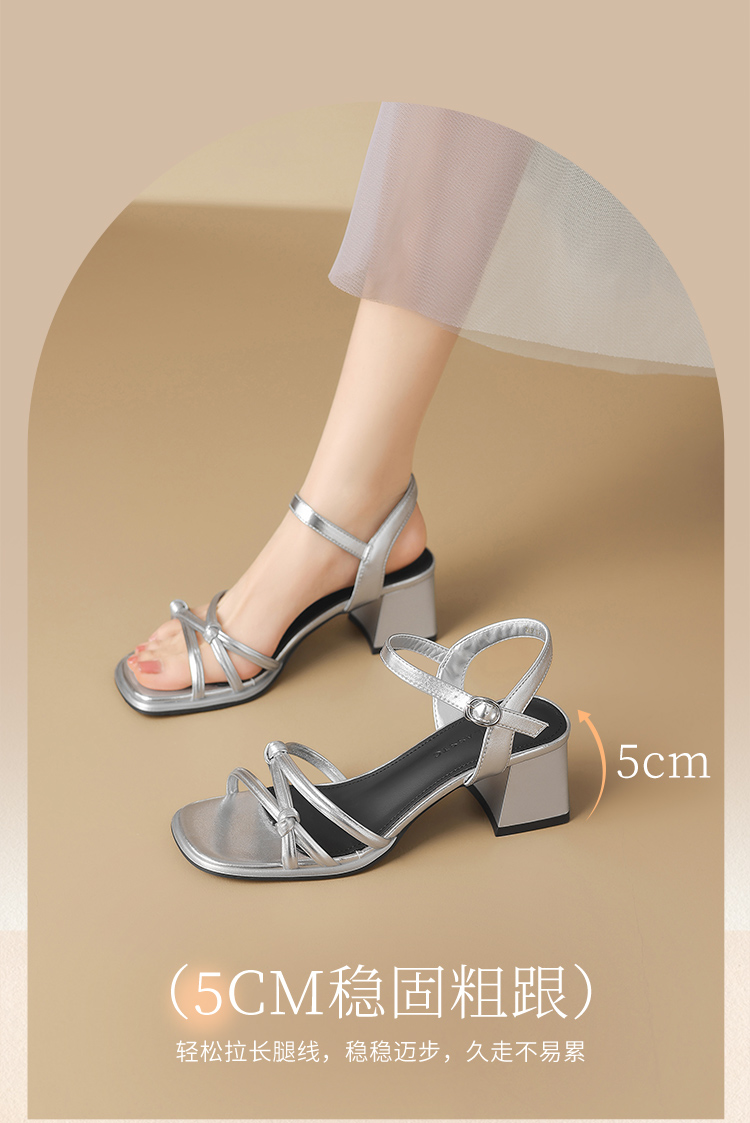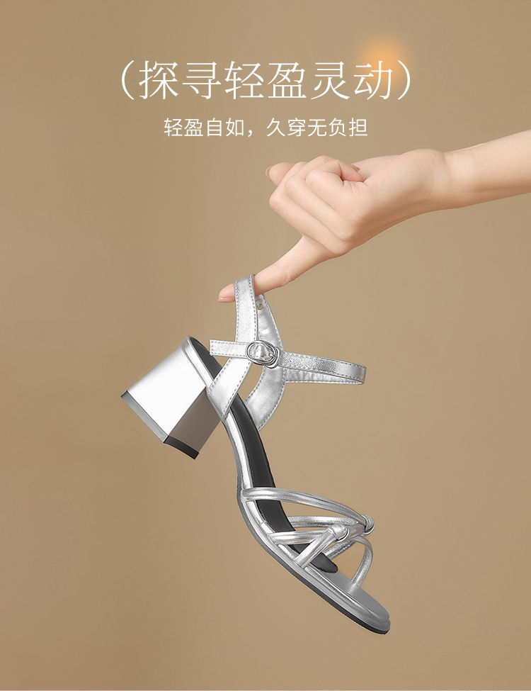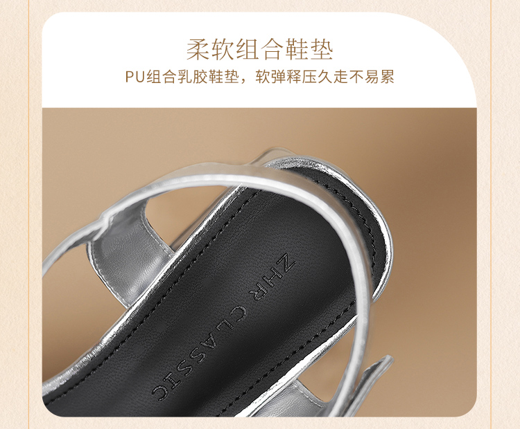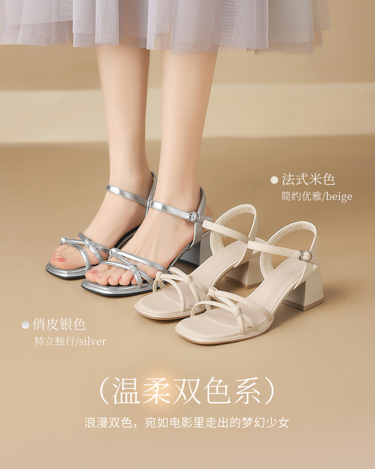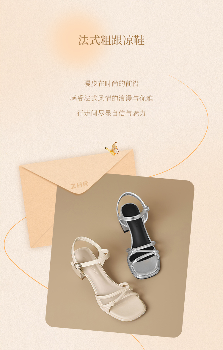 ZHR2025新款法式粗跟凉鞋女款夏季一字带外穿度假高跟鞋