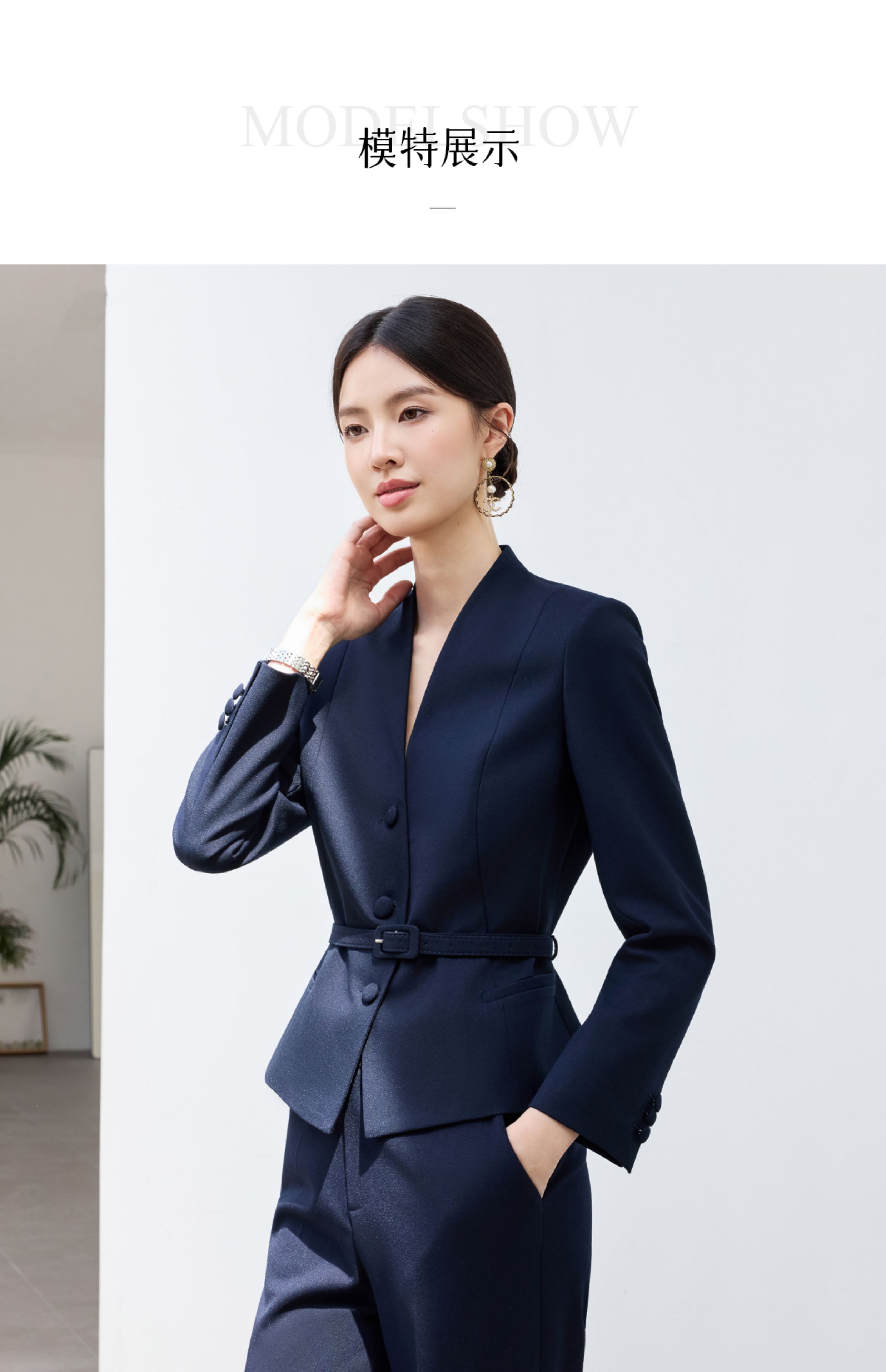 IWY/高级感藏青色西装套装女秋冬干练修身售楼部销售接待职业装25CP8120