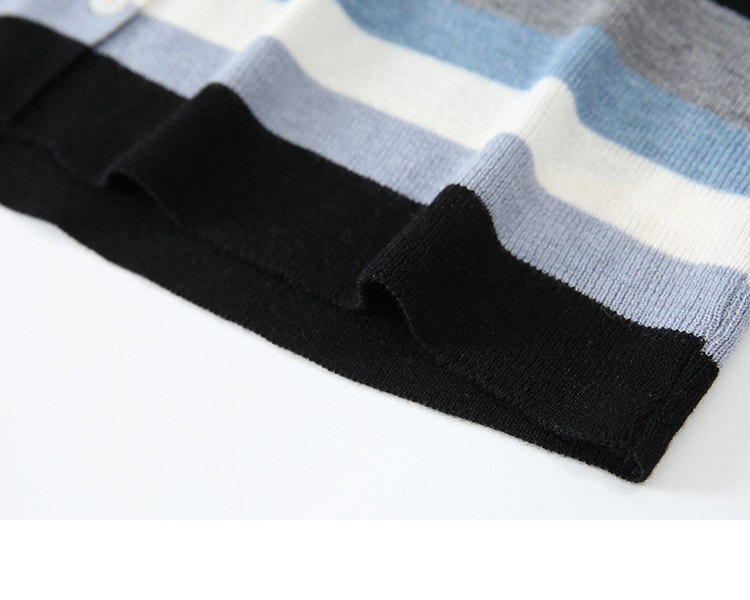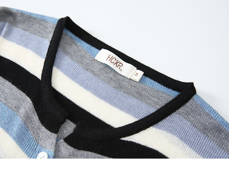 冷色ins初秋薄款小外套,新款法式撞色条纹宽松长袖针织开衫GYM-SW0899