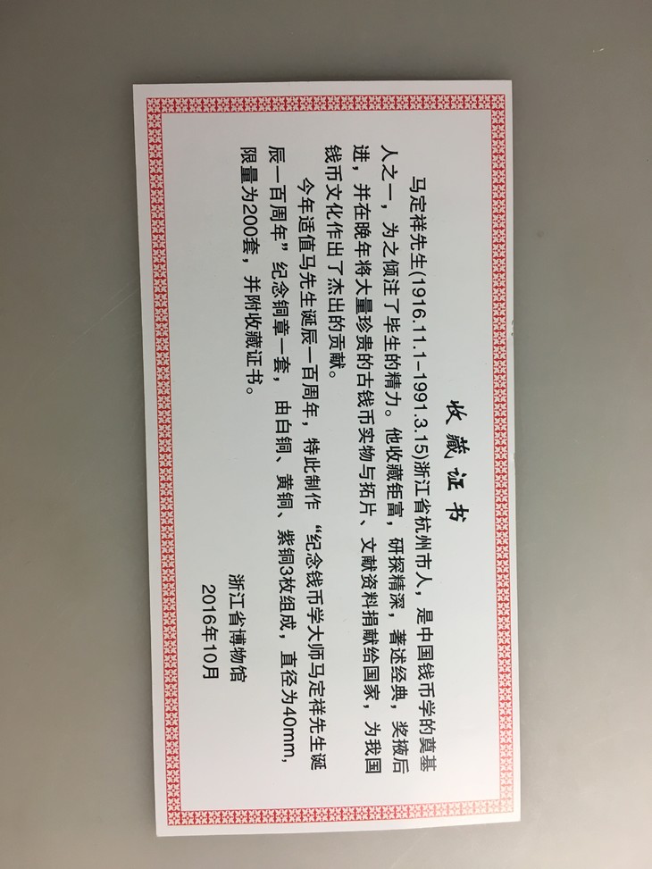 浙江省博物馆监制,限量发行200套,编号发行。红铜,白铜,紫铜各一,铸造精美。大部分用作马先生百年纪念活动馈赠。