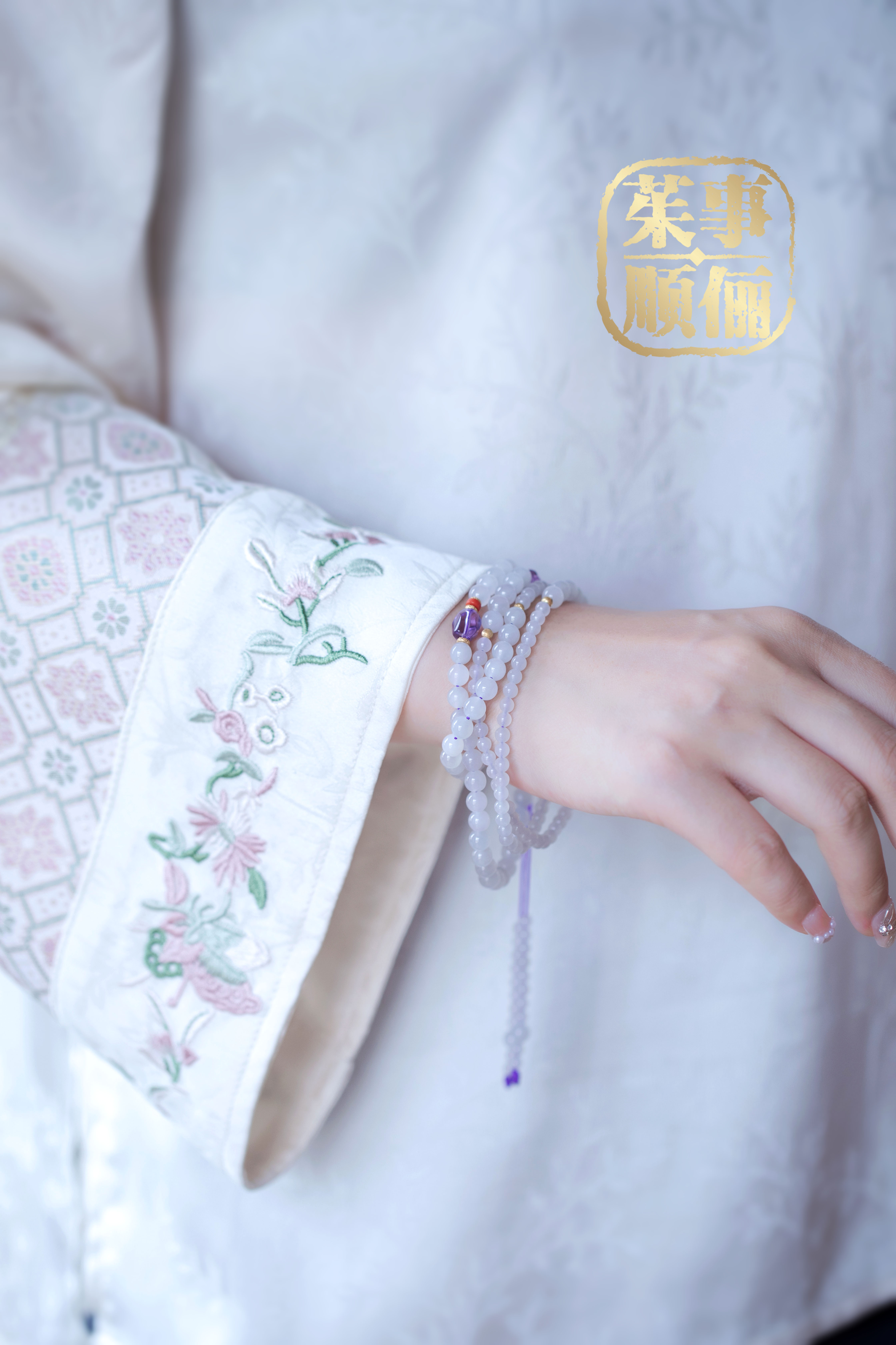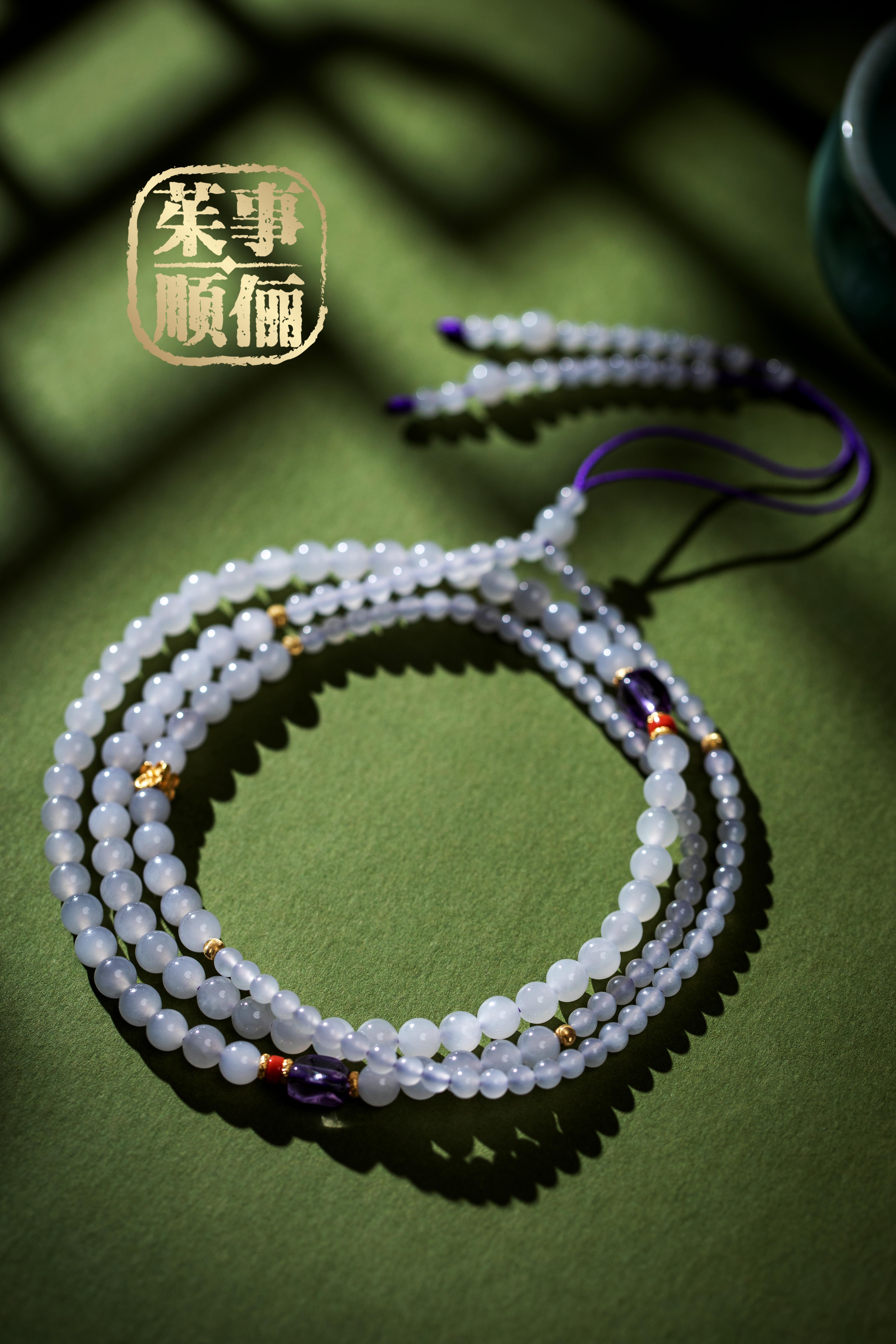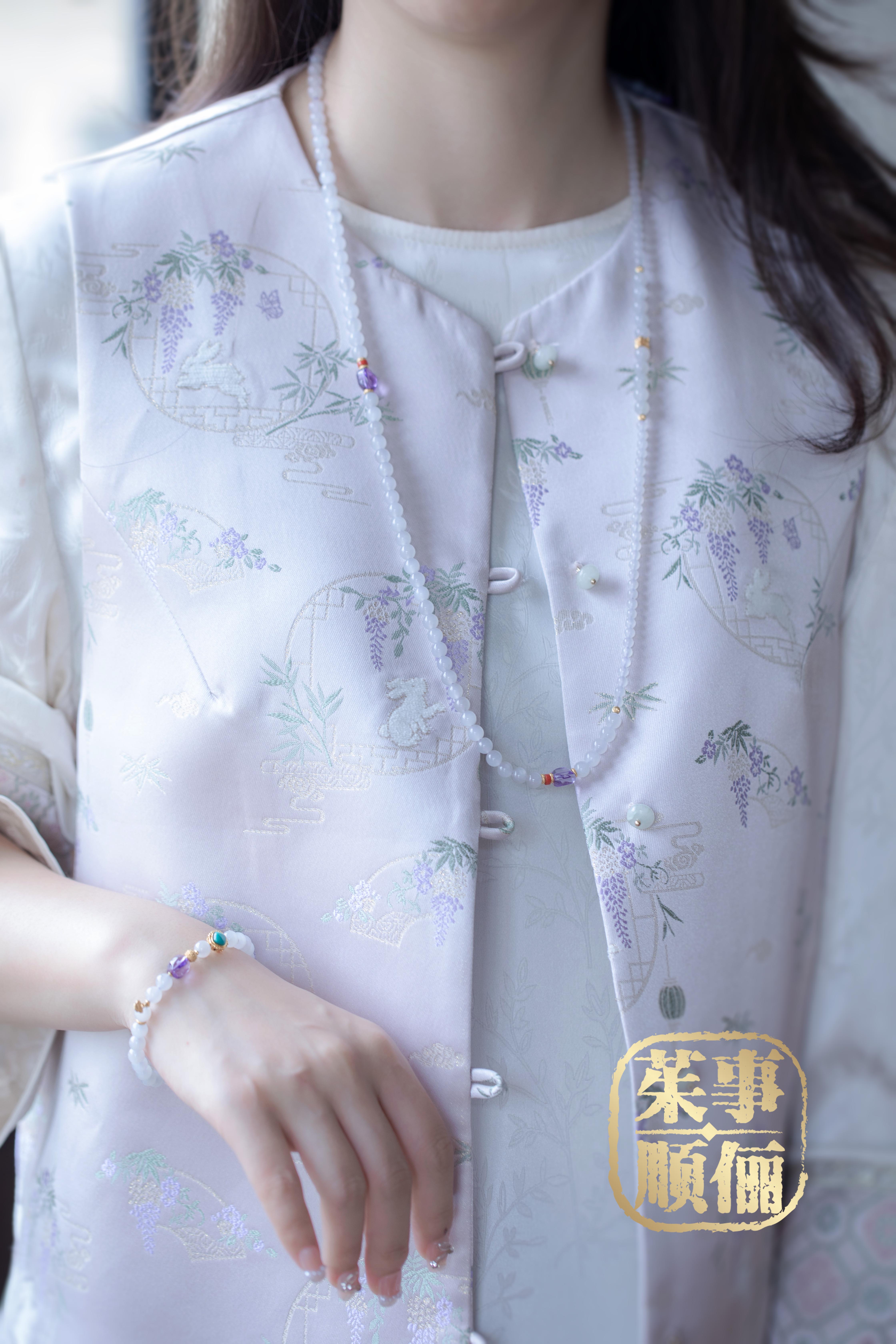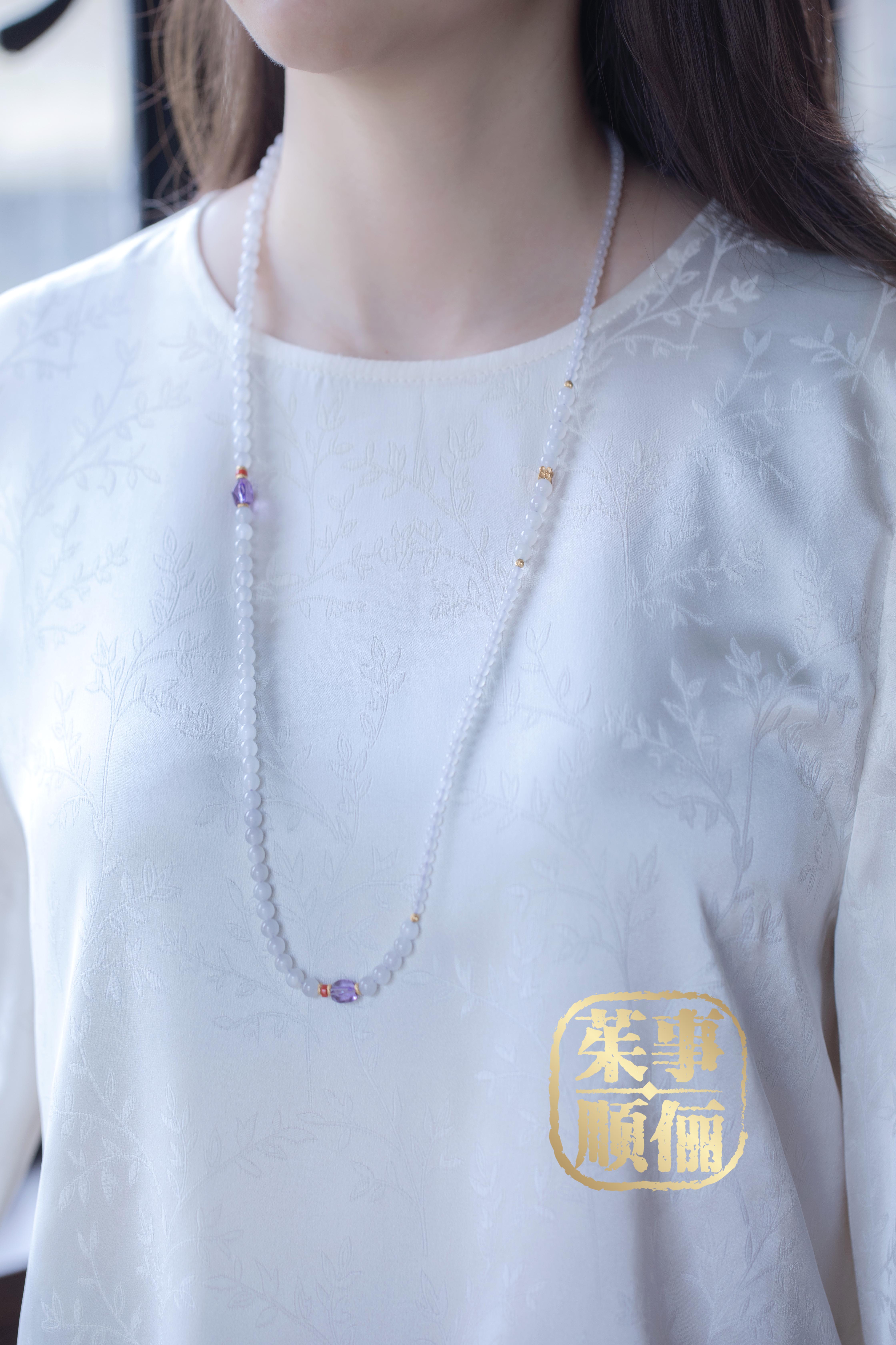 【茱事顺俪】18K金和田玉紫水晶南红两用款项链