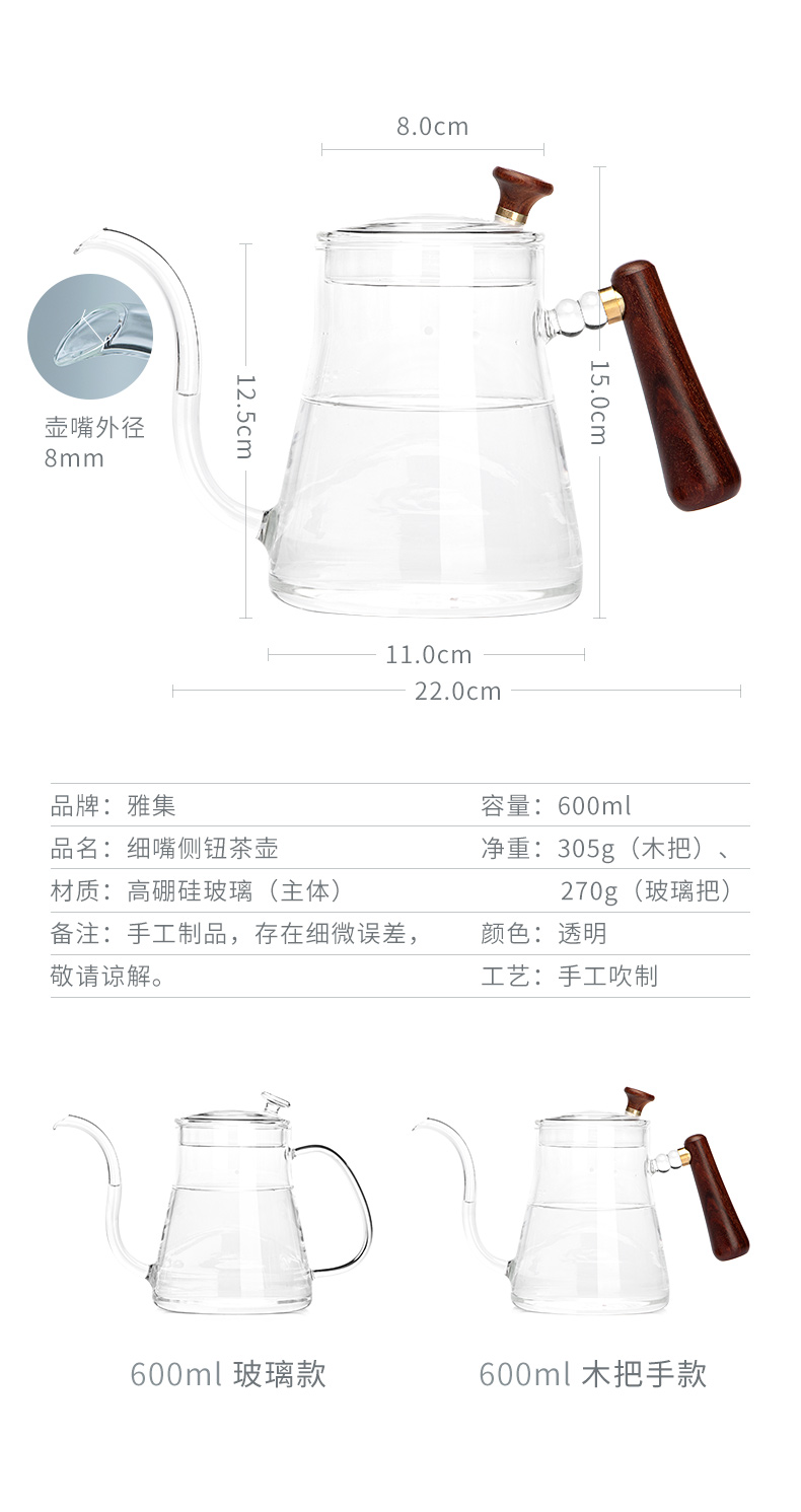 雅集细嘴侧纽茶壶600ml(玻璃把手)