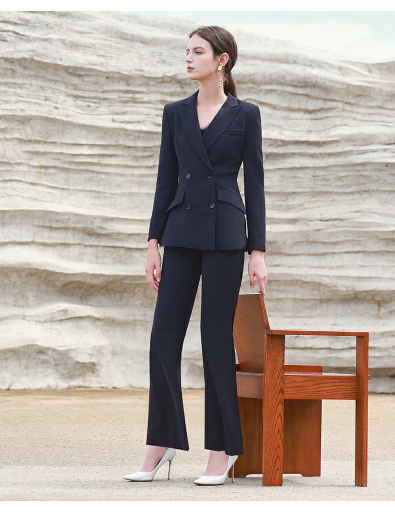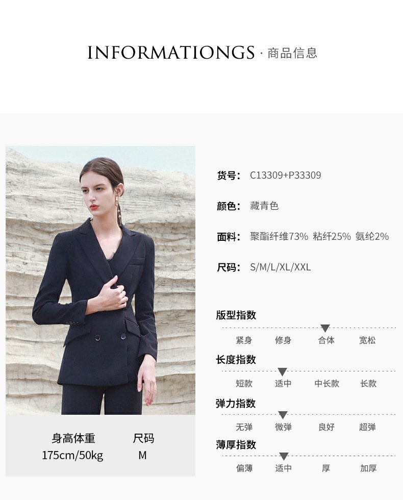 IWY/高端藏青色阔腿裤西装套装女商务面试经理职业装工作服C13309+P33309