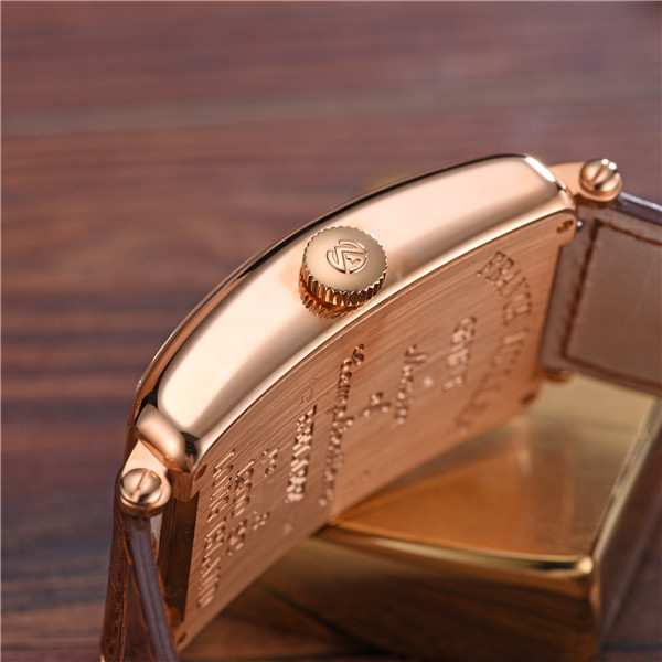 镜面材质 | 蓝宝石水晶玻璃 | 表盘 | 18K玫瑰金酒桶型表壳 白色表盘 阿拉伯弧形交错数字时标 密底 |