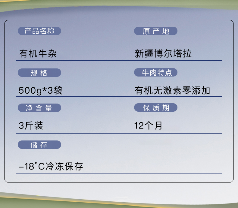 新疆 天莱香牛国产有机牛杂500g*3袋 牛肚 牛肠 牛肺 牛肚 牛散旦