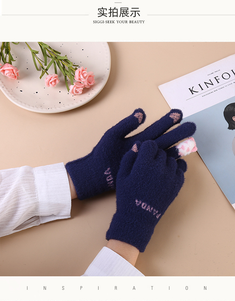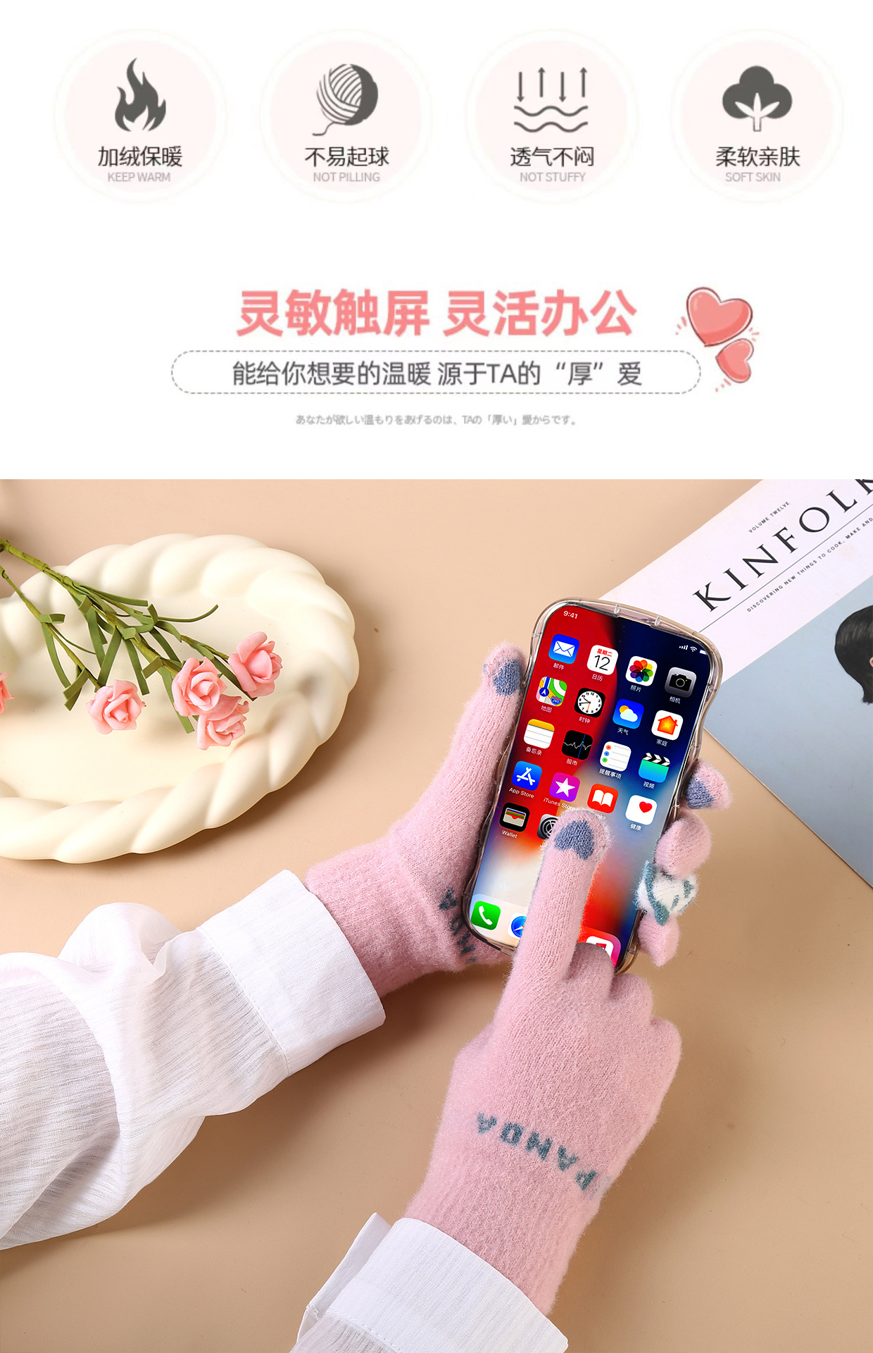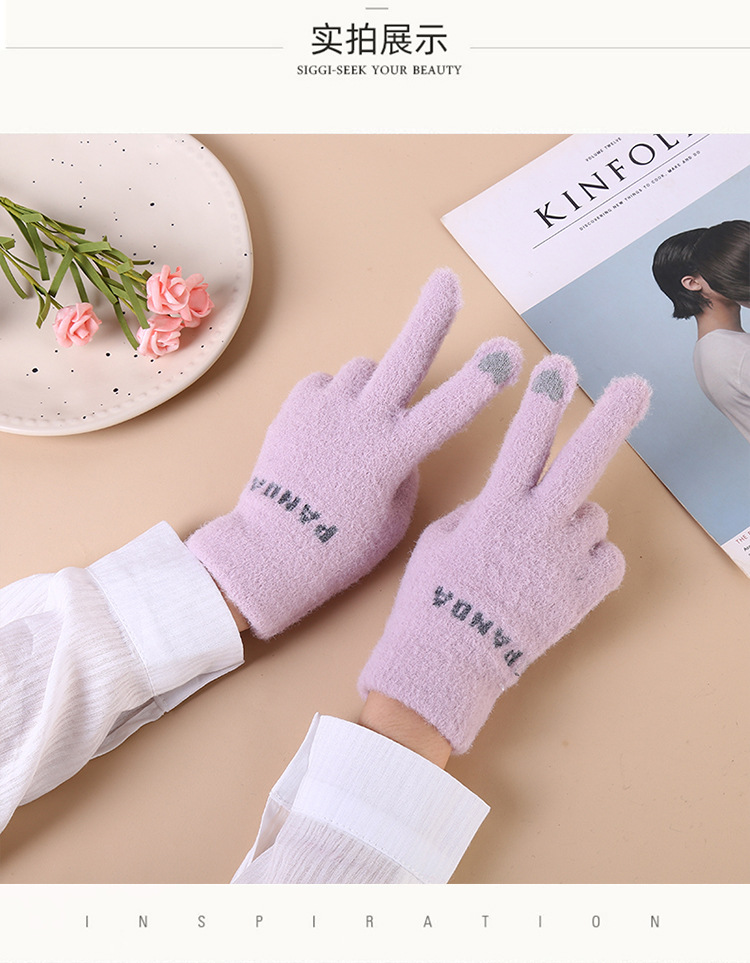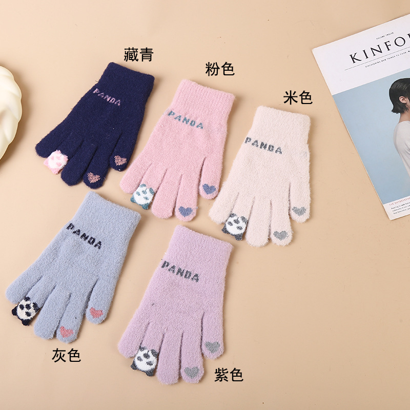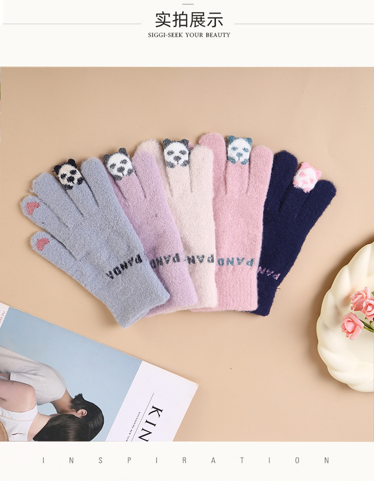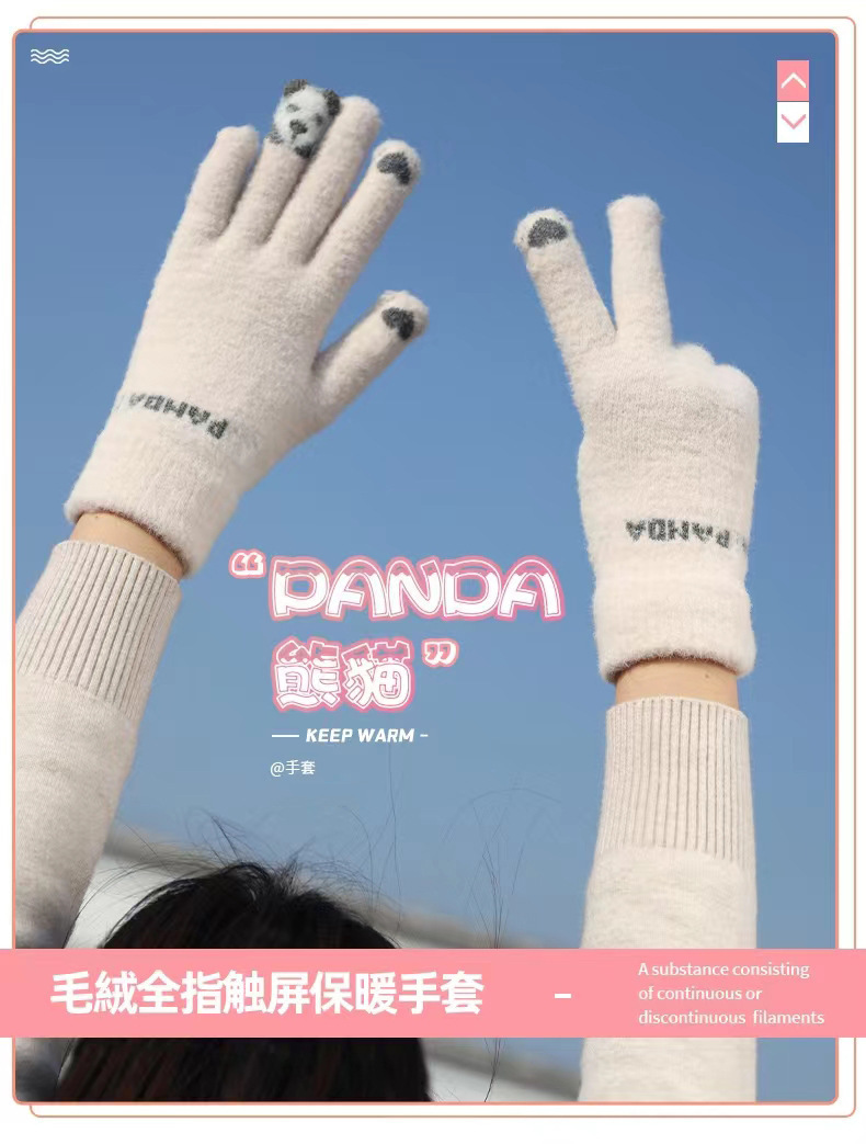 【冬季必备!五指毛绒触屏手套】秋冬保暖学生触屏五指毛绒手套针织手指卡通熊猫彩色加绒骑车手套,加绒设计提供温暖保护,令你在骑车、行走间都倍感舒适。ry