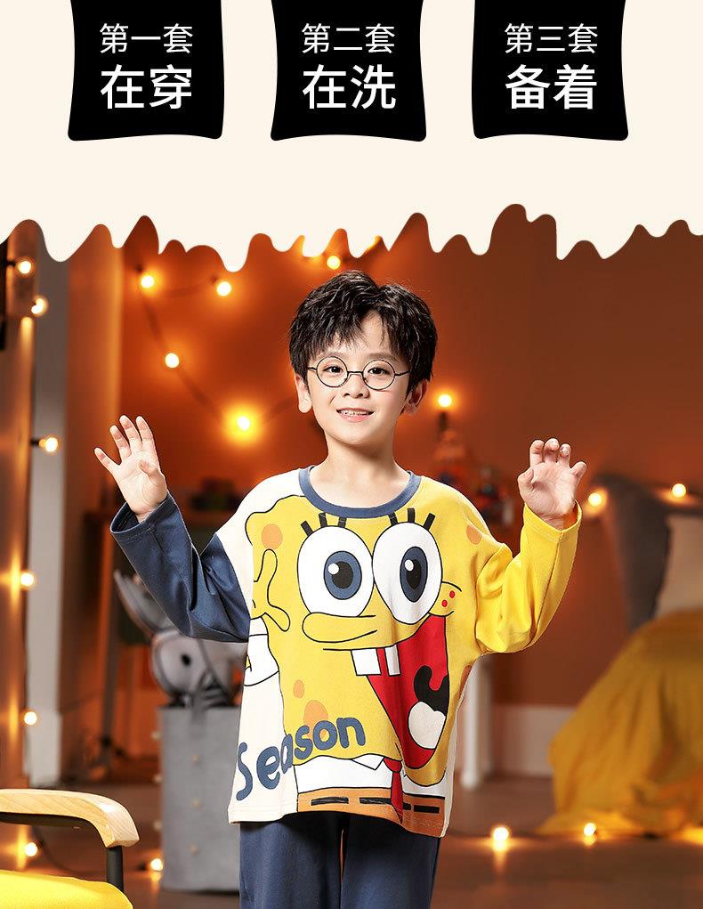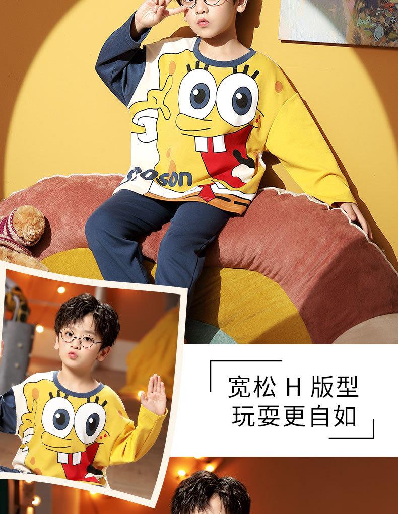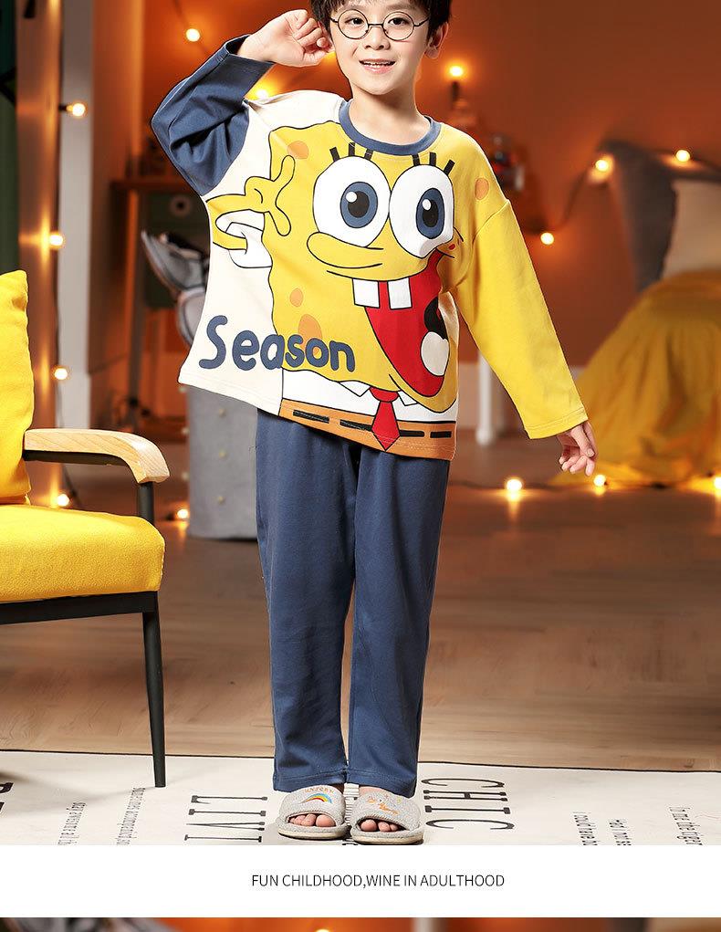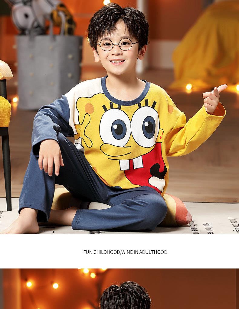 2022年新款男童睡衣春秋季薄款纯棉长袖男孩中大童卡通儿童家居服