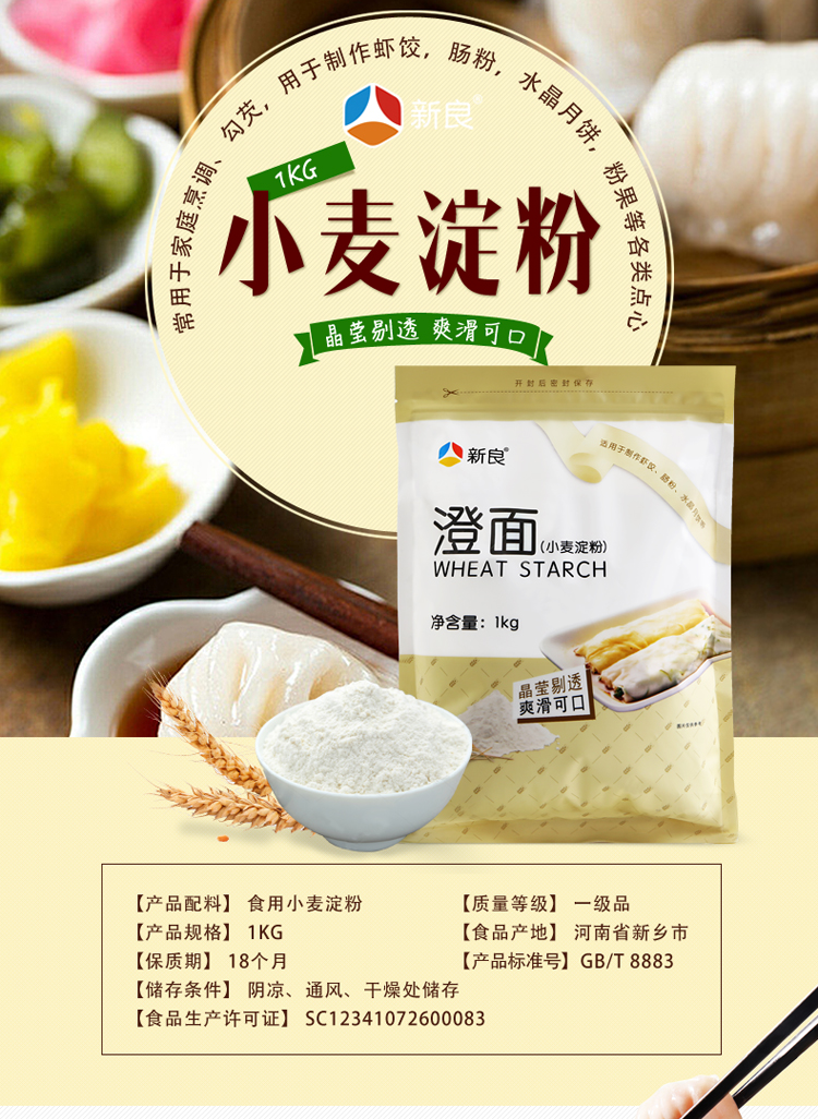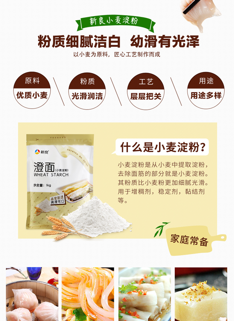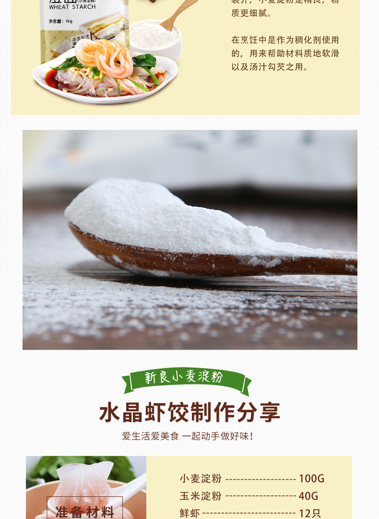 新良小麦淀粉澄粉澄面 冰皮月饼 水晶虾饺 凉皮 肠粉原料1kg