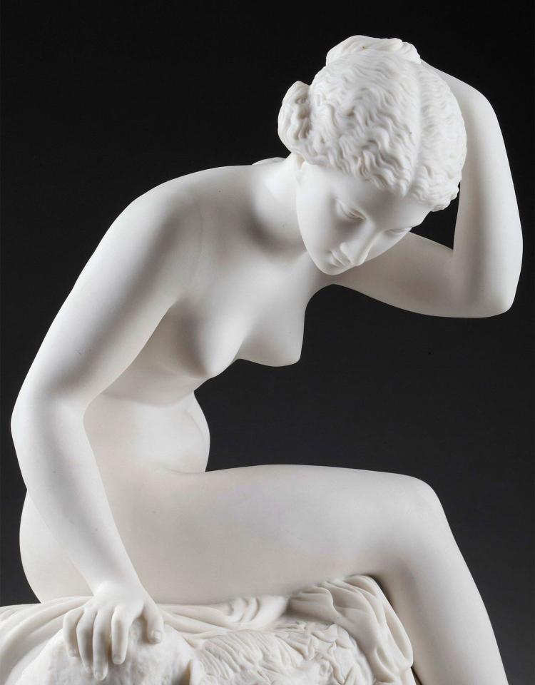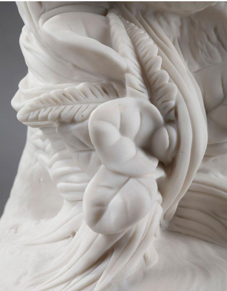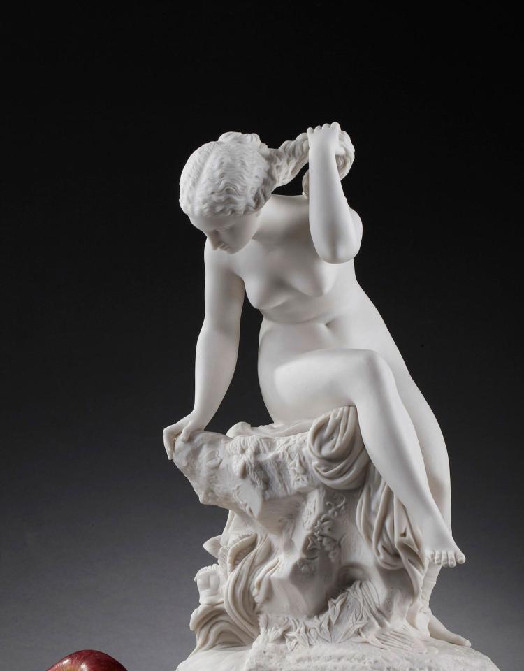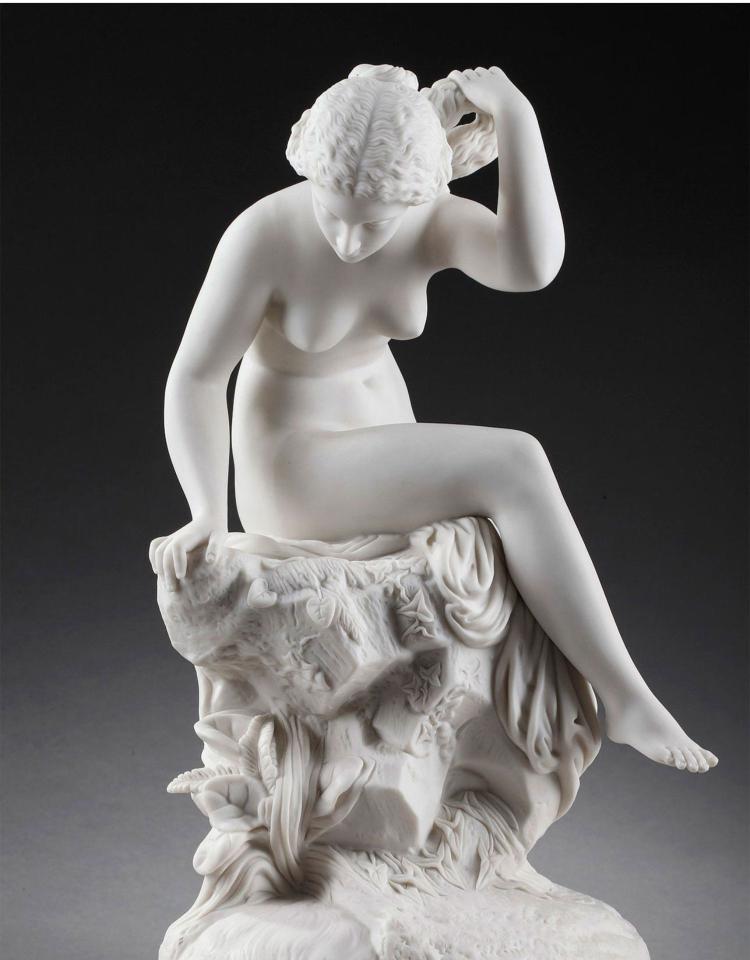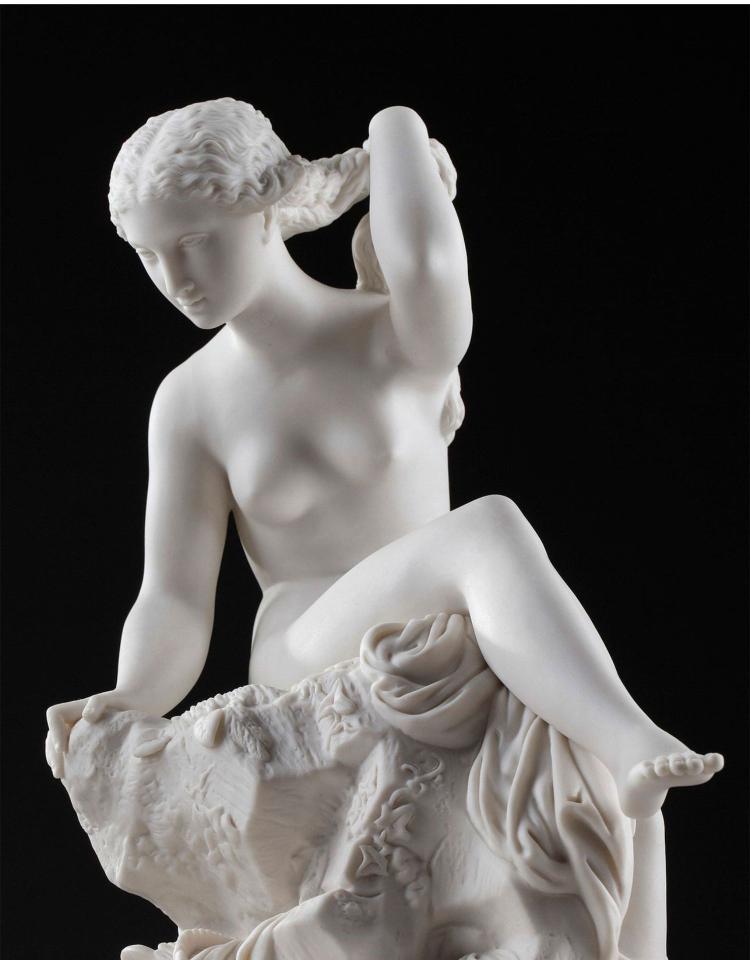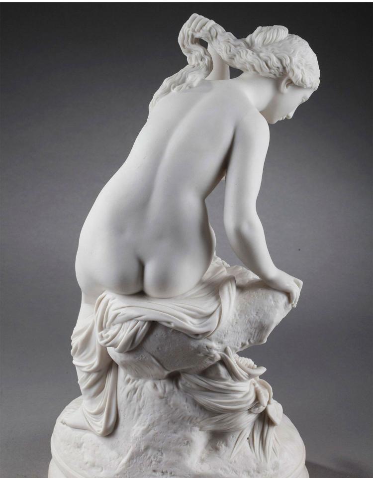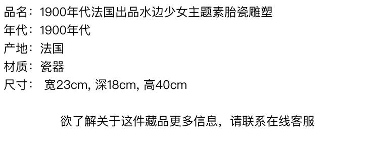 独角鹿西洋古董雕塑1900年代法国出品水边少女主题素胎瓷雕塑