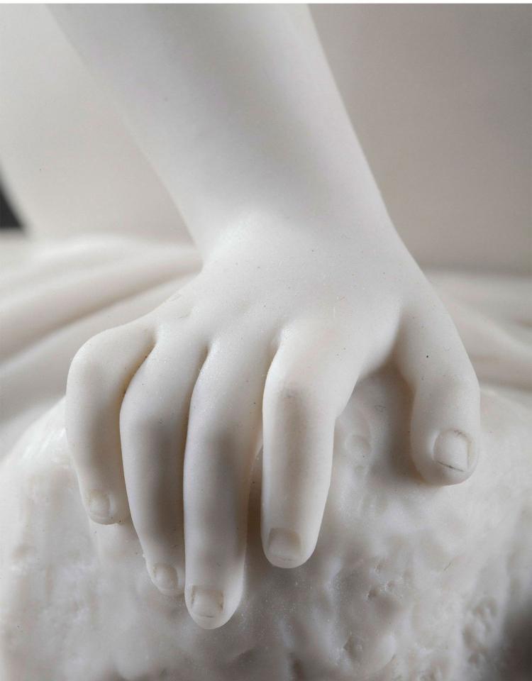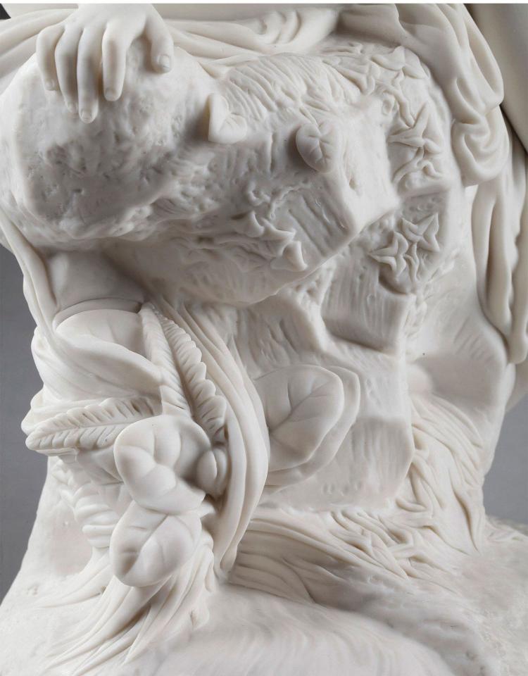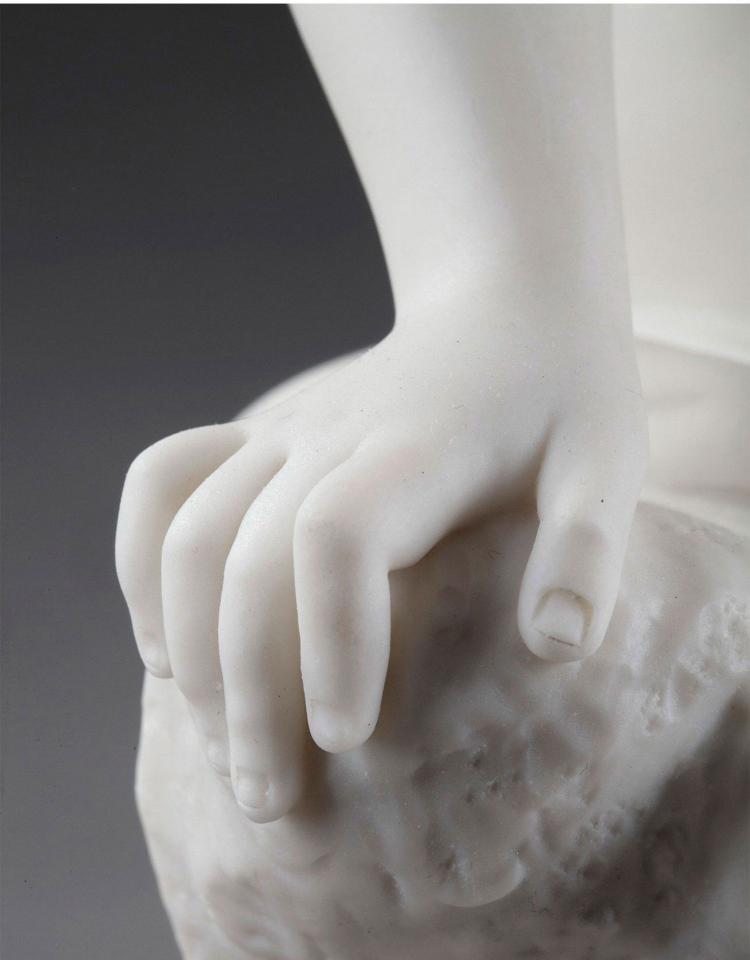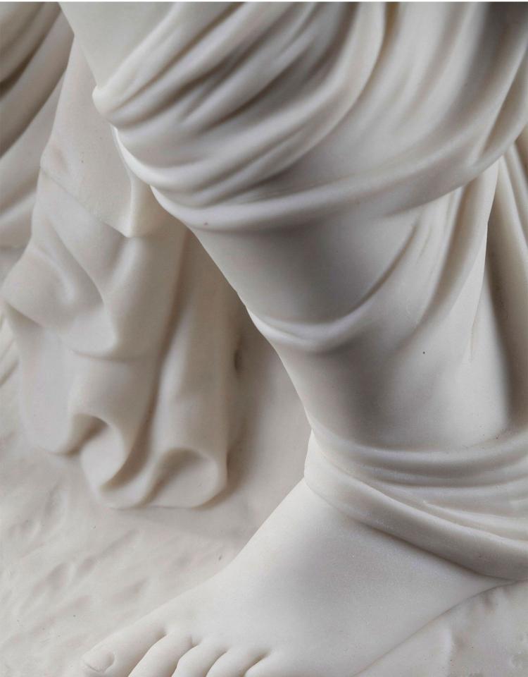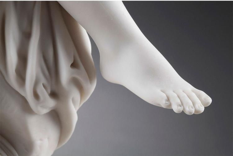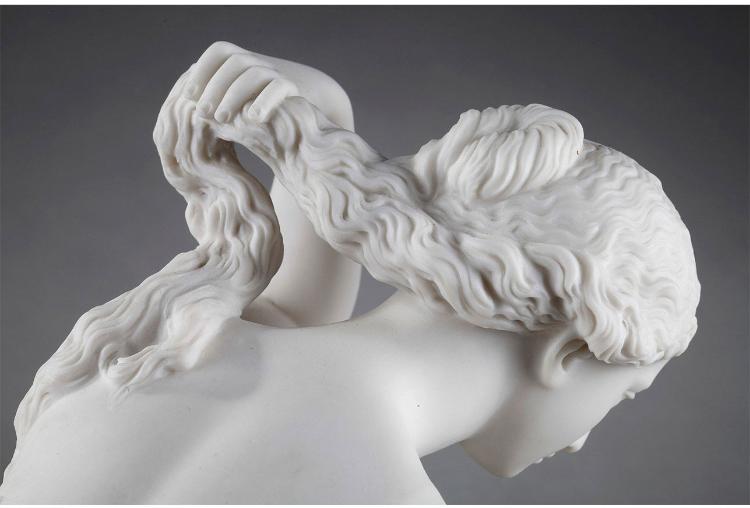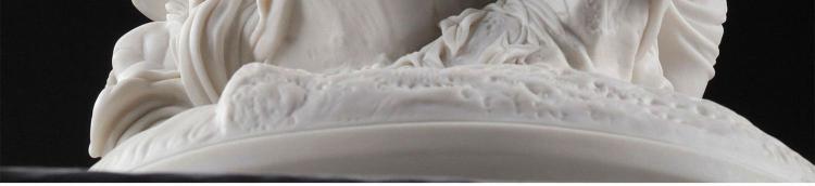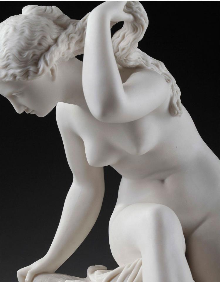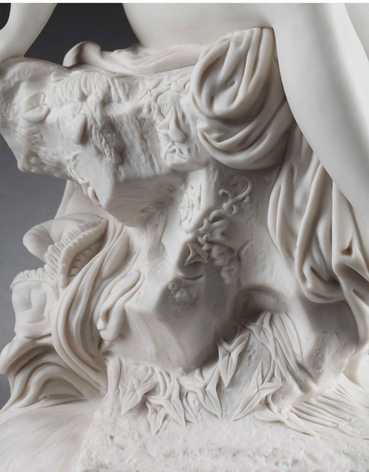 独角鹿西洋古董雕塑1900年代法国出品水边少女主题素胎瓷雕塑