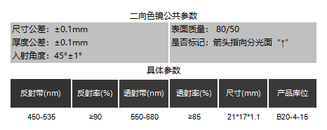 二色镜 ≥90%@450-535 Tavg≥85%@550-680 21*17*1.1 6097