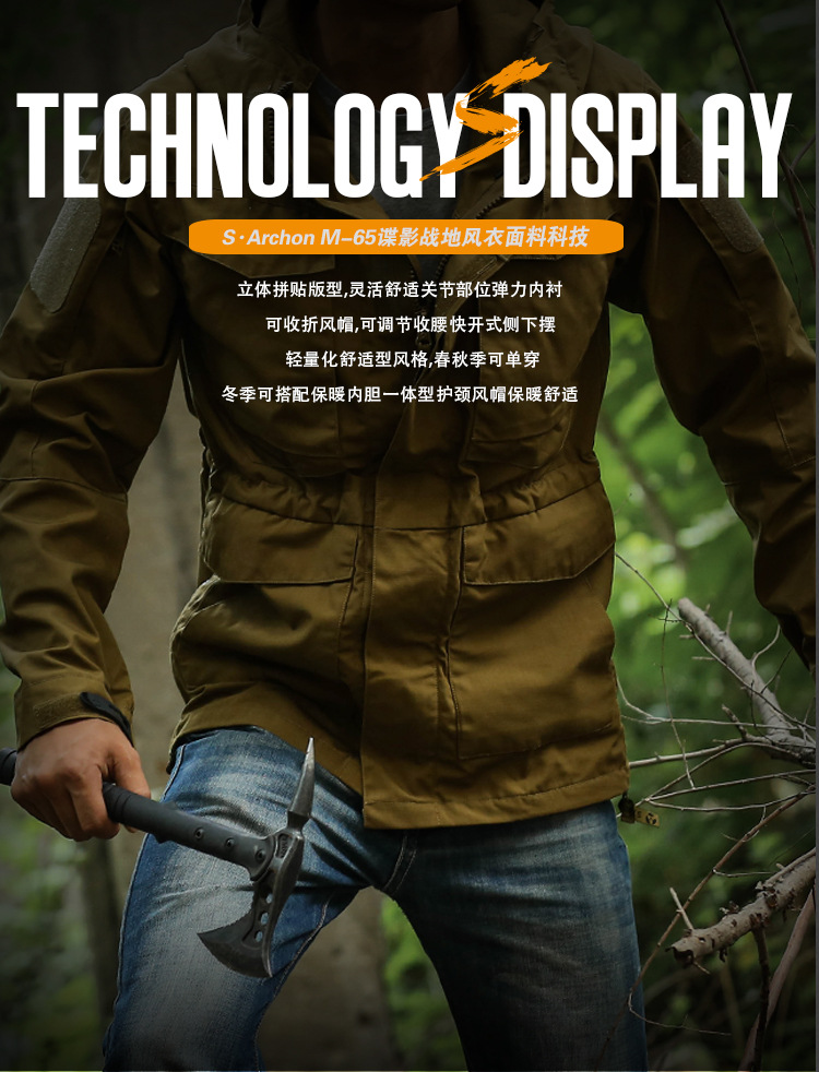 谍影M65 战术风衣 男秋冬户外防水外套 中长款军迷战地机能冲锋