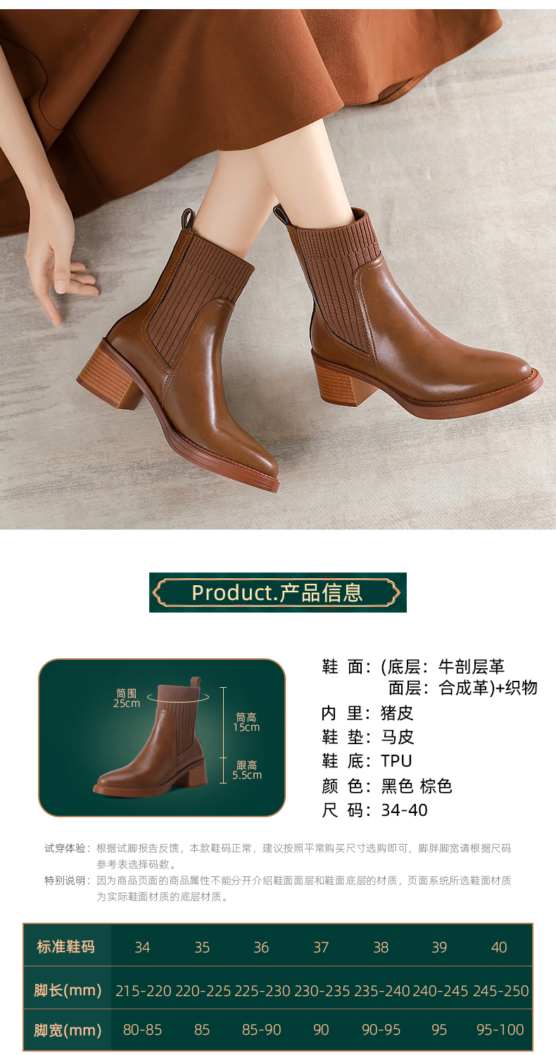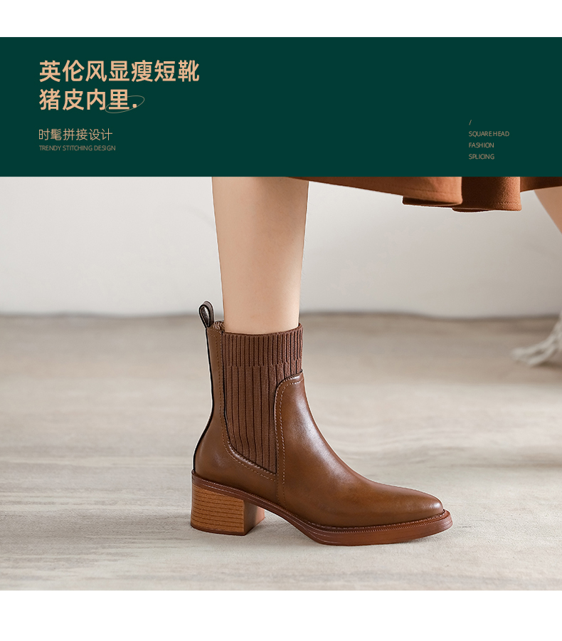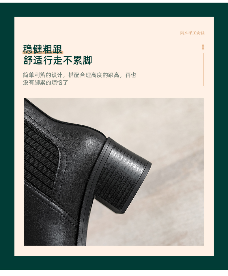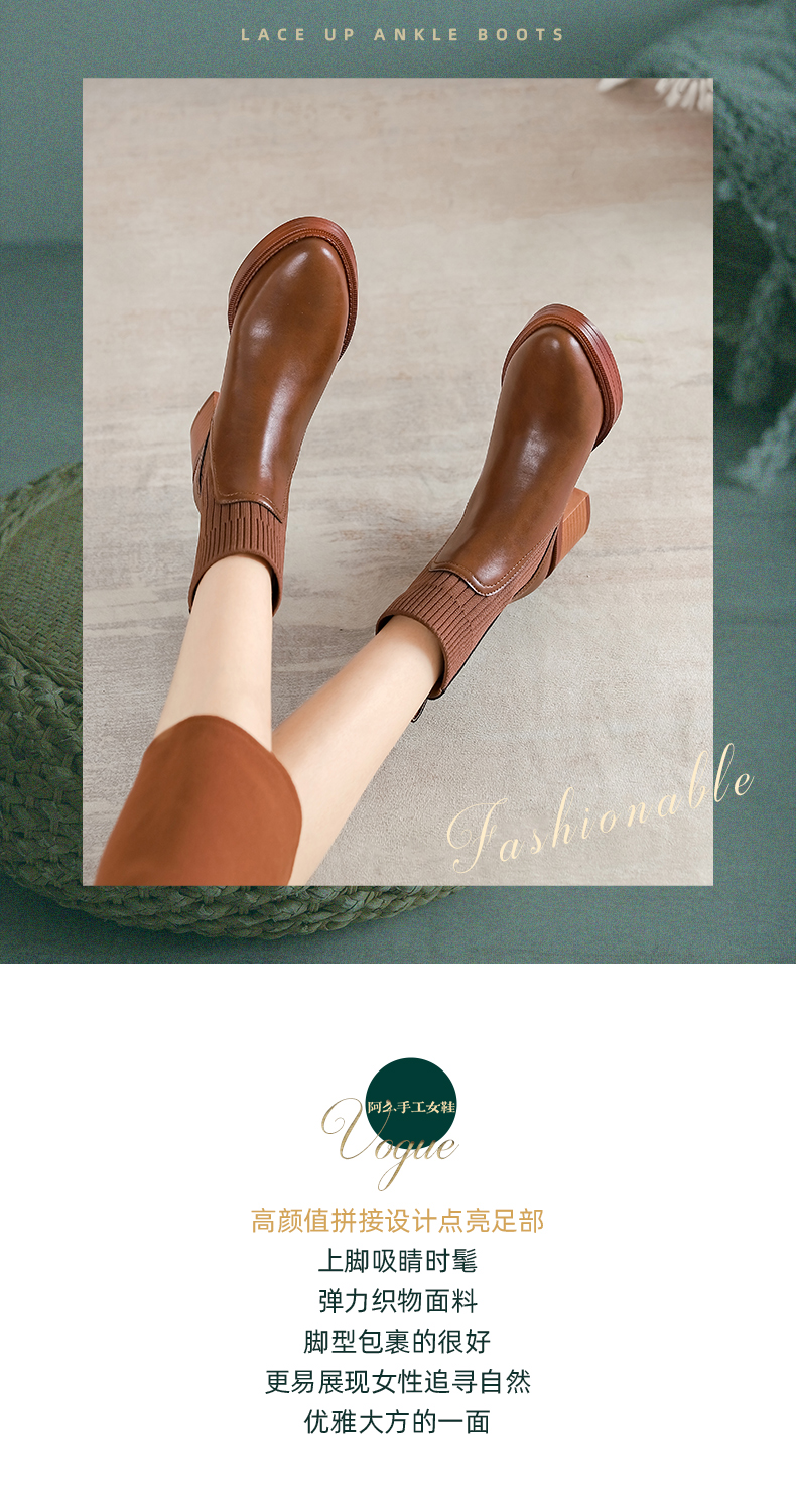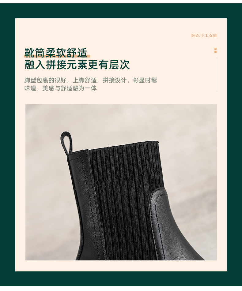 阿么手工女鞋针织粗跟短靴女2023新款一脚蹬百搭5.5CM高跟瘦瘦靴