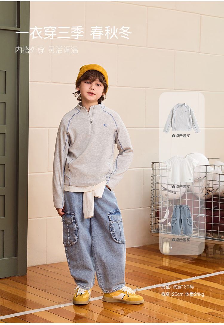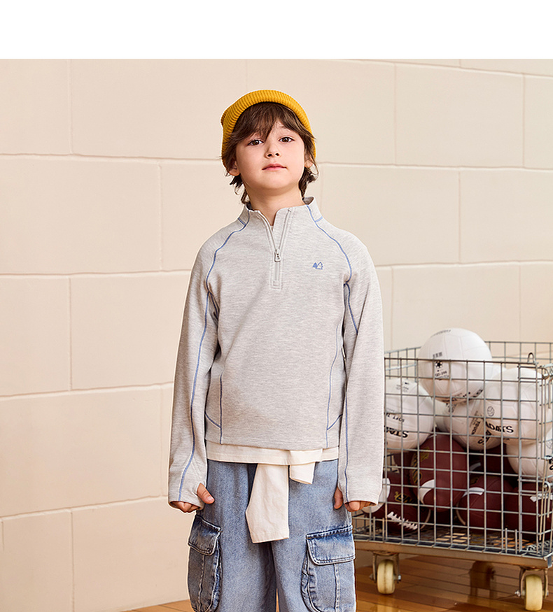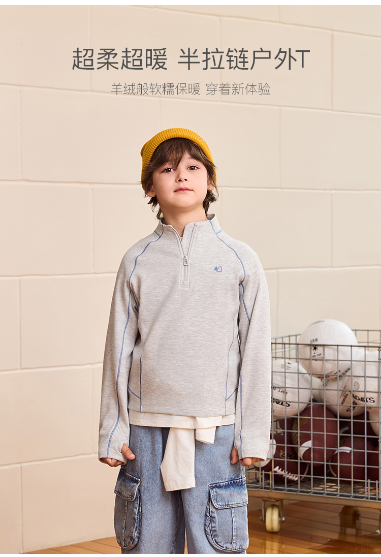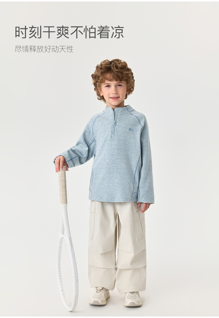 【糯糯绒】马克珍妮男童半拉链百搭户外T恤2025年秋装新款551153