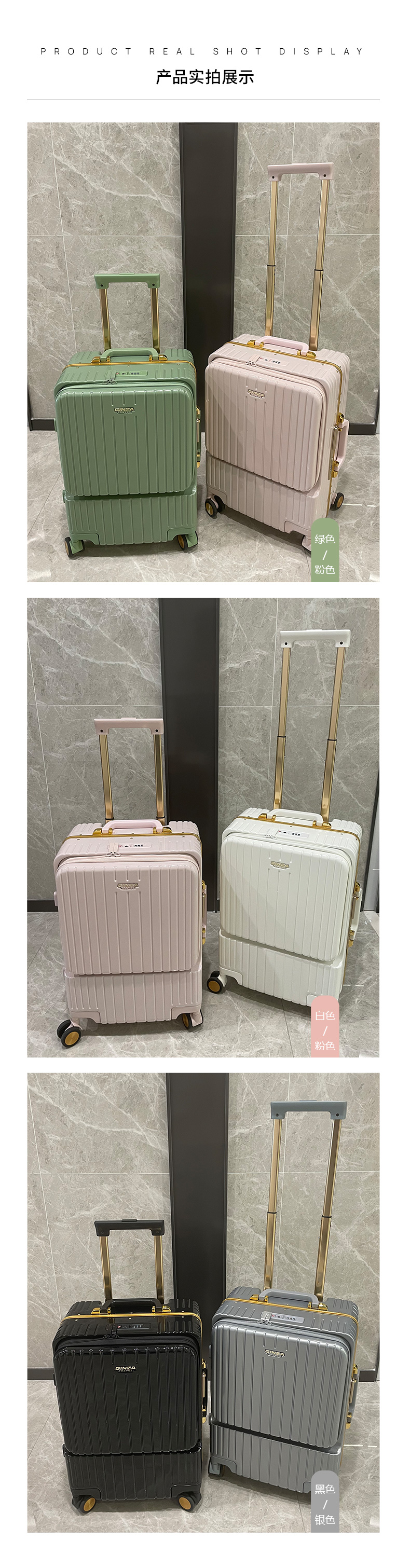 银座前开袋行李箱女20寸小型轻便登机箱男密码锁拉杆箱6661