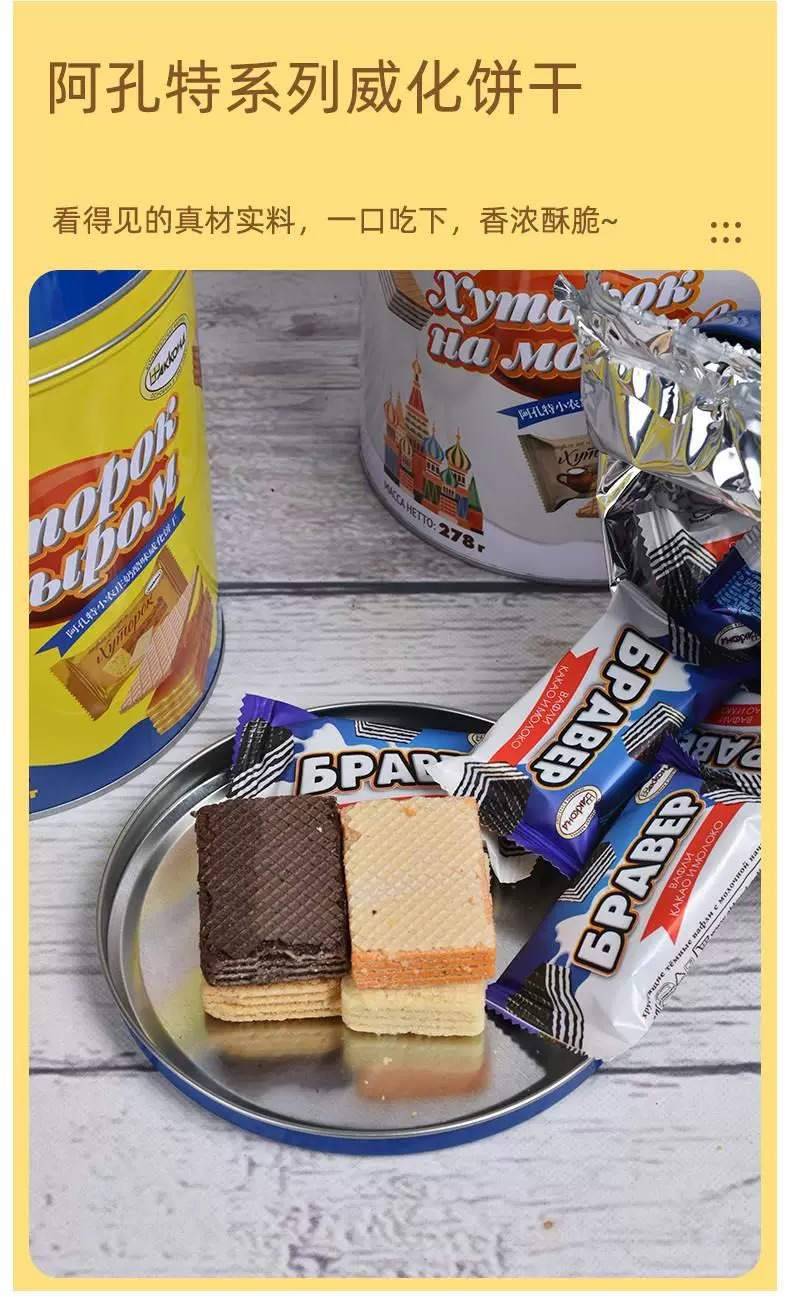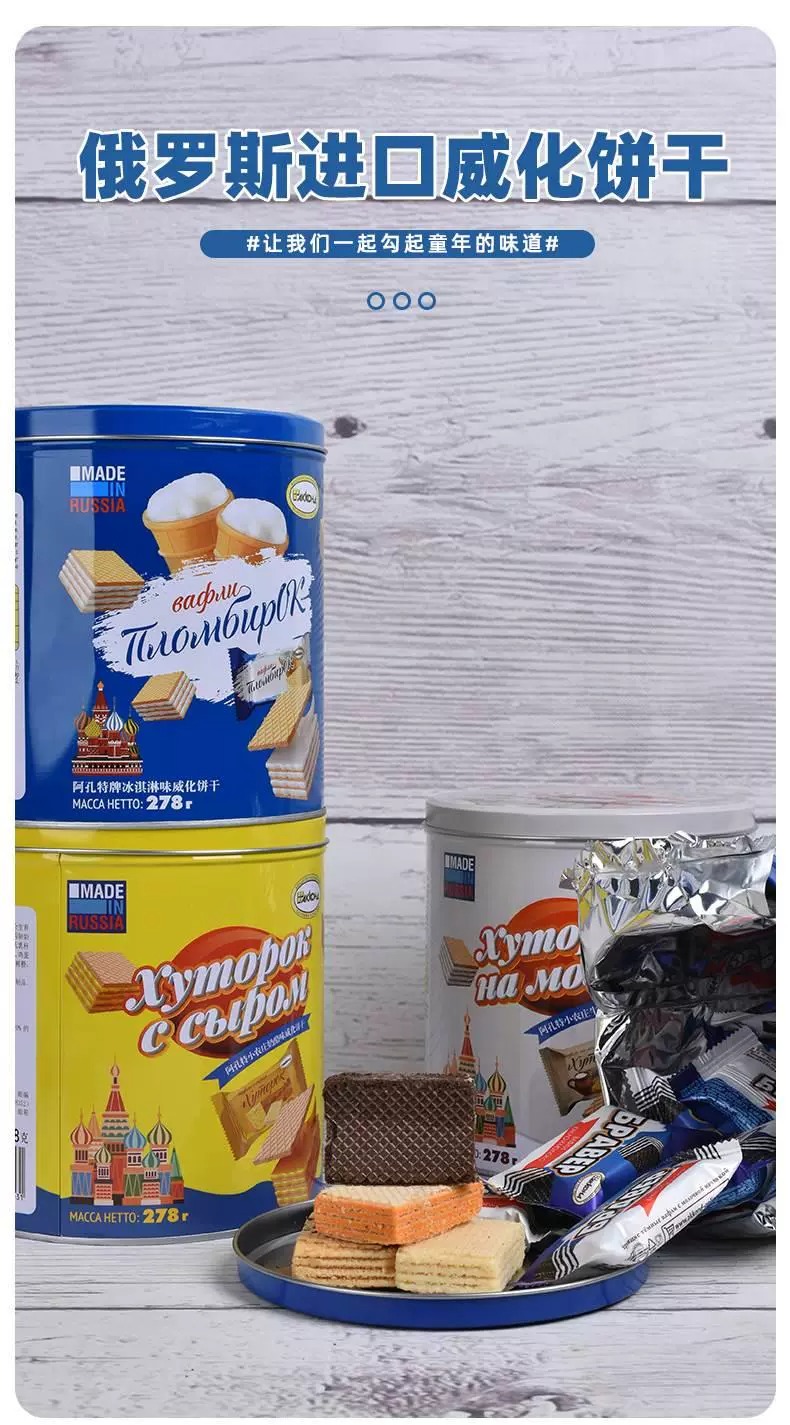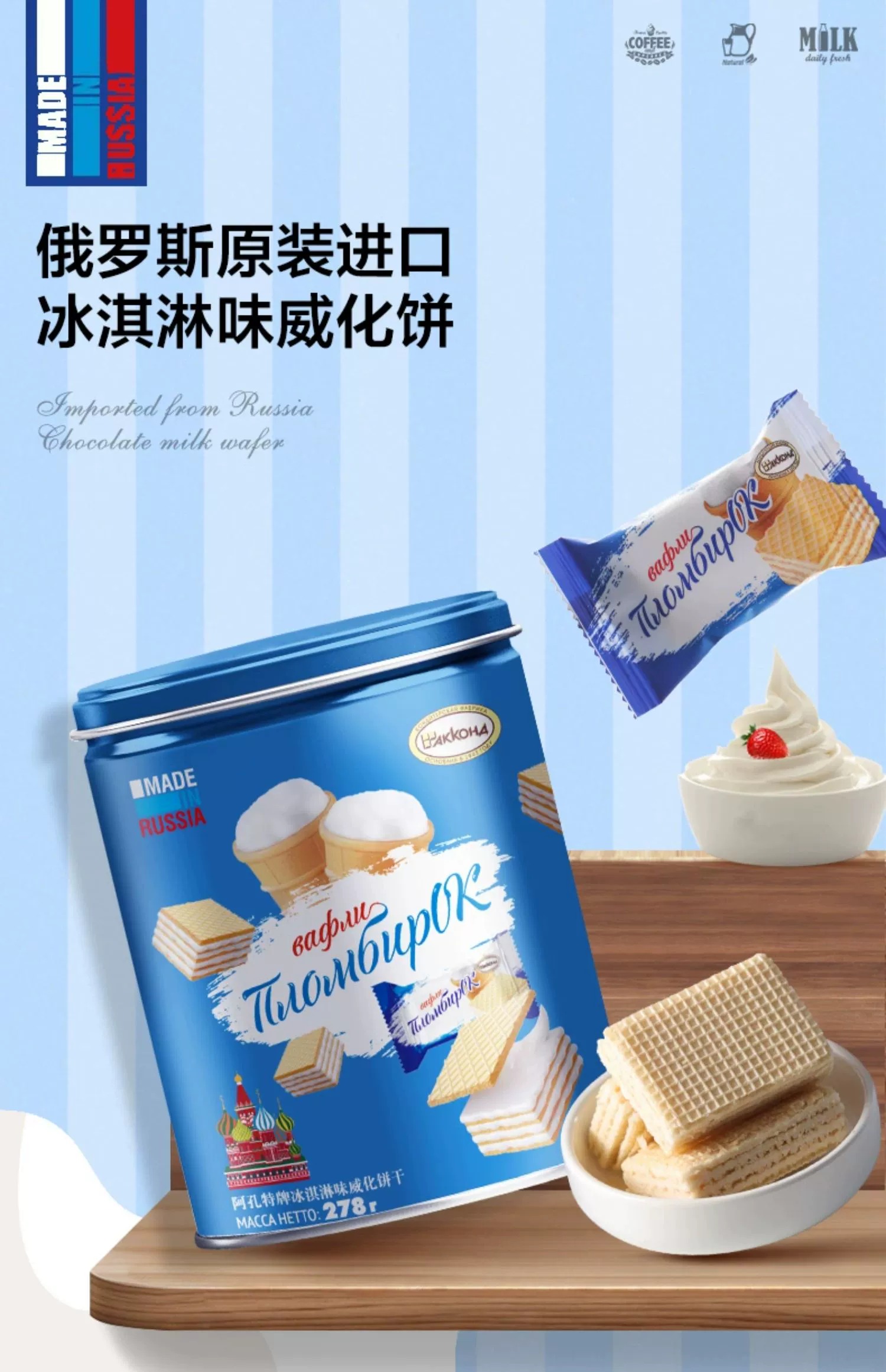 【中欧班列精选】俄罗斯进口阿孔特菲利莫味/冰淇淋味/牛奶味/奶酪味多口味夹心多层威化罐装 278g/罐