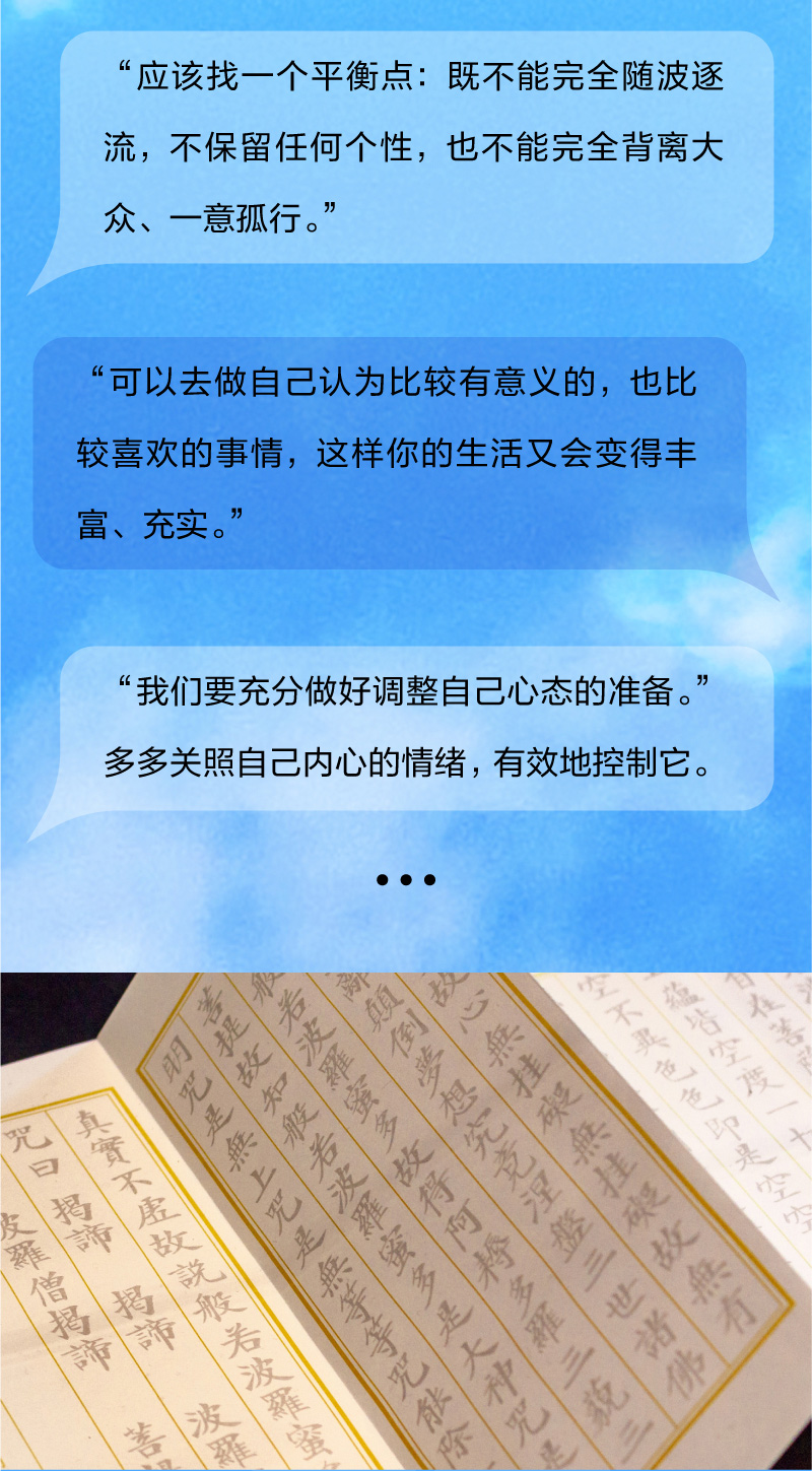 如同慈诚罗珠堪布所言,“我们可以过很现代化的生活,同时也可以拥有很古老的佛教智慧”,“在每个人的精神世界里,都有一个等待发现的事物或等待开发的力量。彻底了解自己,是世上最自由、最轻松、最快乐的境界”。