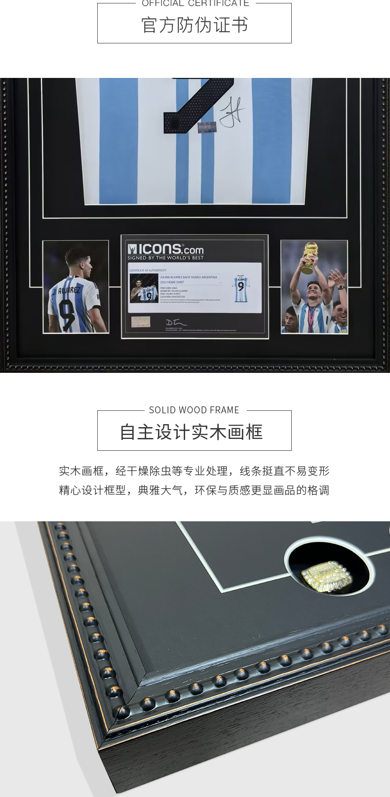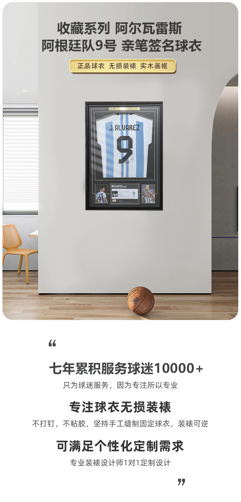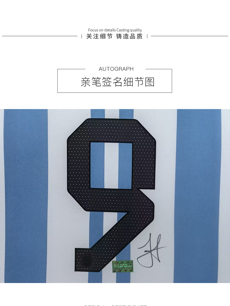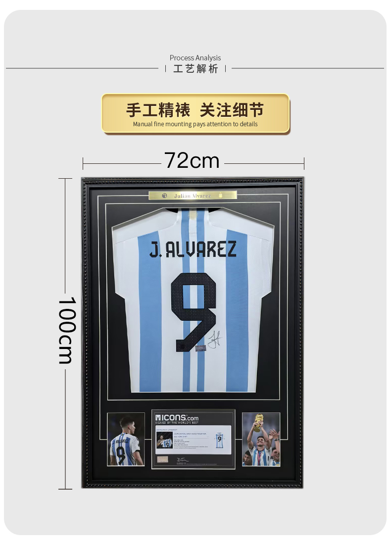 收藏系列 阿尔瓦雷斯 阿根廷队9号 亲笔签名球衣