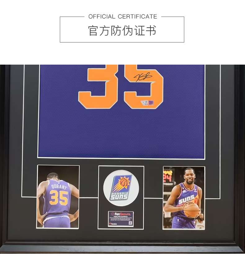 收藏系列 杜兰特 太阳队35号紫色 亲笔签名球衣